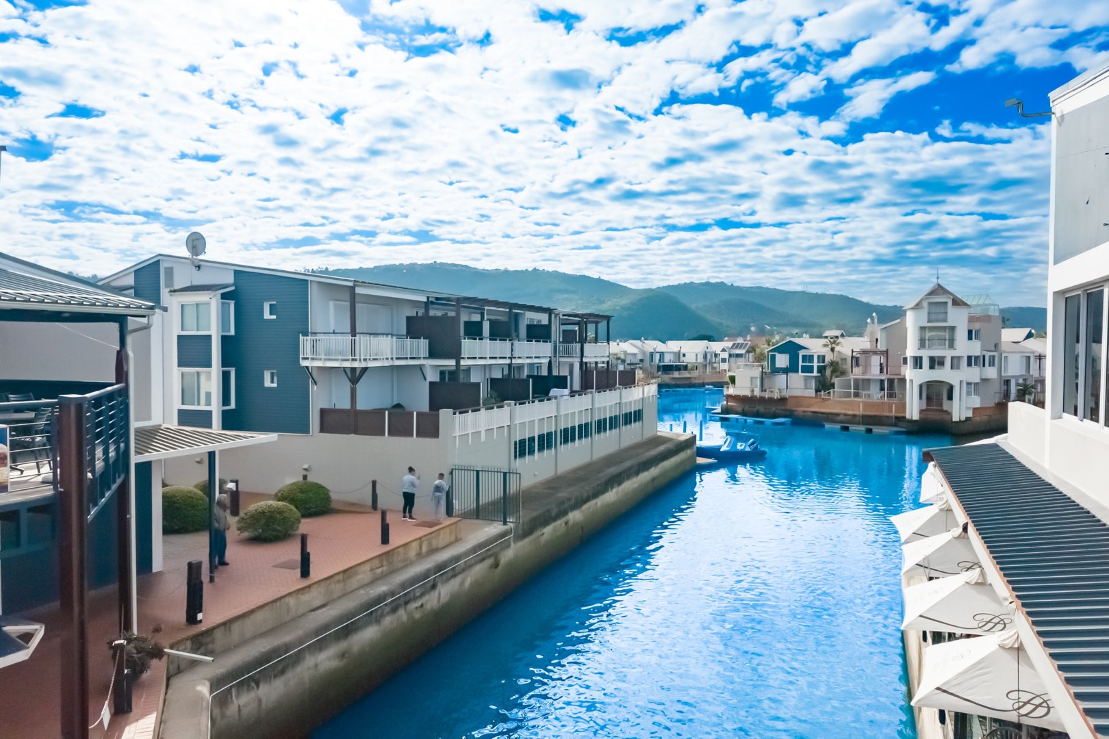 This well-located 2-bedroom, 2-bathroom apartment offers comfortable living right on the water’s edge at Knysna Quays. The modern open plan design connects the kitchen, dining, and lounge areas, leading out to a spacious balcony with views over the canal — an ideal space for relaxing or entertaining.