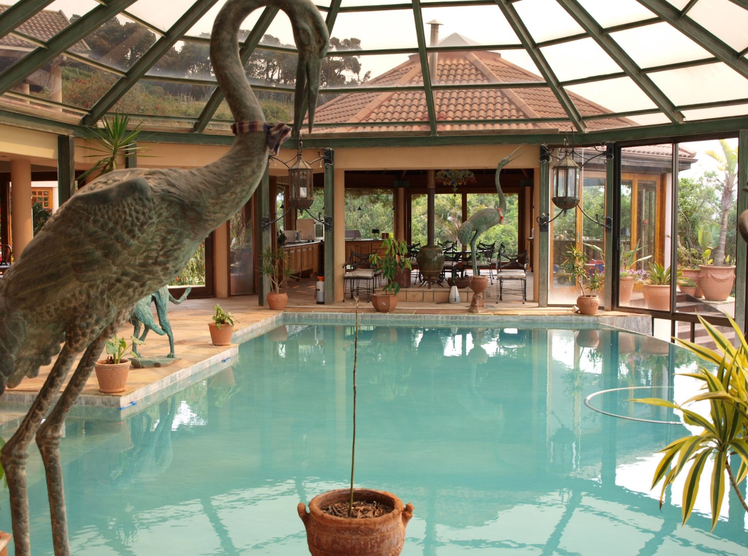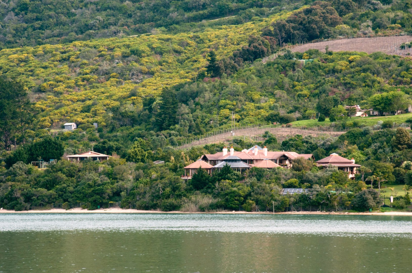 A stately homestead with immense views spanning the famous Knysna Lagoon, presenting itself like a boutique hotel. This 7 suite mansion has prime position on the Western Heads north facing, with cottages and other facilities and its own private jetty on the banks of the Knysna Lagoon. Its voluminous design could easily accommodate an exclusive resort lifestyle and is ideal for the opportunist investor. This private, secure residence, with its stately wine cellar, indoor heated pool, steam room, also provides ample areas for dining, conferences, bars, parties, boats, beach combing and other pleasurable holiday indulgences, all within the regal realms of this 22 acre property. In addition, this grandiose homestead has a newfound flair in 600 young vineyards, with an imminent yield from various cultivars – this making it one of the rare private Southern Cape vineyards, again in a class of its own.