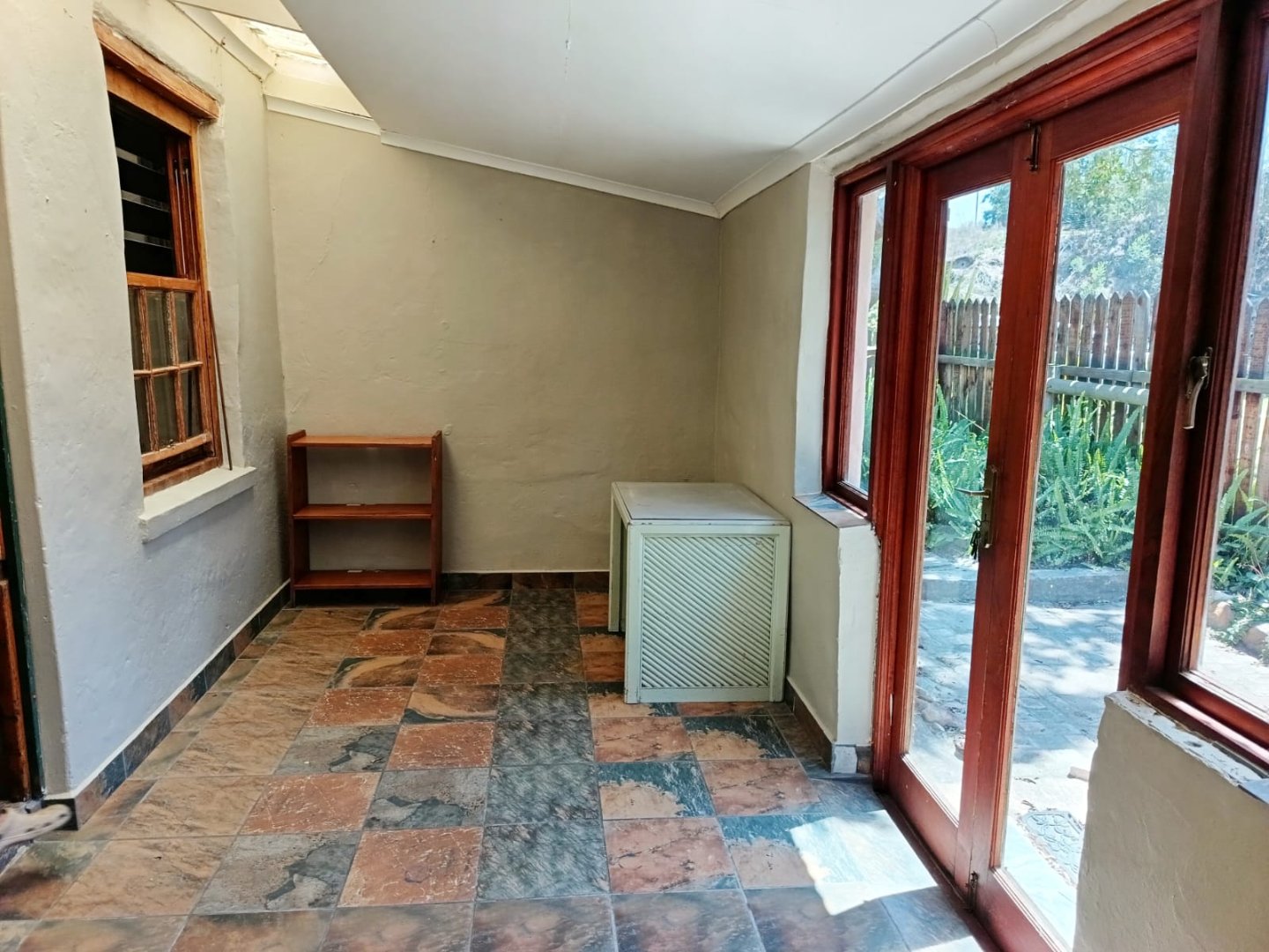There are seven dwellings on the property, excluding the pump house, outside ablutions, and storerooms. The main house includes four bedrooms, one bathroom, two guest toilets, a large kitchen, dining room, lounge, plus an additional room suitable as a lounge or studio. It also has an attached studio flat with its own bathroom. The laundry is separate from the main house, and the yard has been enclosed.