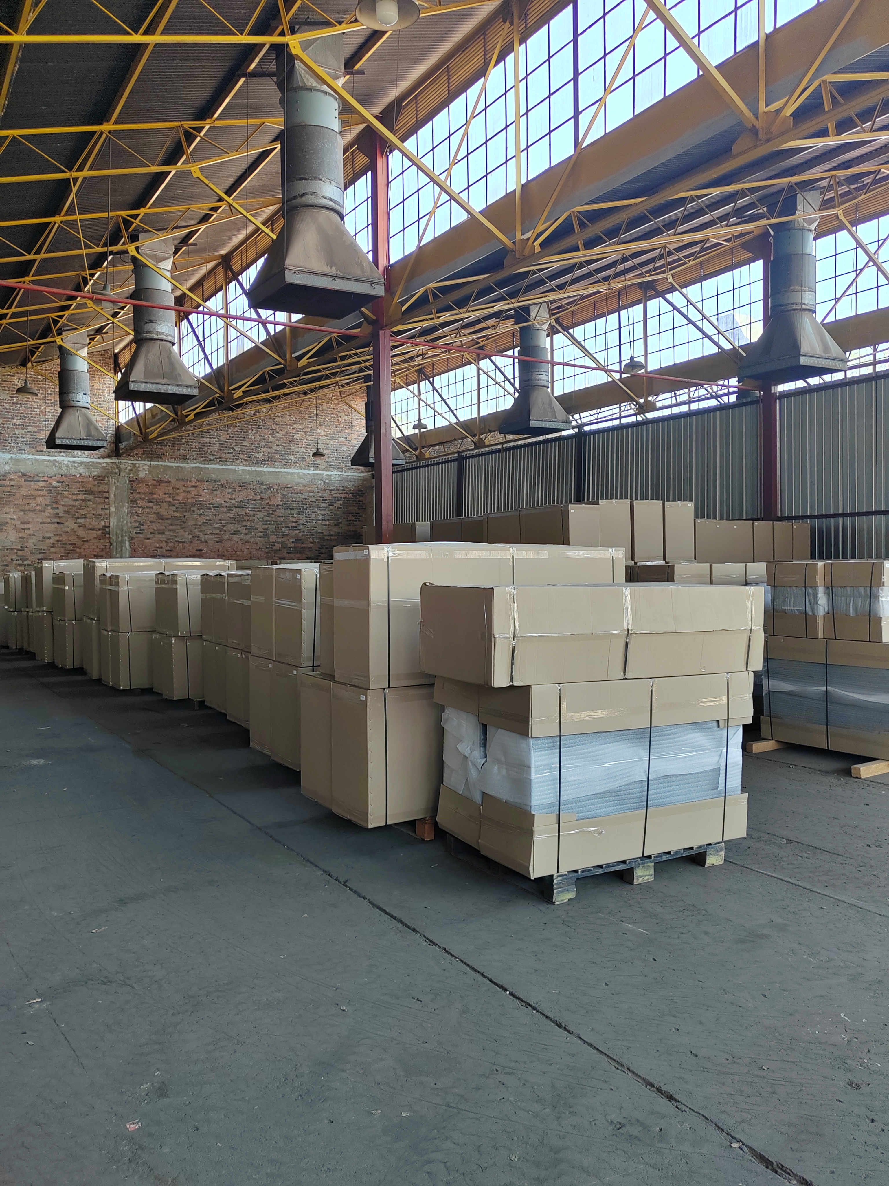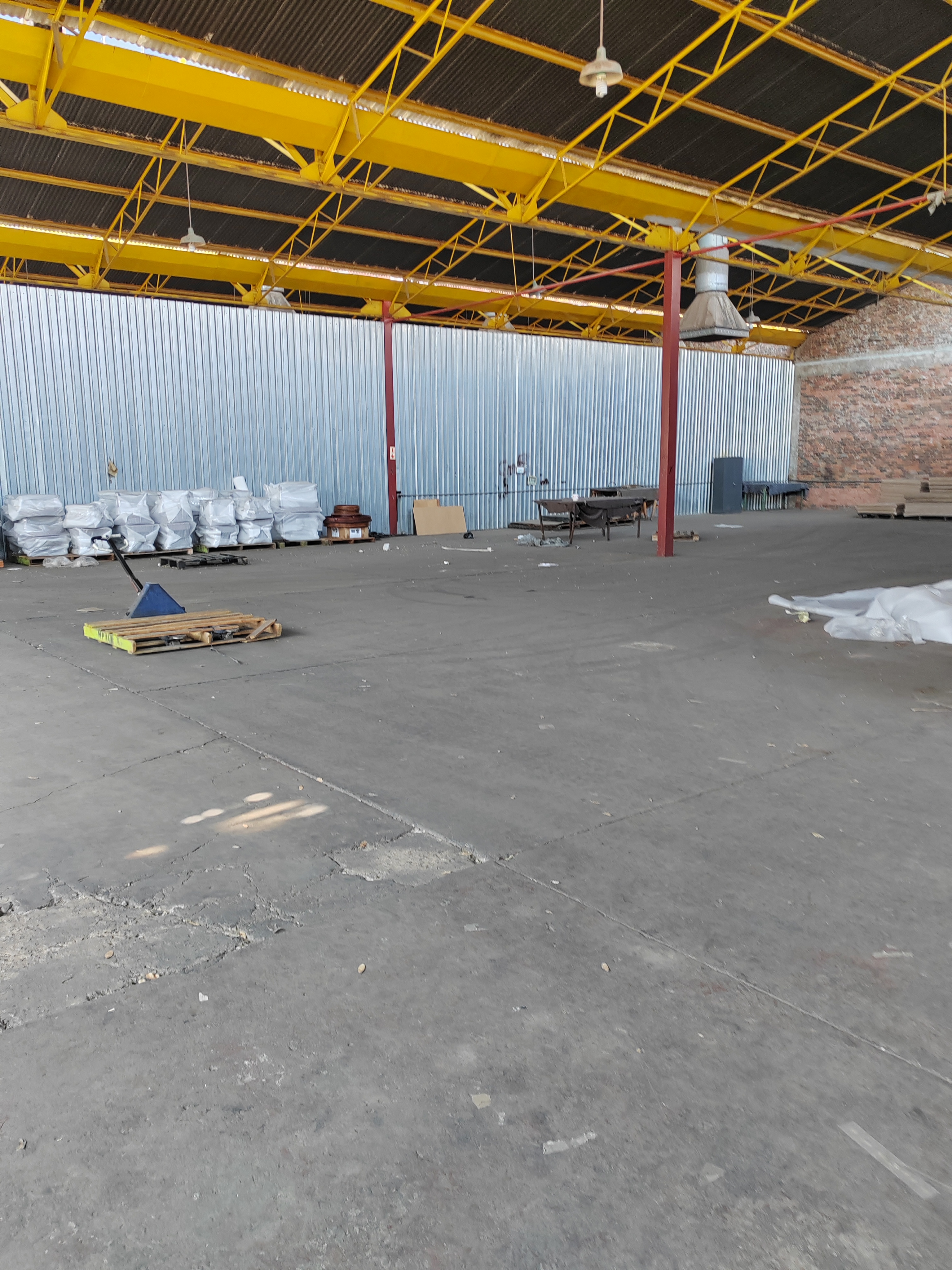 Big 3350m2 warehouse or factory well maintained with 5x 5meter roller doors and in good condition. Natural light and no roof leaks. Office section with reception in front and warehouse at the back. Ablution for men and women, extra storage facility all secured by security fence, palisade and brick walls. Under roof parking for 6x cars, secured entrance, all on a 4025m2 stand. 3 phase power available