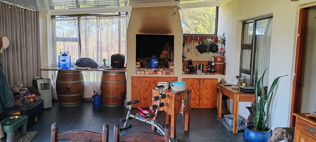 Main house with 3 bedrooms, 2 bathrooms, kitchen with scullery, and entertainment room with braai