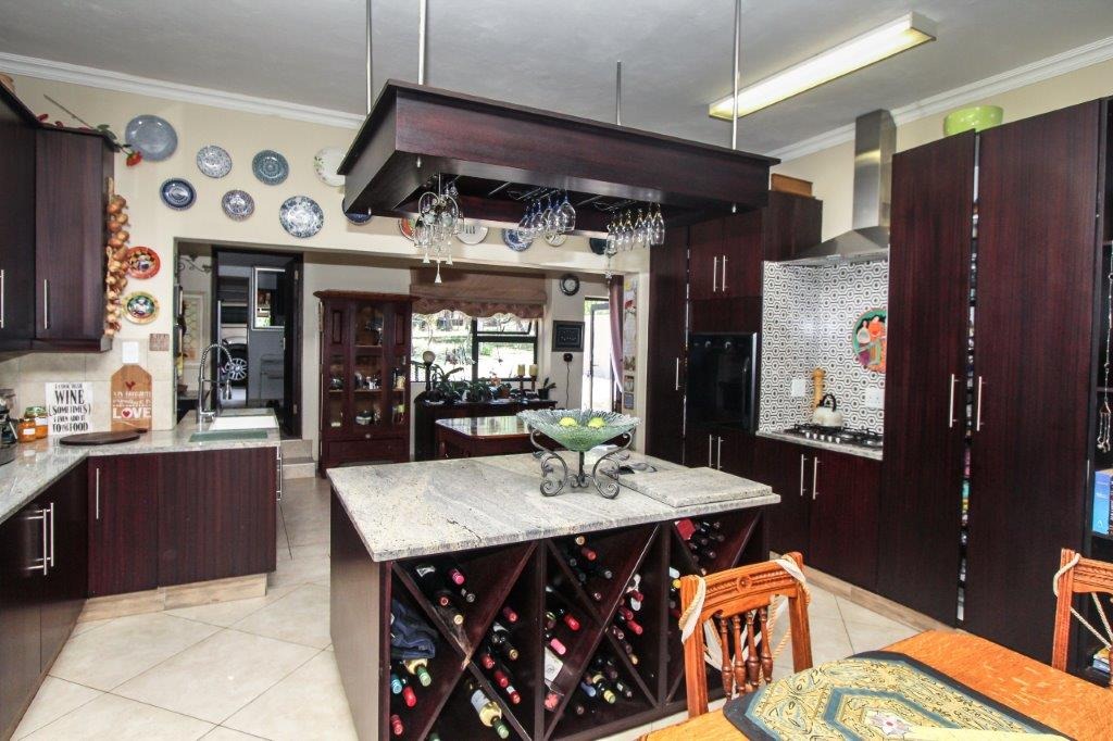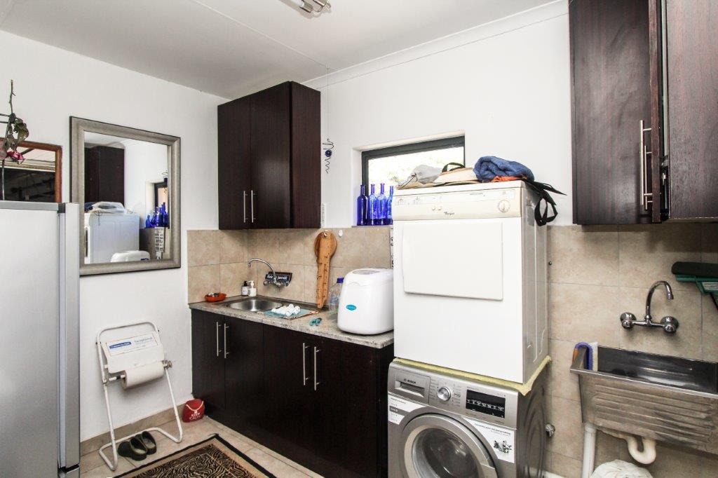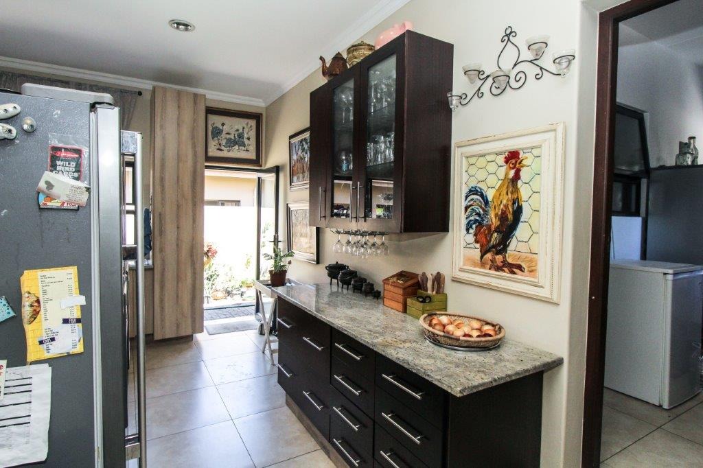 The kitchen, a modern culinary masterpiece, features both gas and electric hobs, a pantry, and a scullery that doubles as a laundry room with ample storage. Sunlight bathes the three bedrooms, with the master suite boasting an en-suite bathroom and walk-in closets, safeguarding your treasures in a secret safe area.