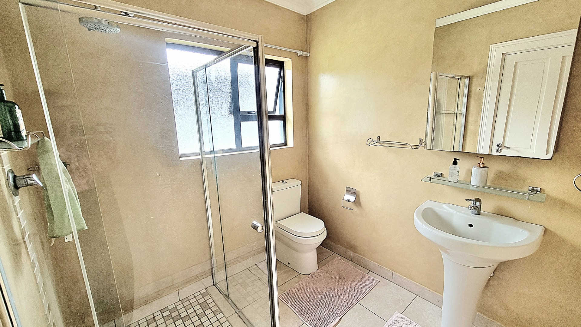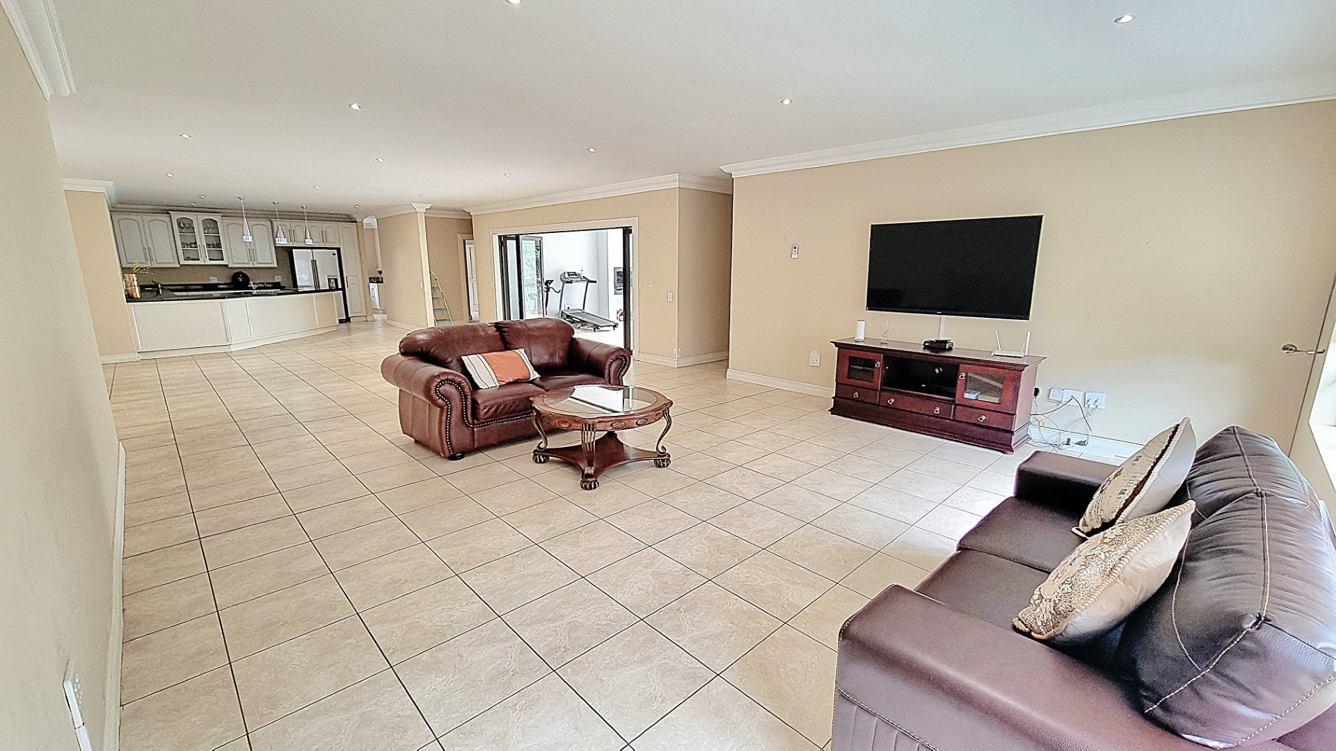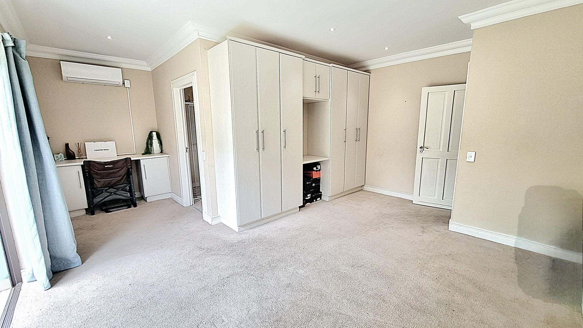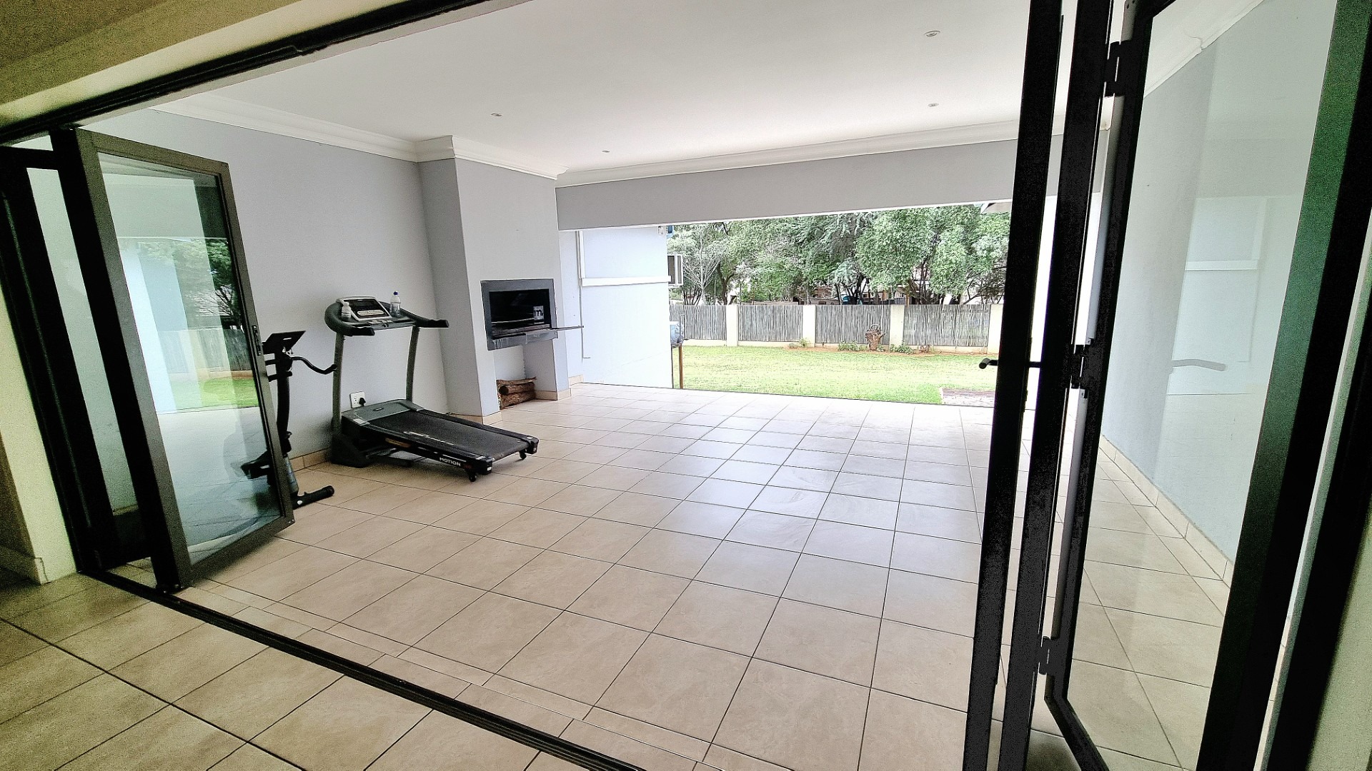 The entertainment area is a showstopper, opening up with stacker doors to a covered patio with a built-in braai, overlooking the backyard. Whether hosting a braai with friends or simply enjoying the tranquility of your surroundings, this space is designed for relaxation.