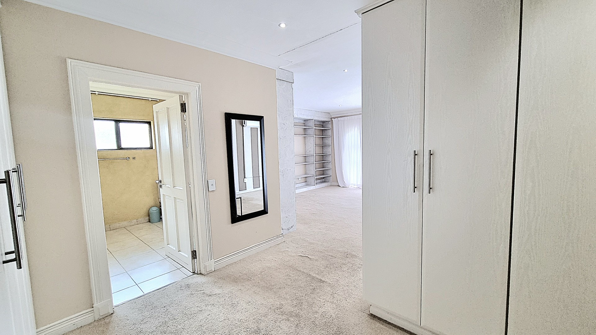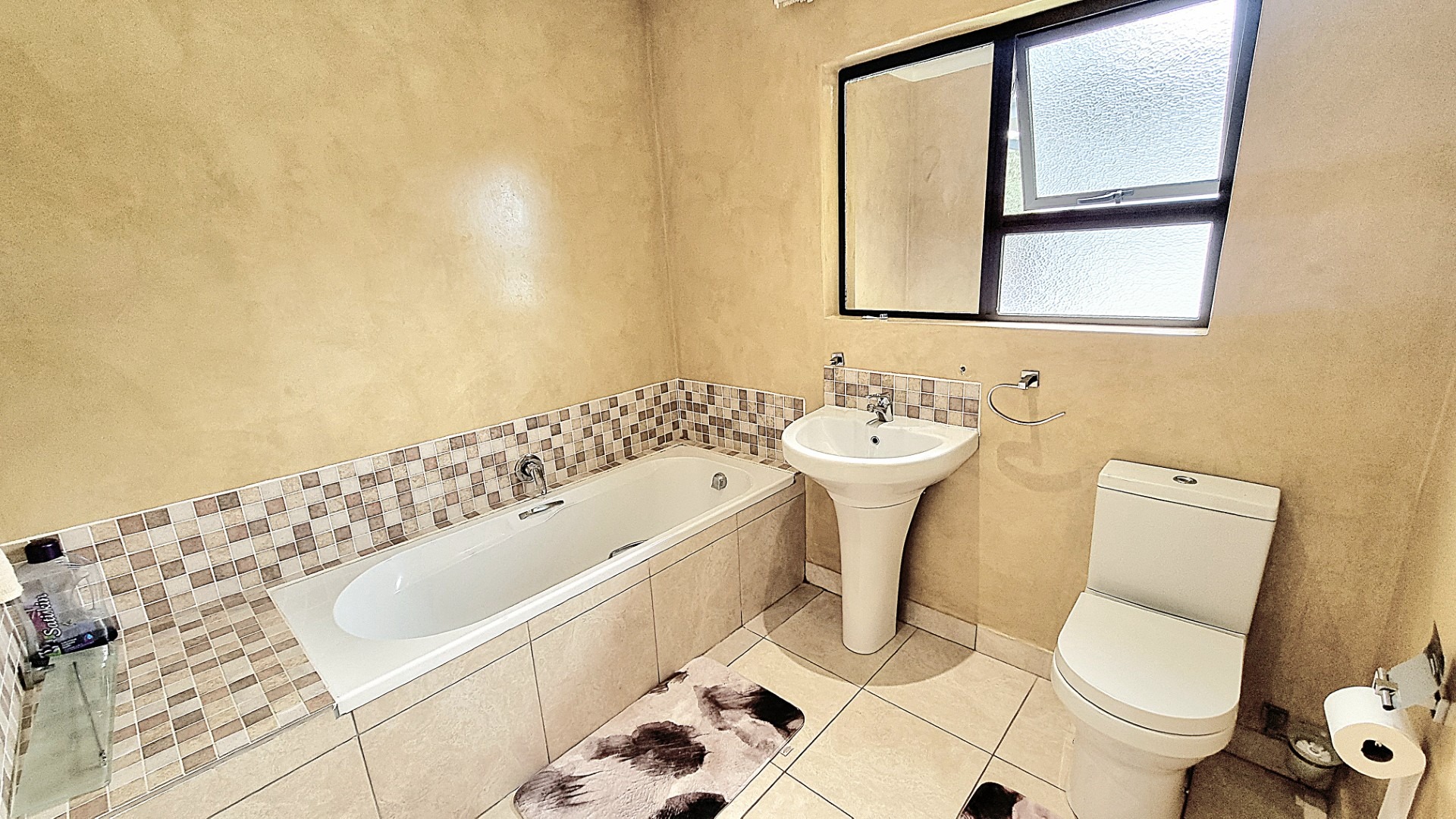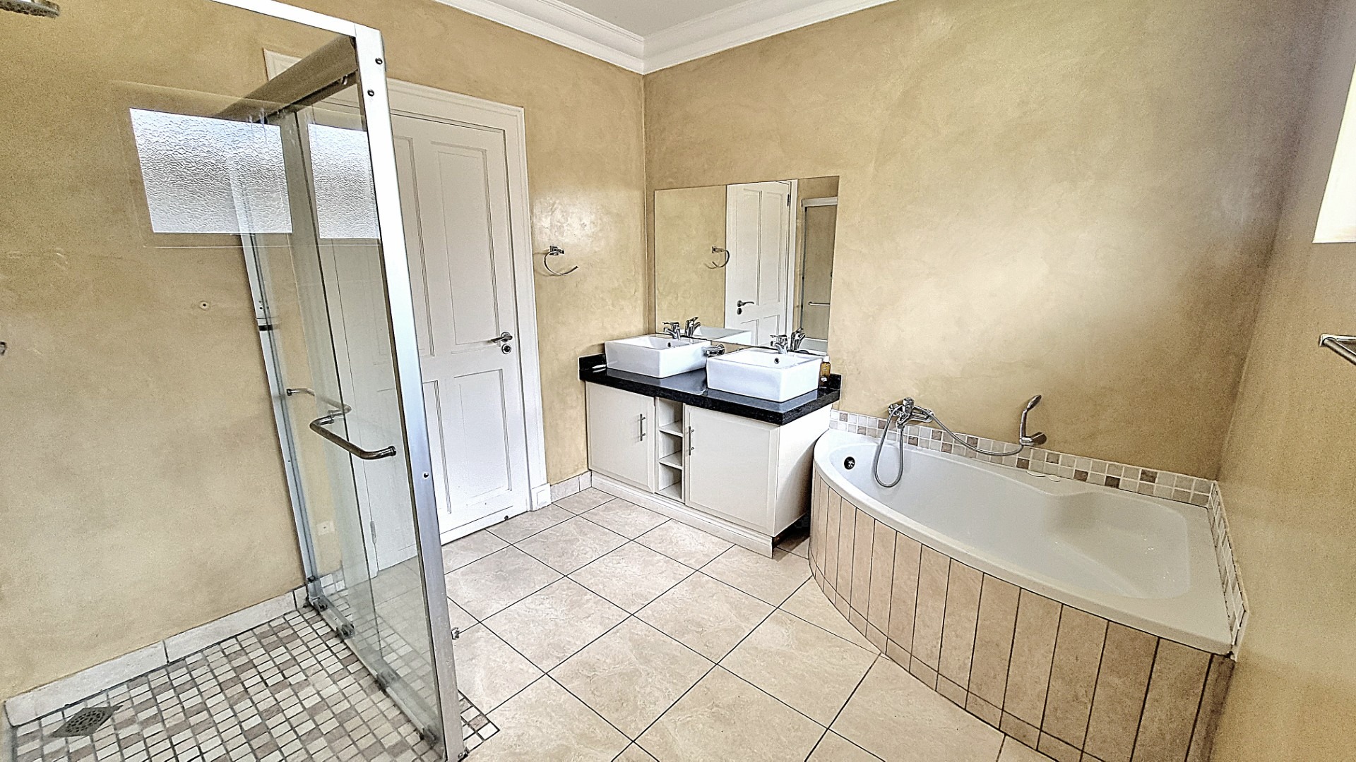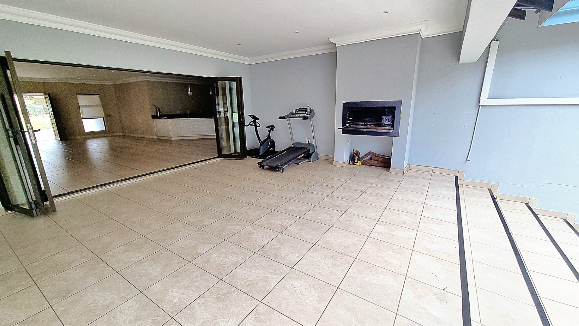 The entertainment area is a showstopper, opening up with stacker doors to a covered patio with a built-in braai, overlooking the backyard. Whether hosting a braai with friends or simply enjoying the tranquility of your surroundings, this space is designed for relaxation.