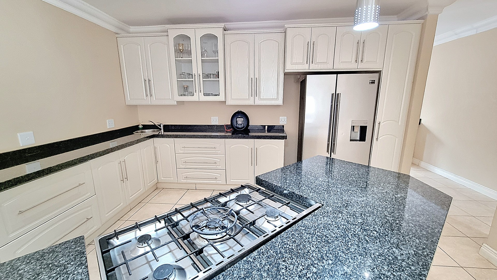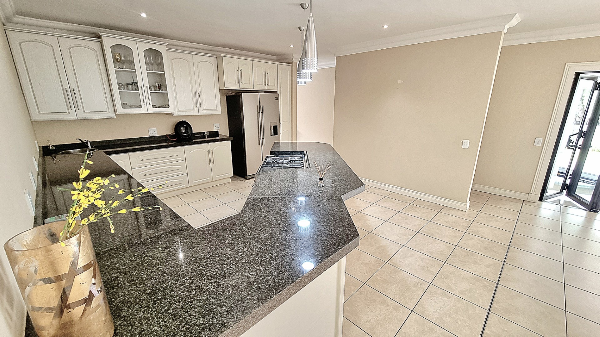 The contemporary kitchen, featuring Rustenburg granite countertops, a breakfast nook, and a gas stove, is perfect for the home chef. A bonus is the seperate scullery and a huge pantry.