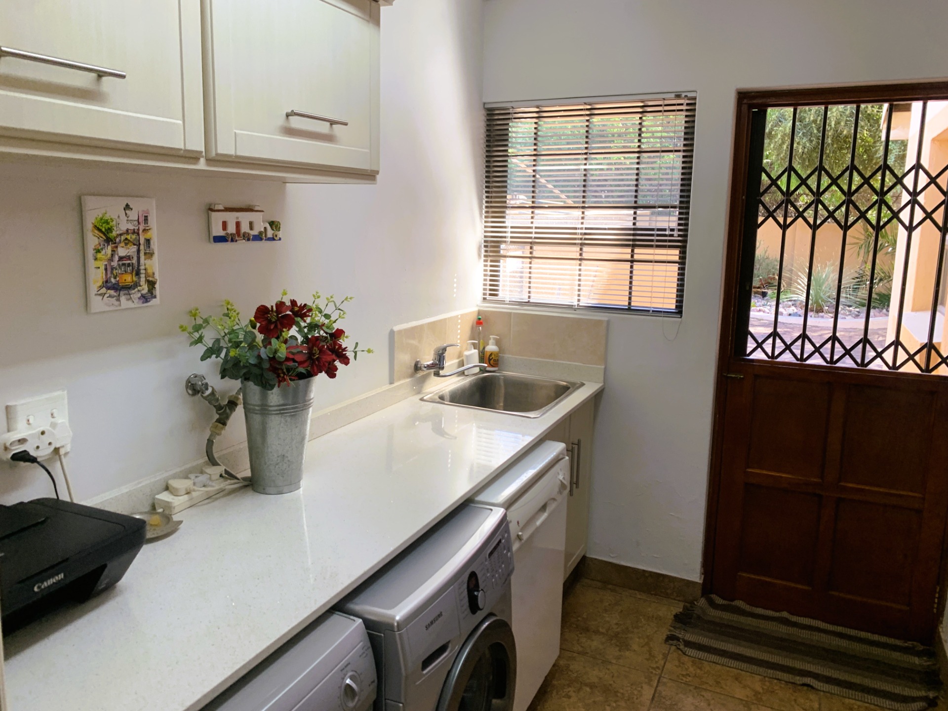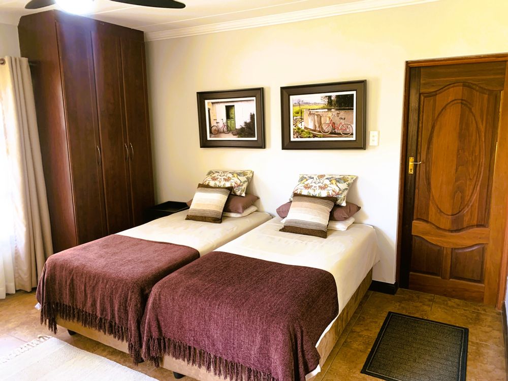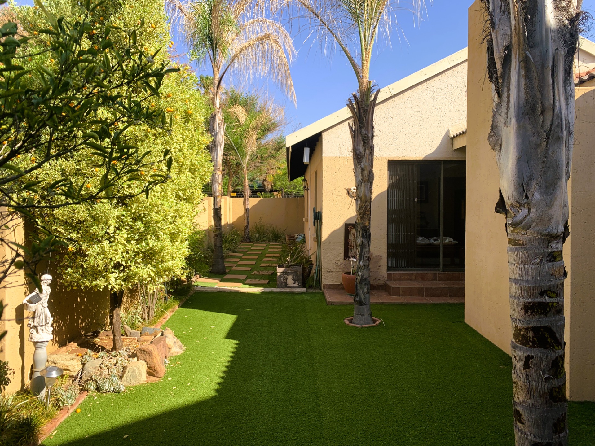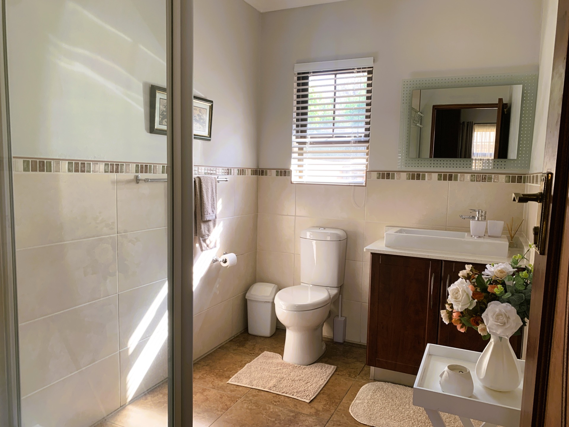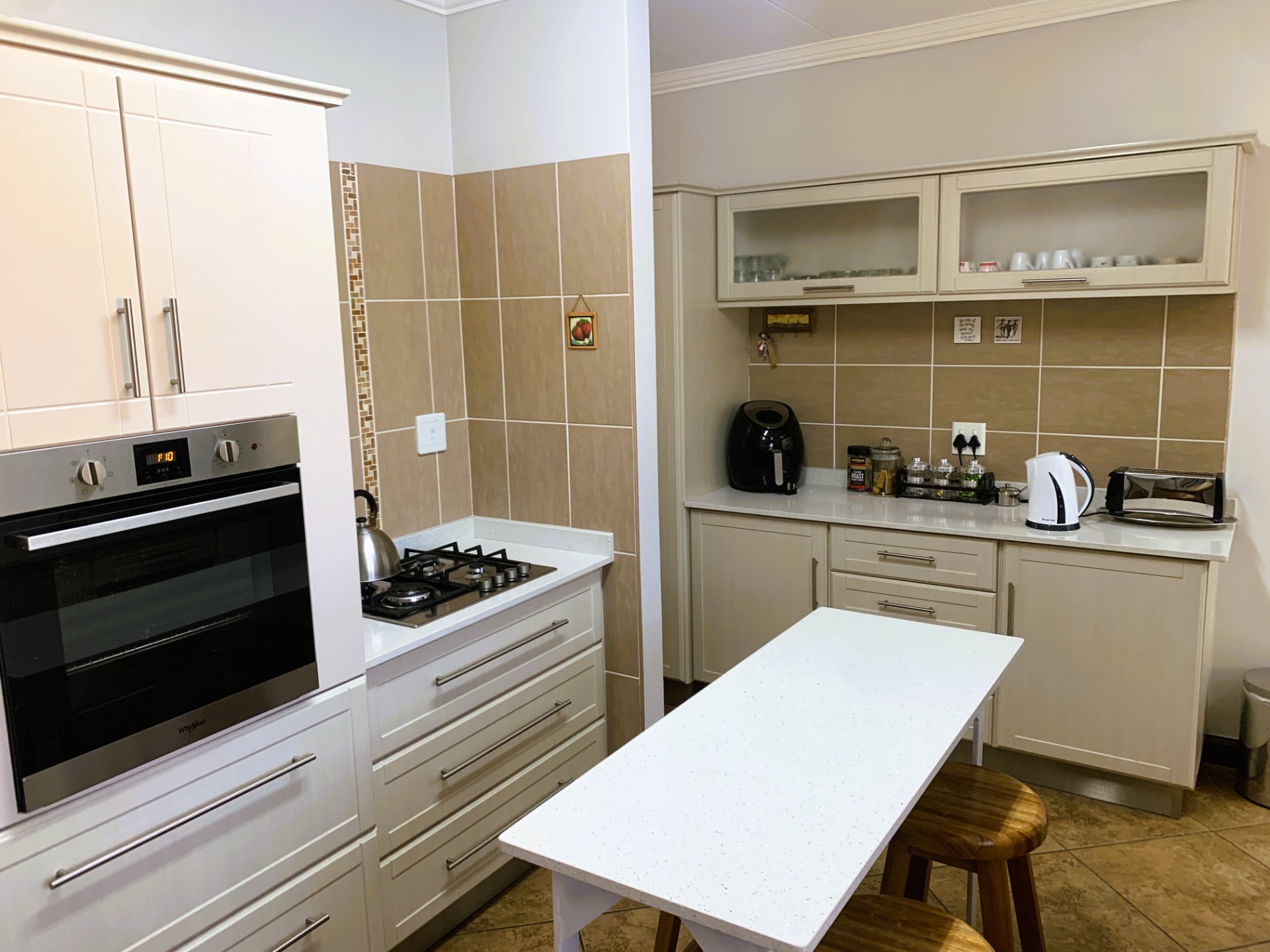 Entertain in style on the second covered patio, which boasts a built-in braai, or unwind in your serene private garden—a true oasis for relaxation and gatherings.