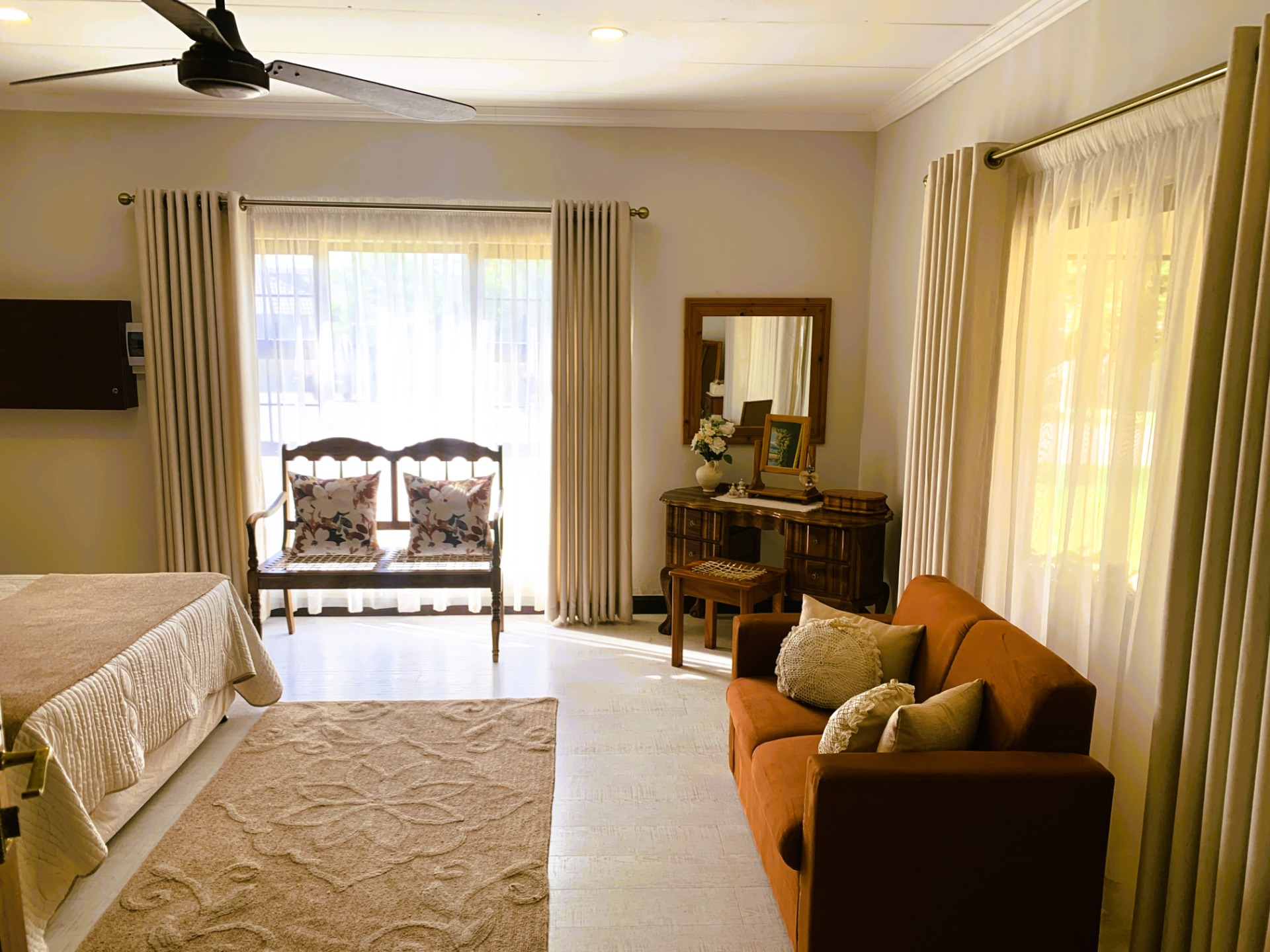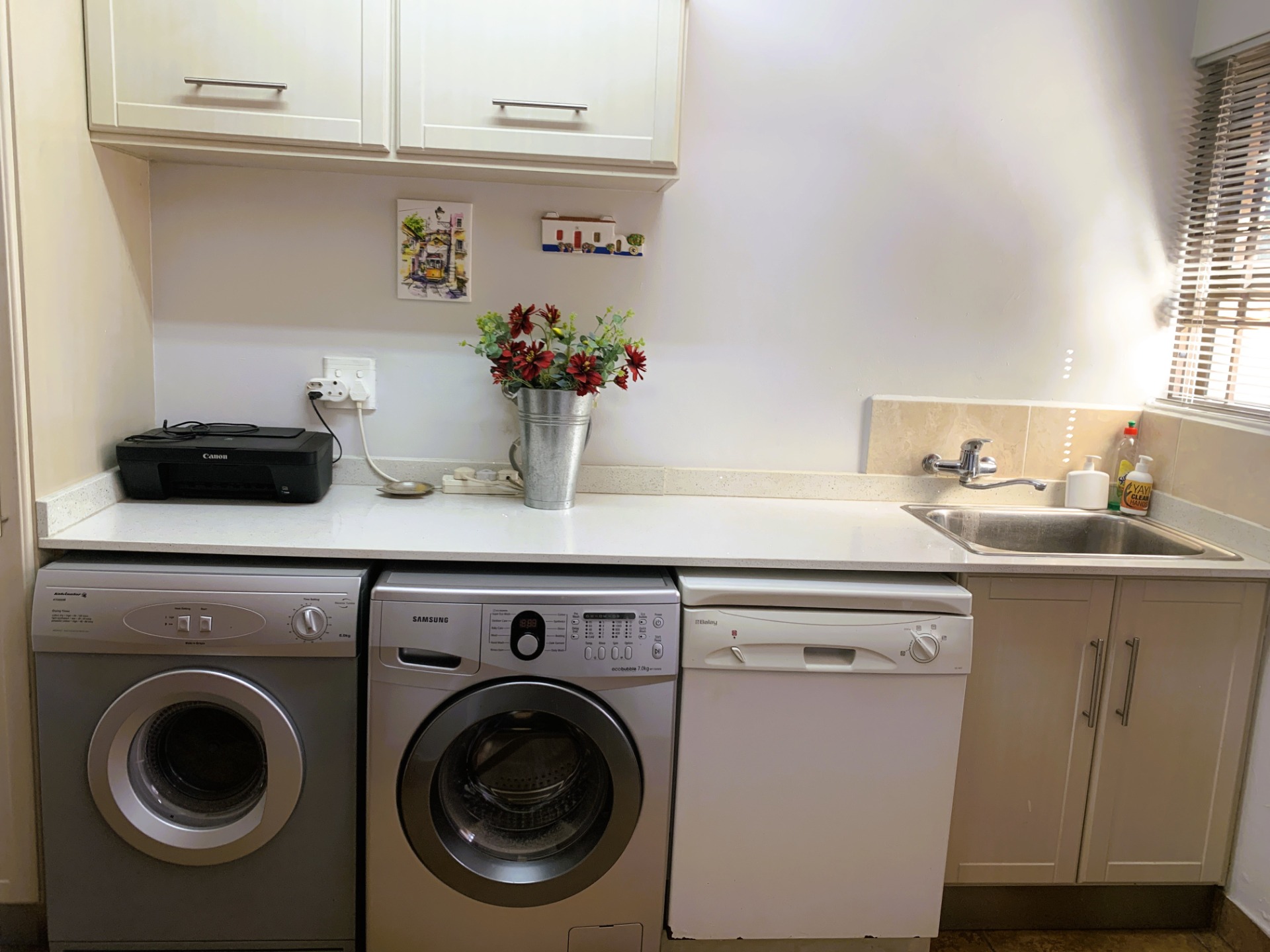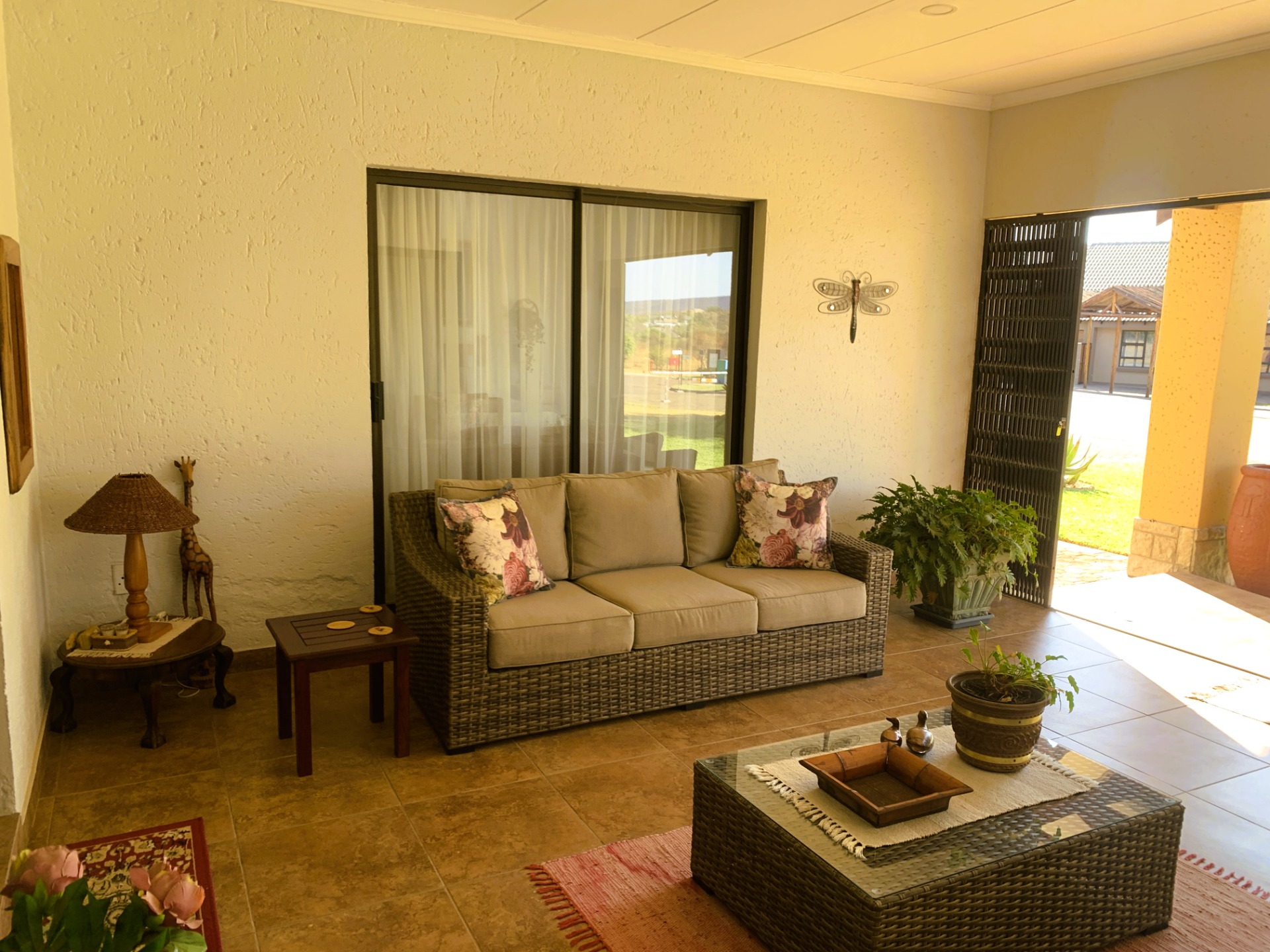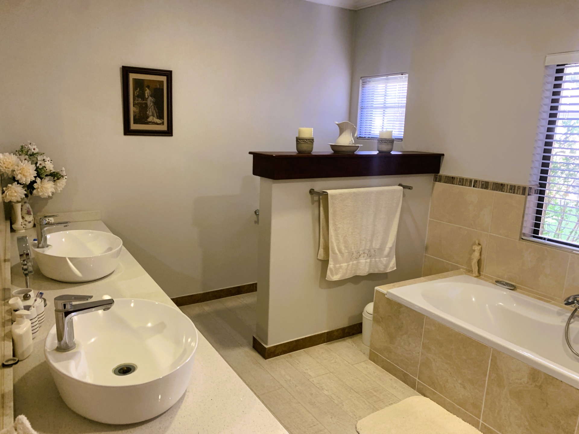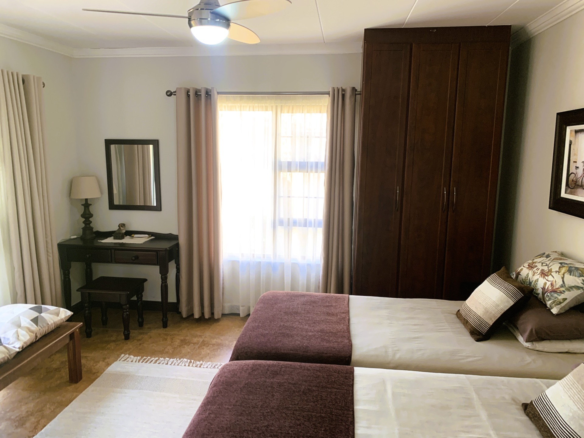 Entertain in style on the second covered patio, which boasts a built-in braai, or unwind in your serene private garden—a true oasis for relaxation and gatherings.