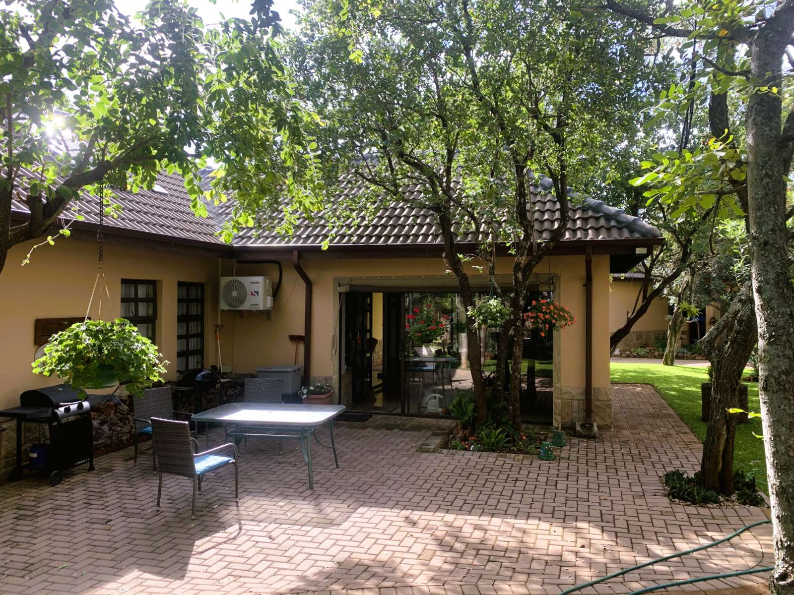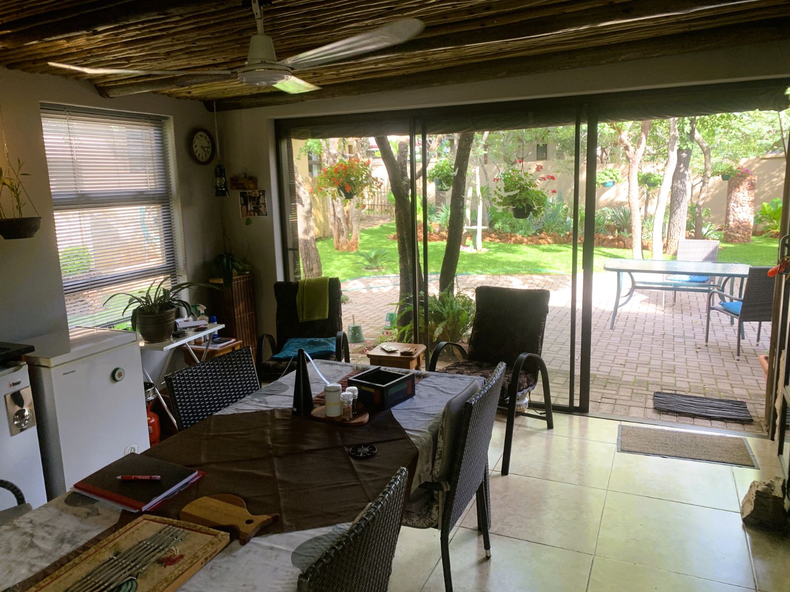 Looking for a tranquil and secure lifestyle in the heart of Limpopo? This stunning 3-bedroom sectional title unit in the Koro Creek Bushveld Golf Estate in Modimolle offers modern living in a picturesque setting. The home features 3 spacious bedrooms with built-in cupboards, 2 full bathrooms (main en-suite), and a spacious open-plan lounge, dining area, and kitchen. Step out onto the enclosed patio with a built-in braai leading into the lush well-kept garden for ultimate outdoor relaxation. The unit also offers a double garage with electric doors, a laundry area, and convenient access to the courtyard.
