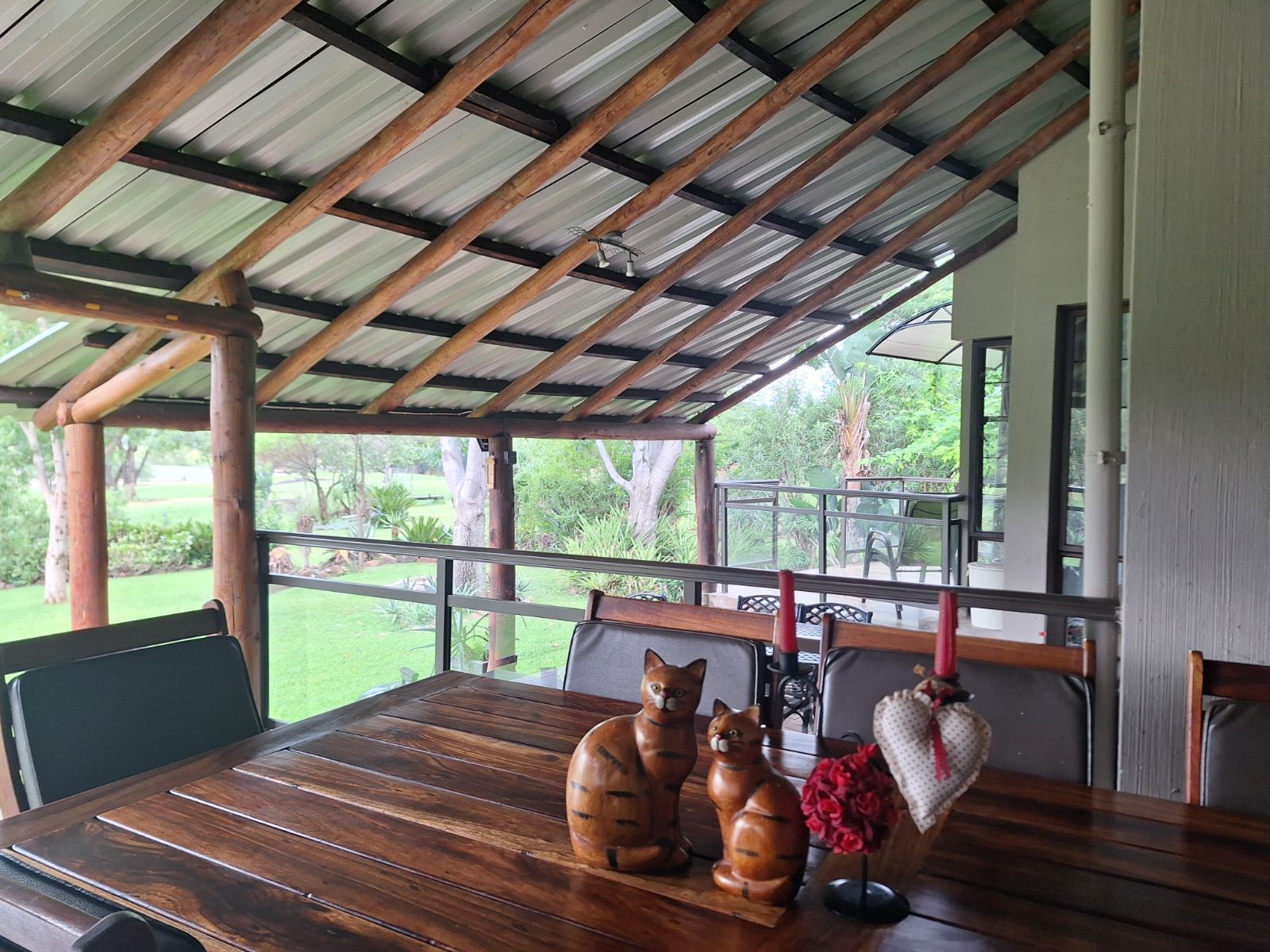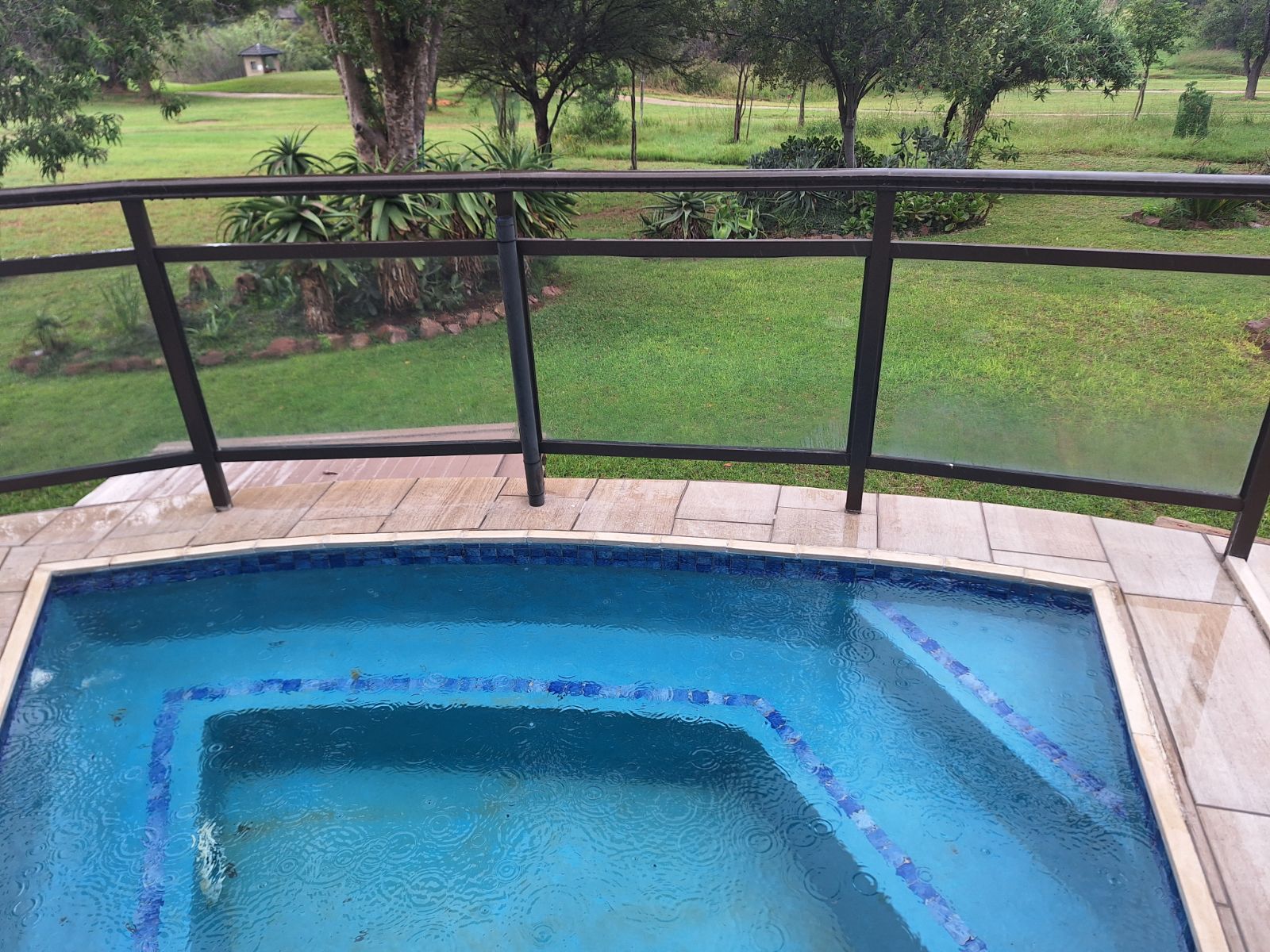 Designed for effortless living, the spacious open-plan layout features a stylishly renovated kitchen with a separate scullery and laundry, seamlessly flowing into the dining and living areas. A second lounge, adorned with sliding doors, opens onto a wraparound patio with a covered entertainment space, dining area, and a sparkling splash pool—all overlooking the lush greens of the estate.