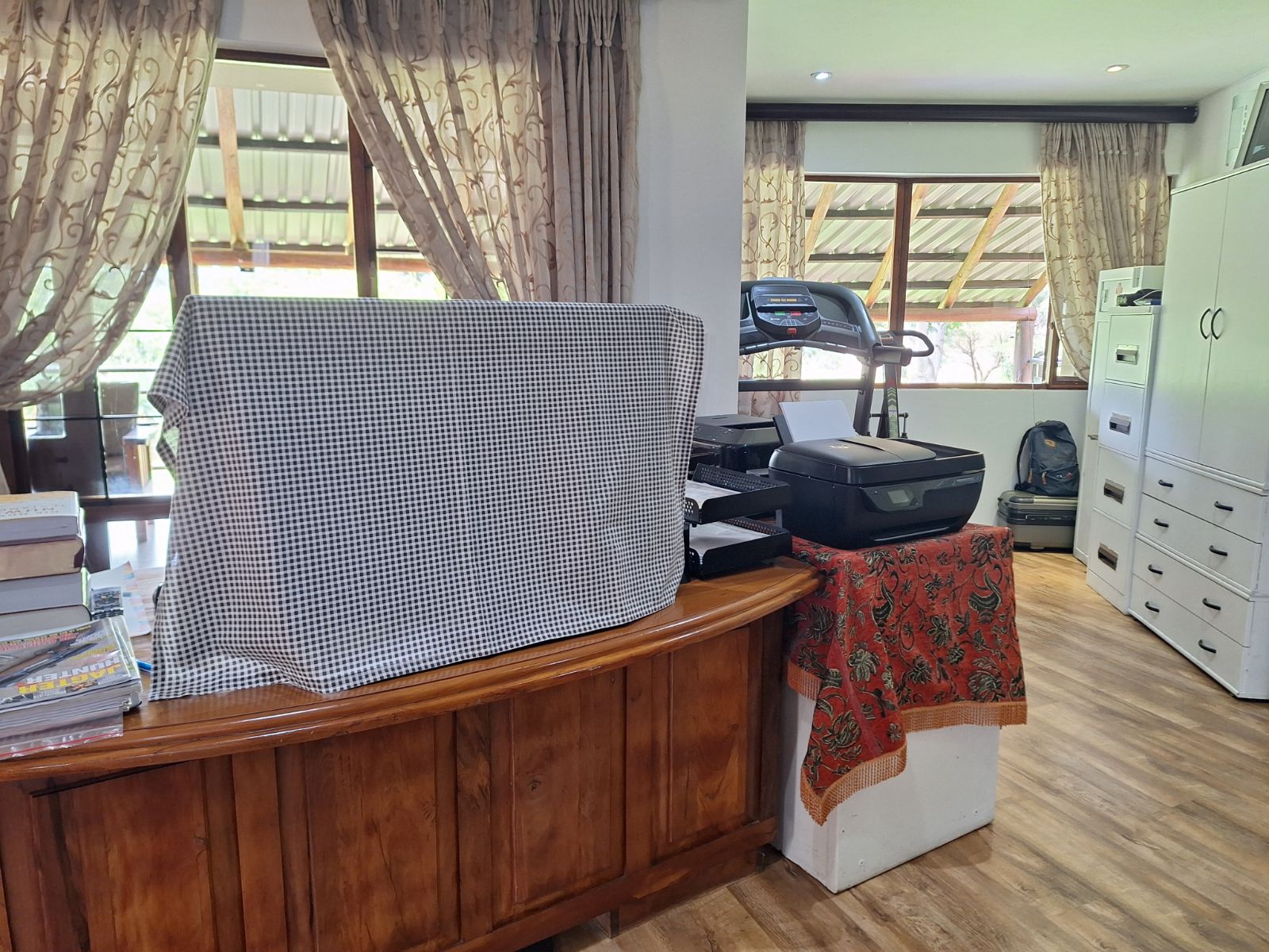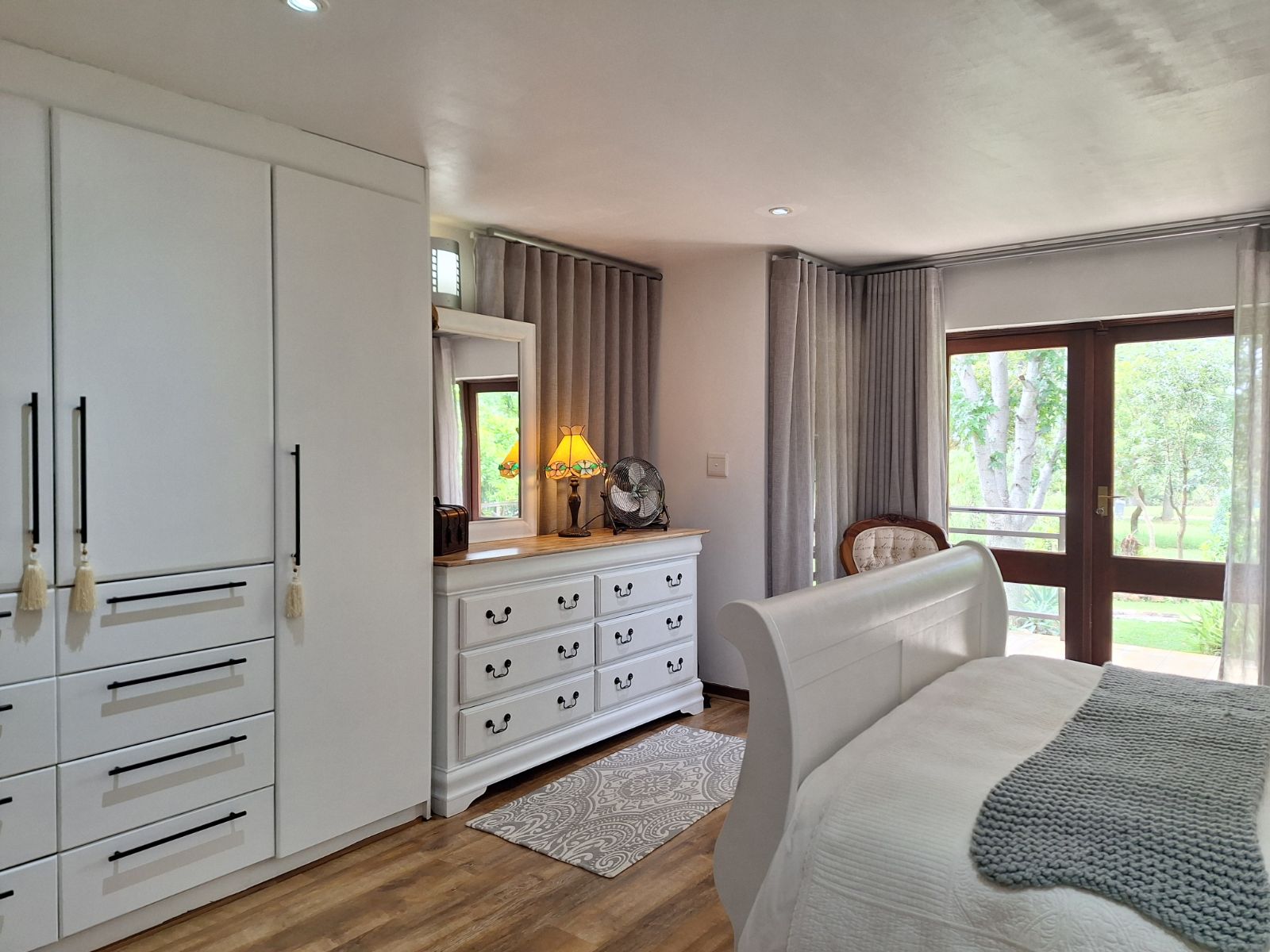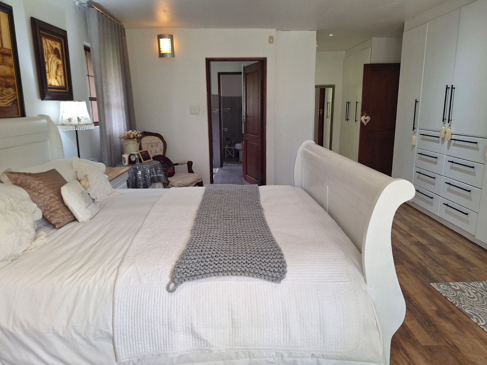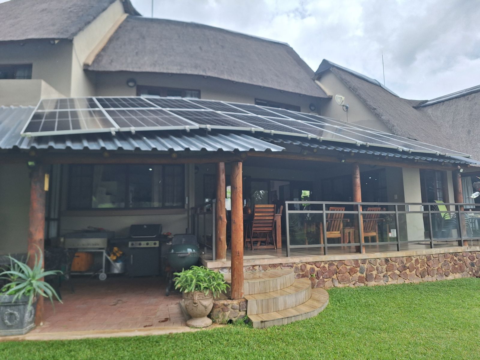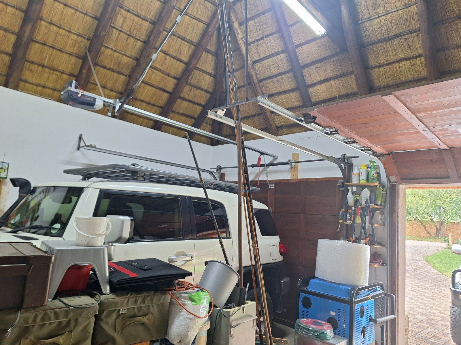 Prioritizing sustainability, the property is fully equipped with an 8kV solar system powered by 16 panels, ensuring energy efficiency. Additionally, the home runs entirely on borehole water, with two 5,000L water tanks and a pressure pump. A double garage with an automatic roll-up door provides secure parking and extra storage space.