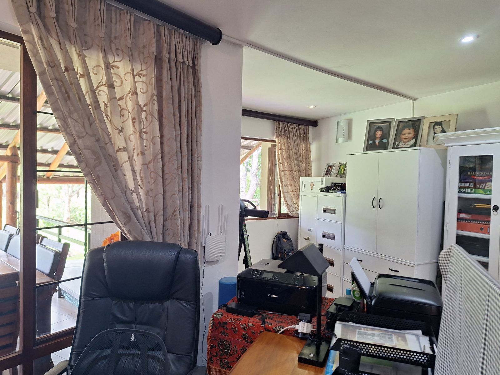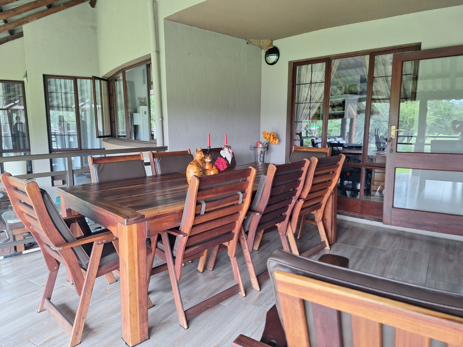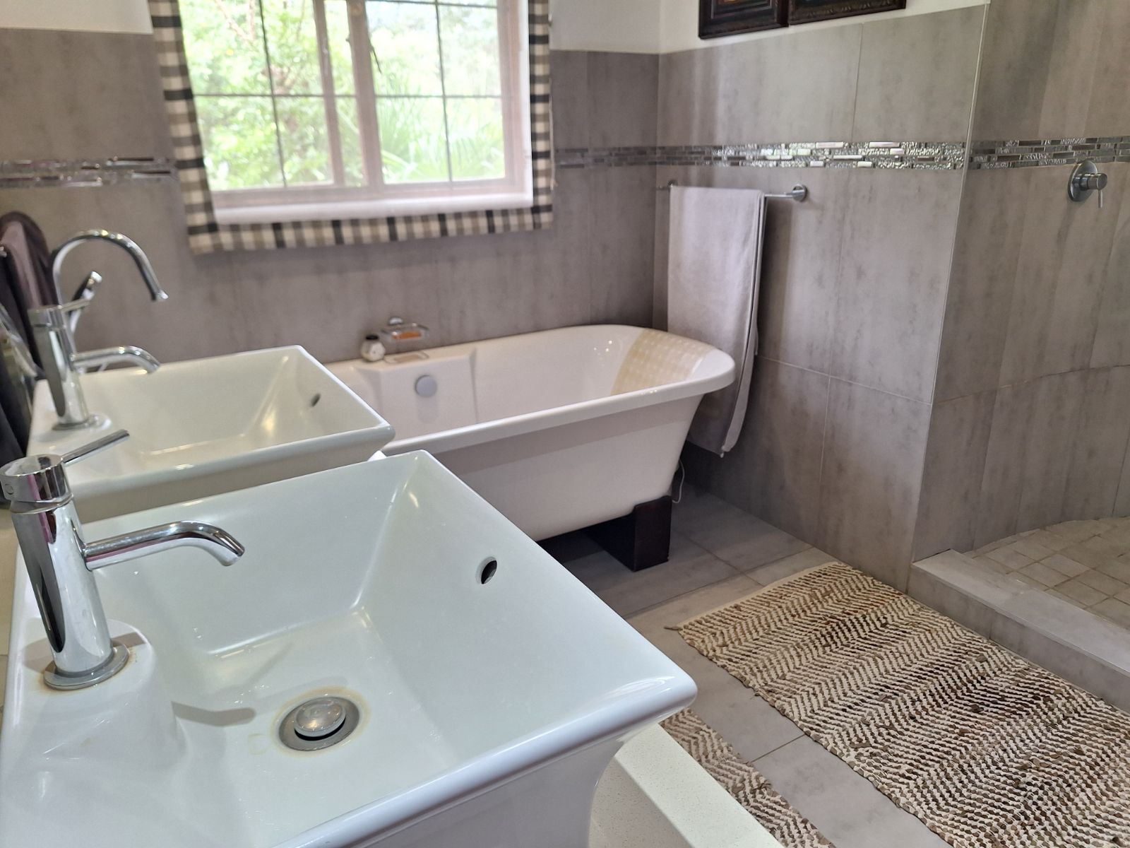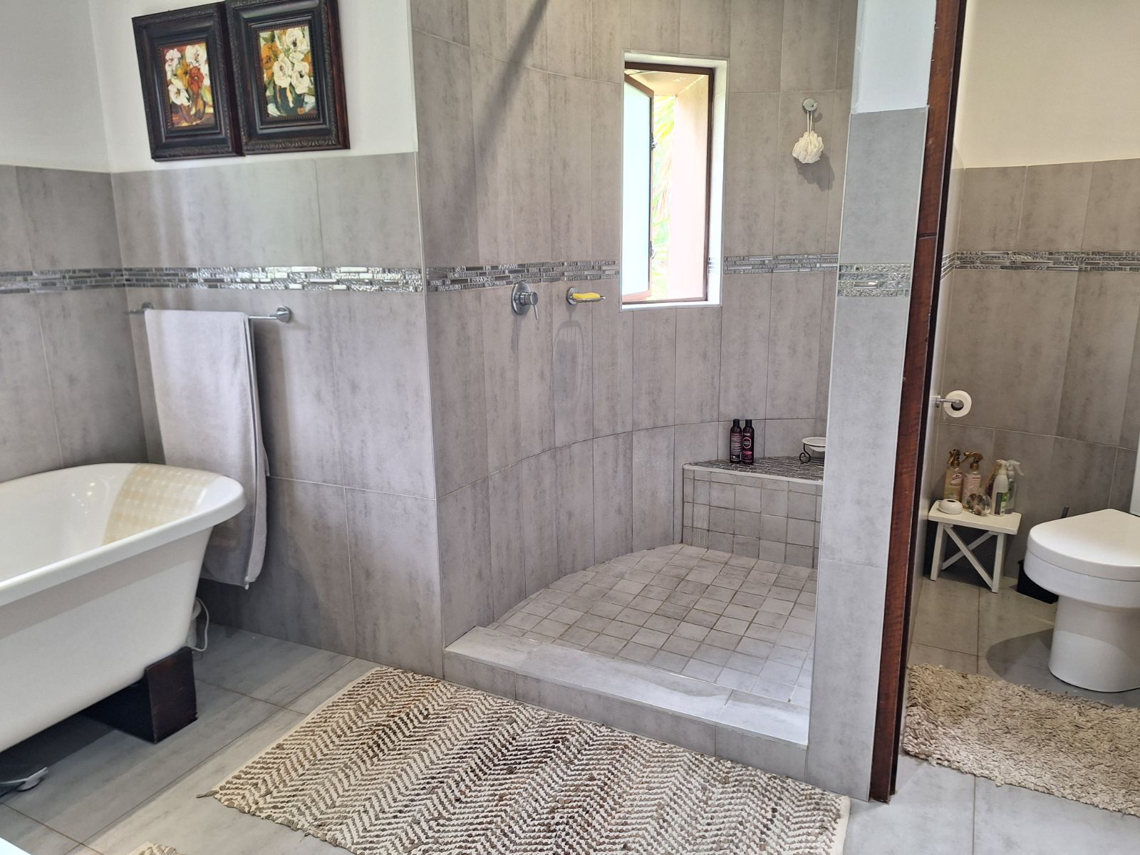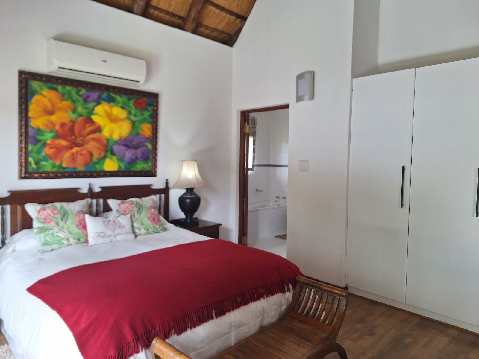 Prioritizing sustainability, the property is fully equipped with an 8kV solar system powered by 16 panels, ensuring energy efficiency. Additionally, the home runs entirely on borehole water, with two 5,000L water tanks and a pressure pump. A double garage with an automatic roll-up door provides secure parking and extra storage space.