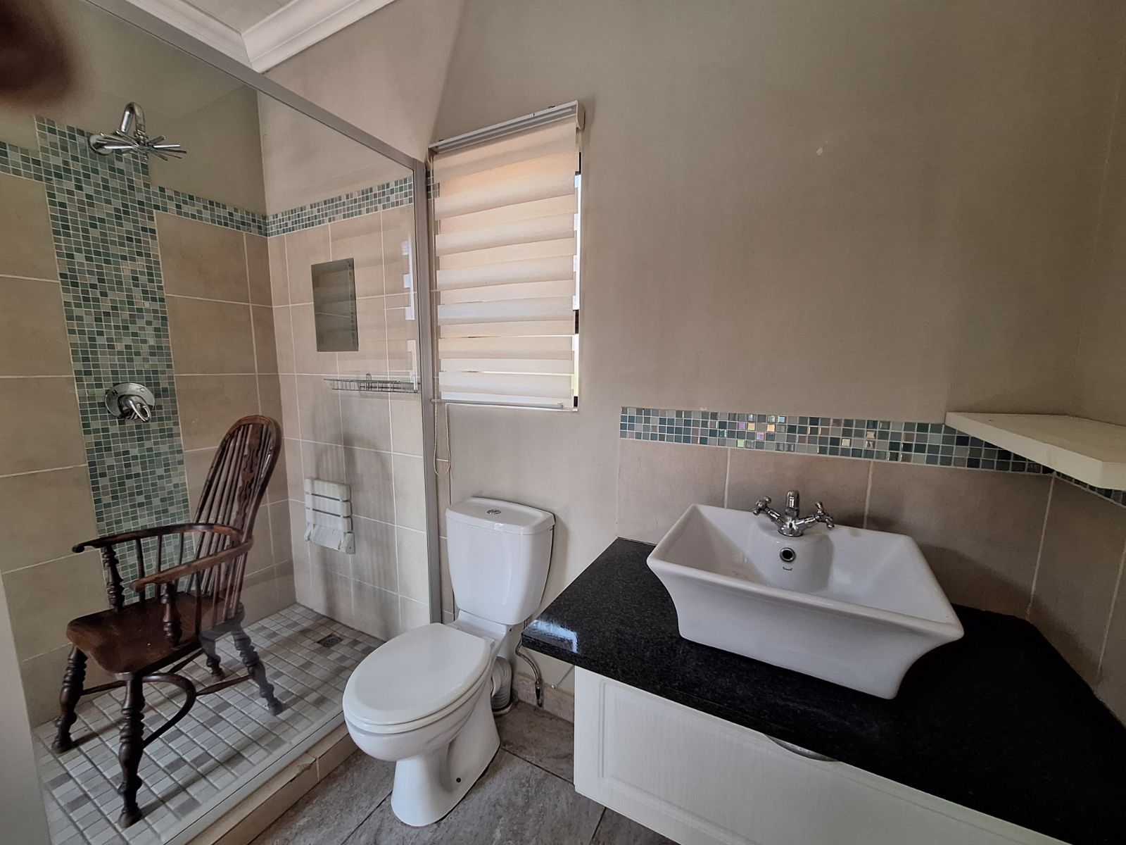 Main bedroom: Air conditioning, ample cupboard space, en-suite bathroom with shower & toilet, plus an additional outdoor shower