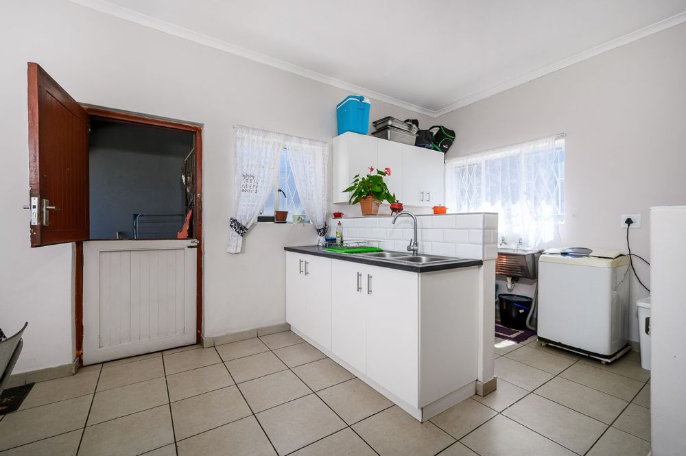 This spacious 4-bedroom home in Korsten offers comfort and convenience in a quiet neighborhood close to bus and taxi routes. It features a full bathroom with a separate toilet, a modern farm-style kitchen, and a tandem carport that accommodates up to four cars. Enjoy outdoor living with a swimming pool perfect for family fun. The property also includes a 1-bedroom flatlet with its own living room, fitted kitchen, and full bathroom — ideal for extended family or rental income.