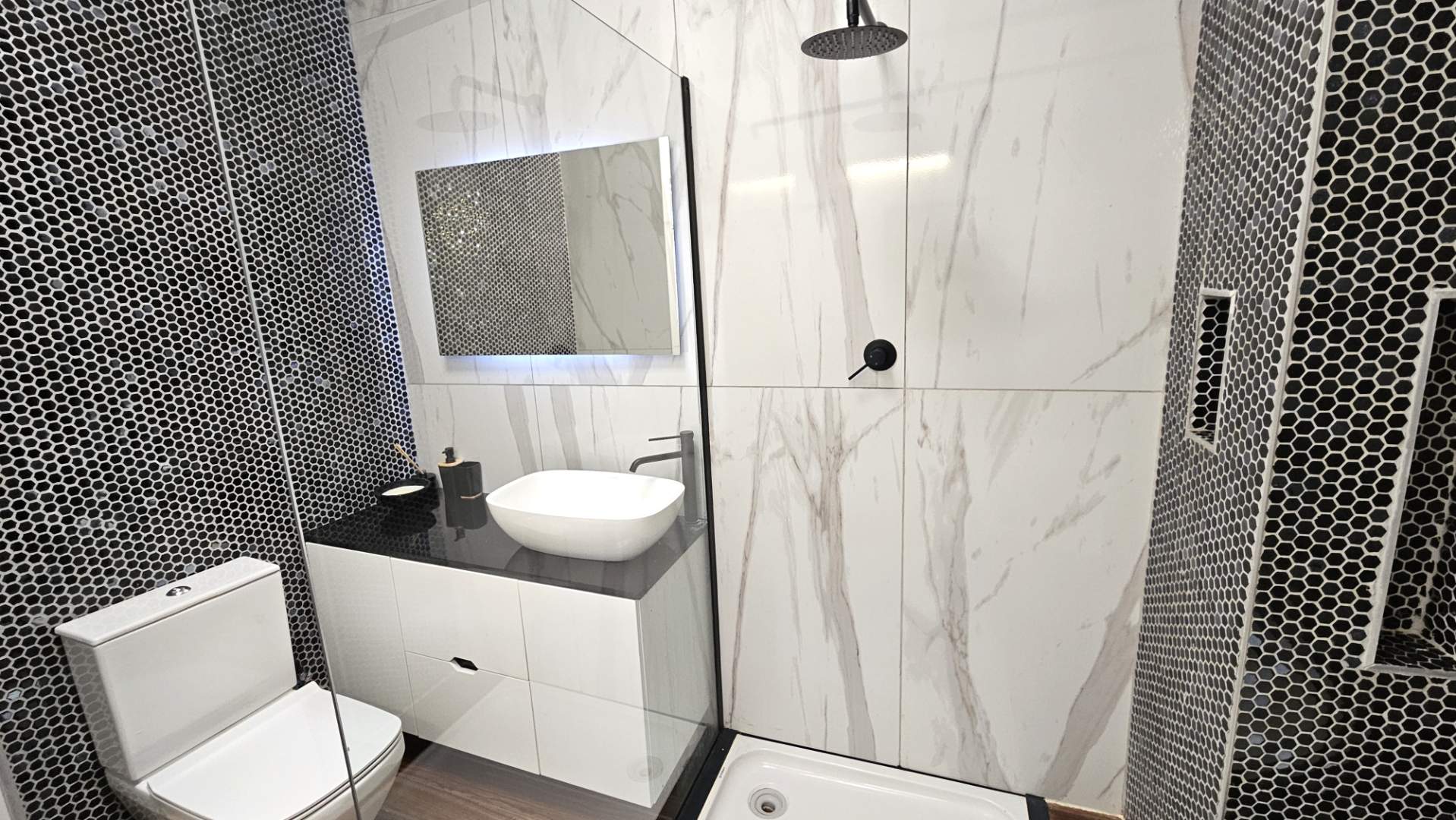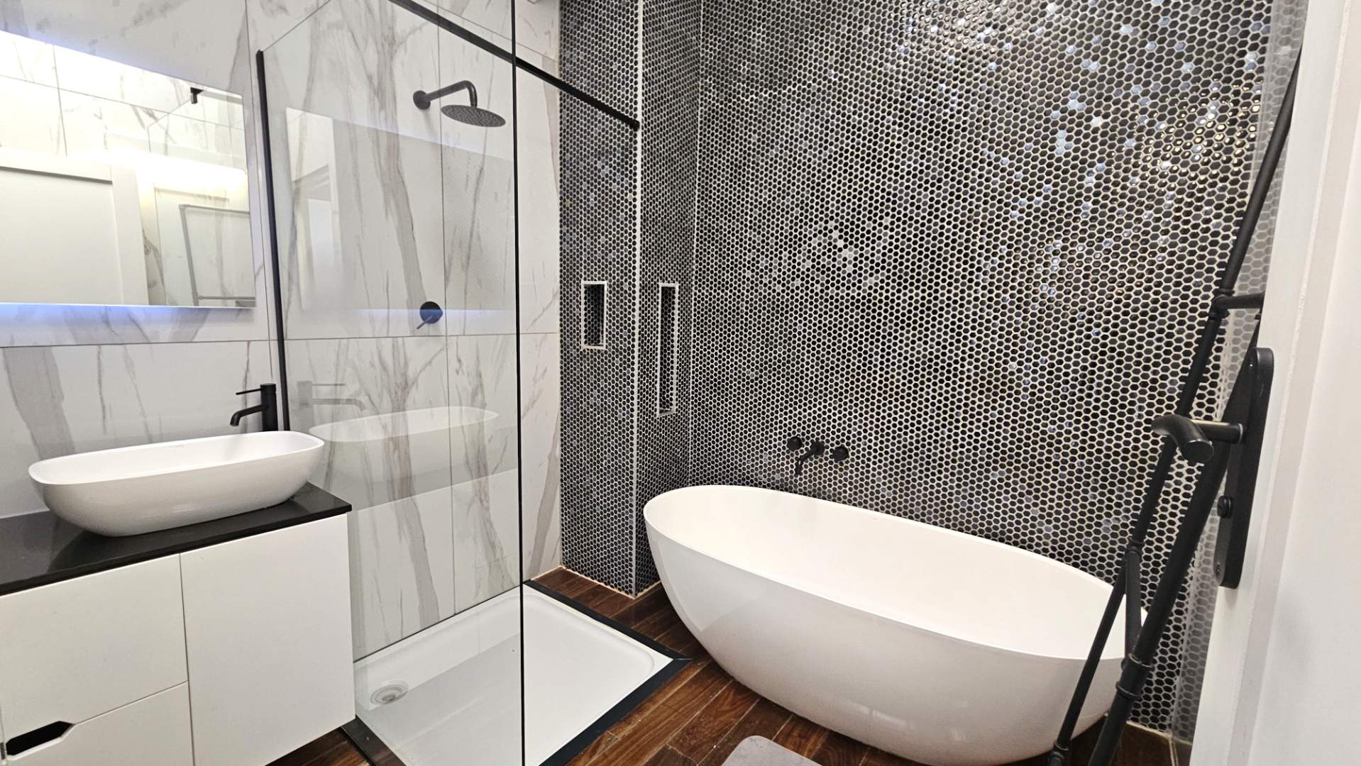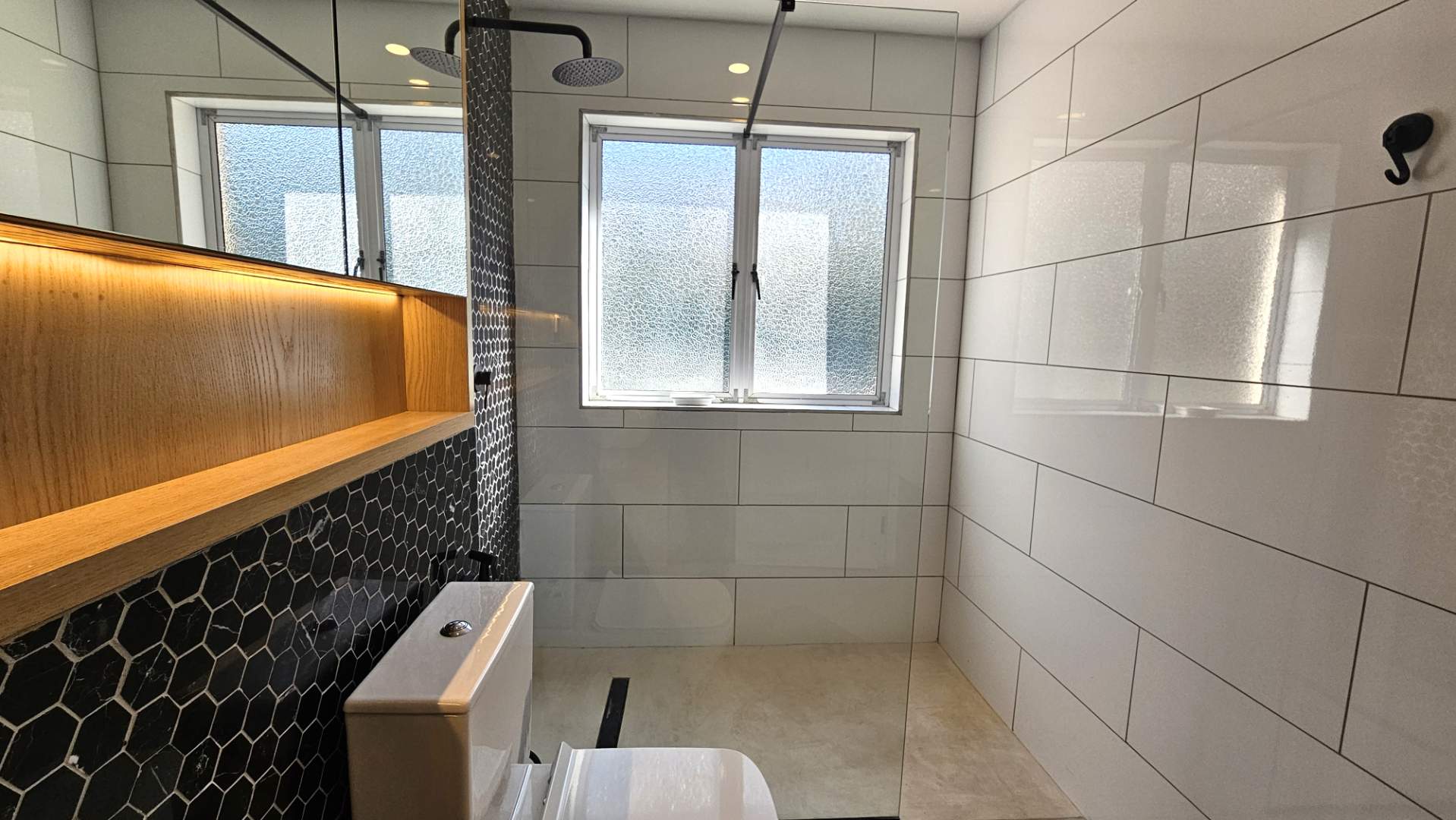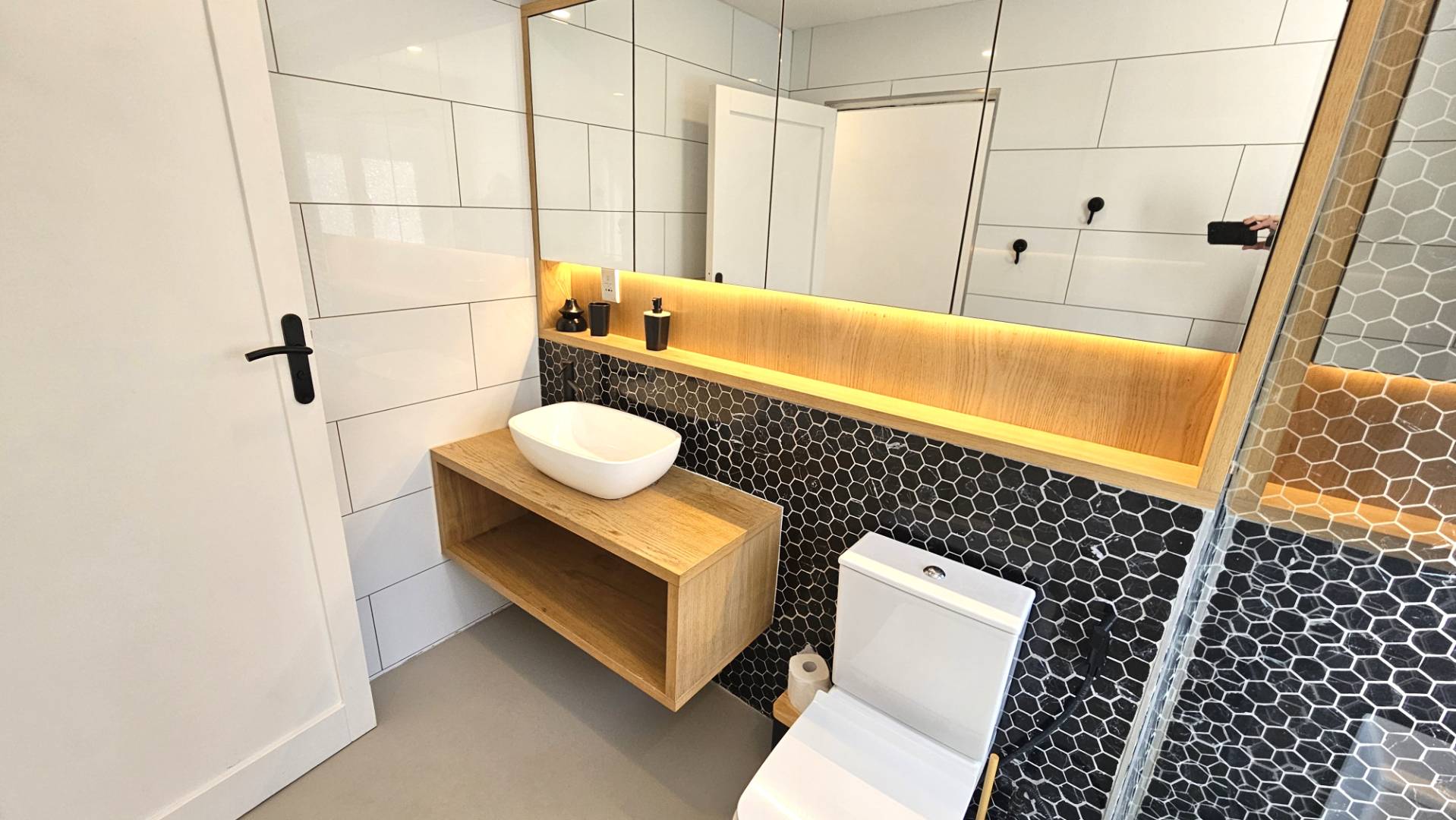 sharing a modern bathroom.