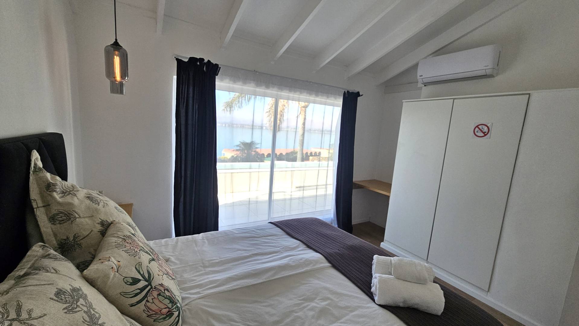 door leading to the balcony. 2 well sized bedrooms leading both to the balcony,