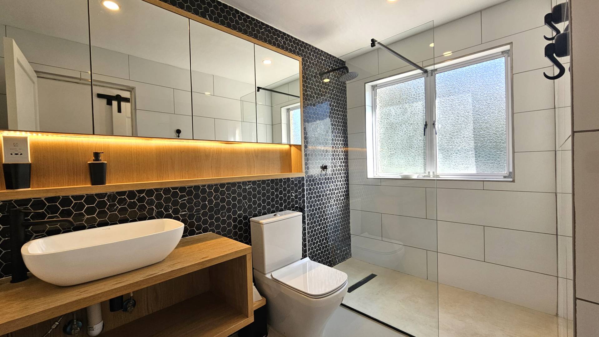 Entrance level: guest bathroom and 1 well sized bedroom with aircon.