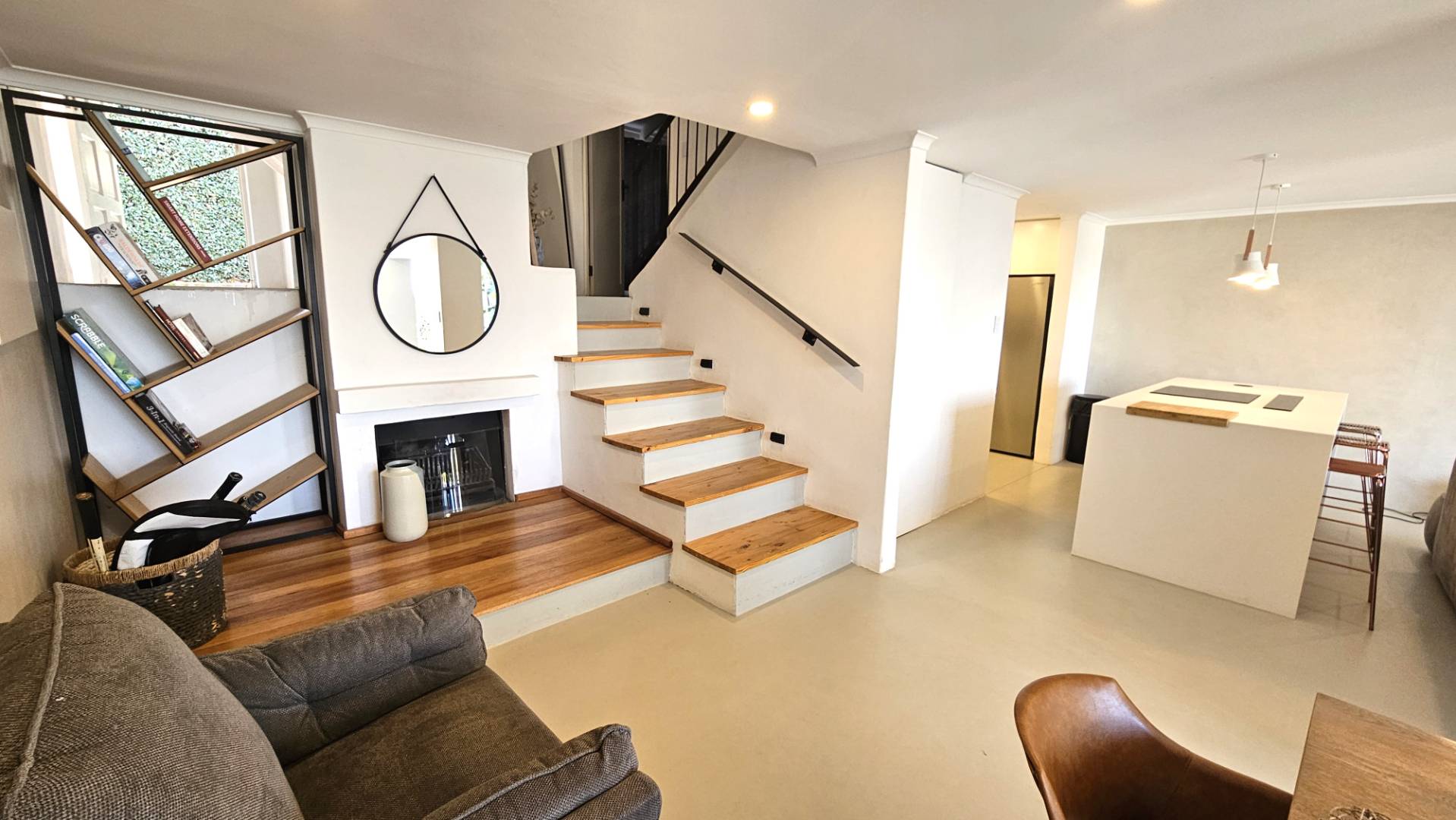 Ground level: Spacious open plan dining area, fire place, gourmet kitchen with all built in