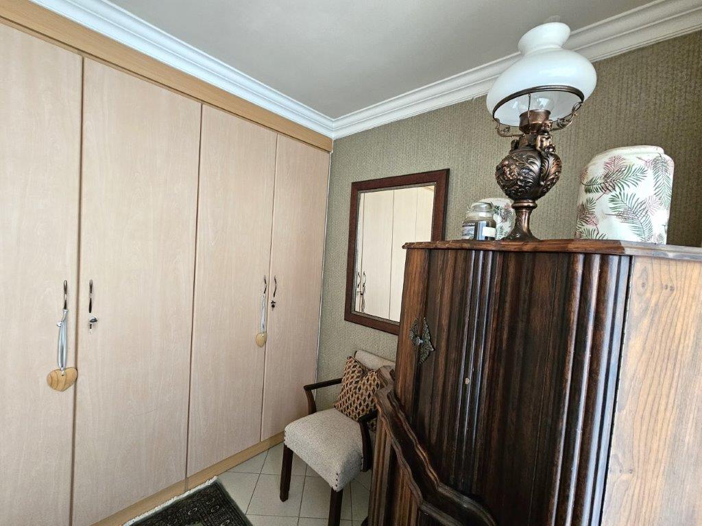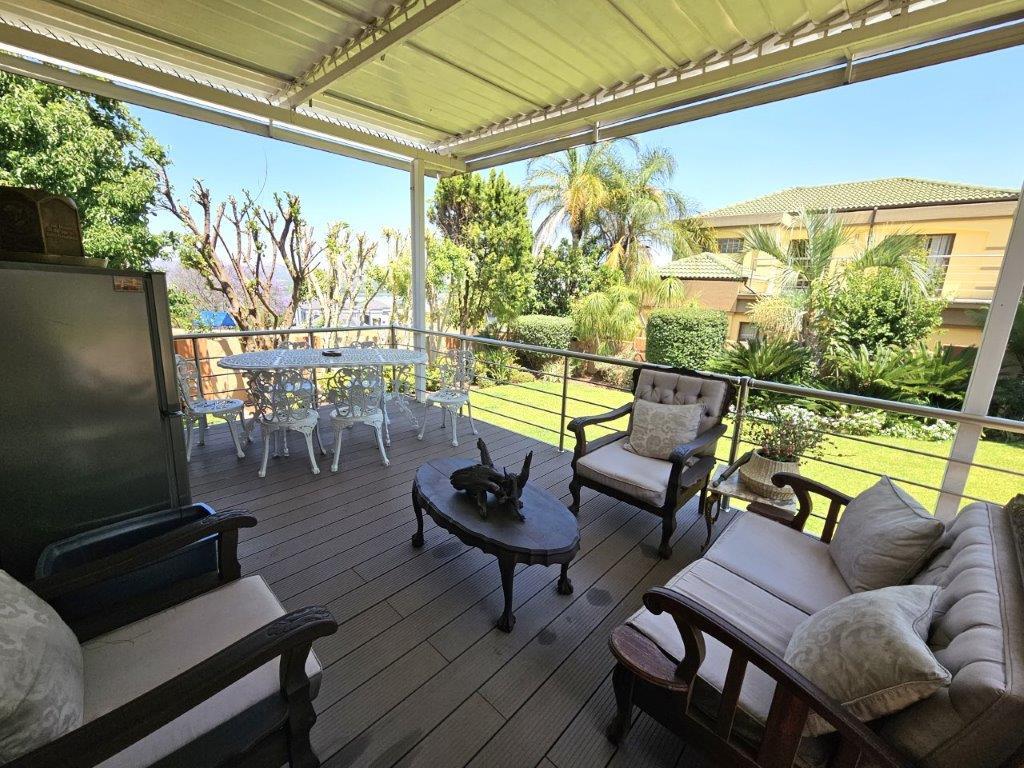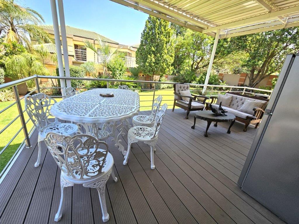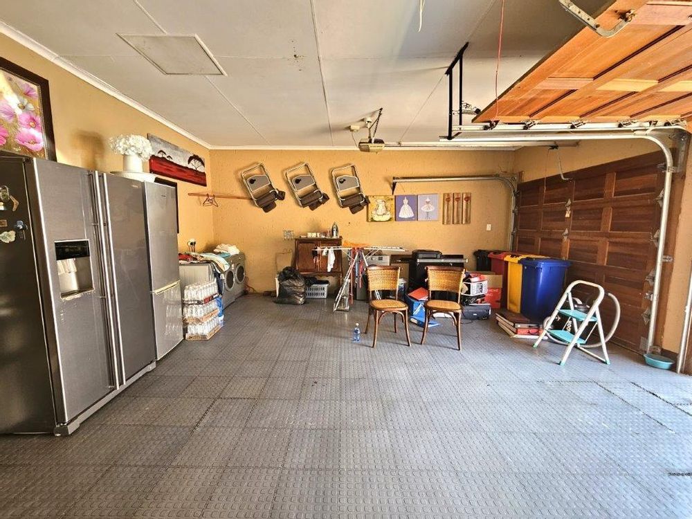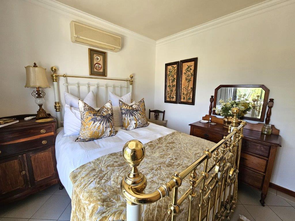 As you step through the beautiful entrance, you are greeted by a light-filled living area, with two lounges (one with sliding doors to the patio) and a dining room that opens up to the covered patio with a built-in braai. The kitchen is equipped with space for one appliance, making it ideal for those who love to cook.