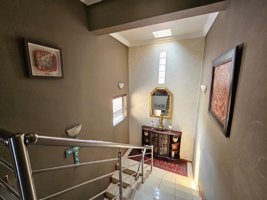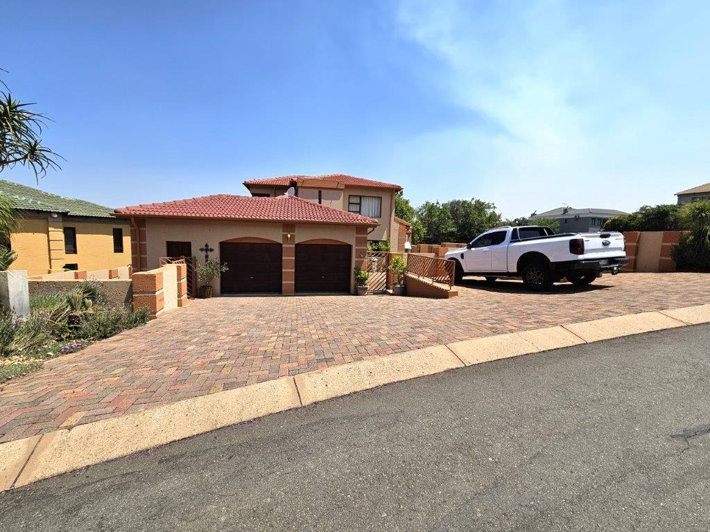 Nestled in the prestigious Kosmos Ridge Estate, lies a double-storey home that offers a picturesque escape, with its lush green lawns and elevated views of Hartbeespoort Dam. This spacious property boasts four bedrooms, three and a half bathrooms, a double garage, and ample parking space.