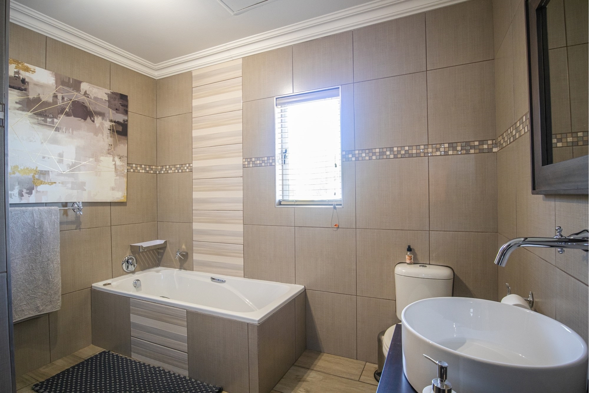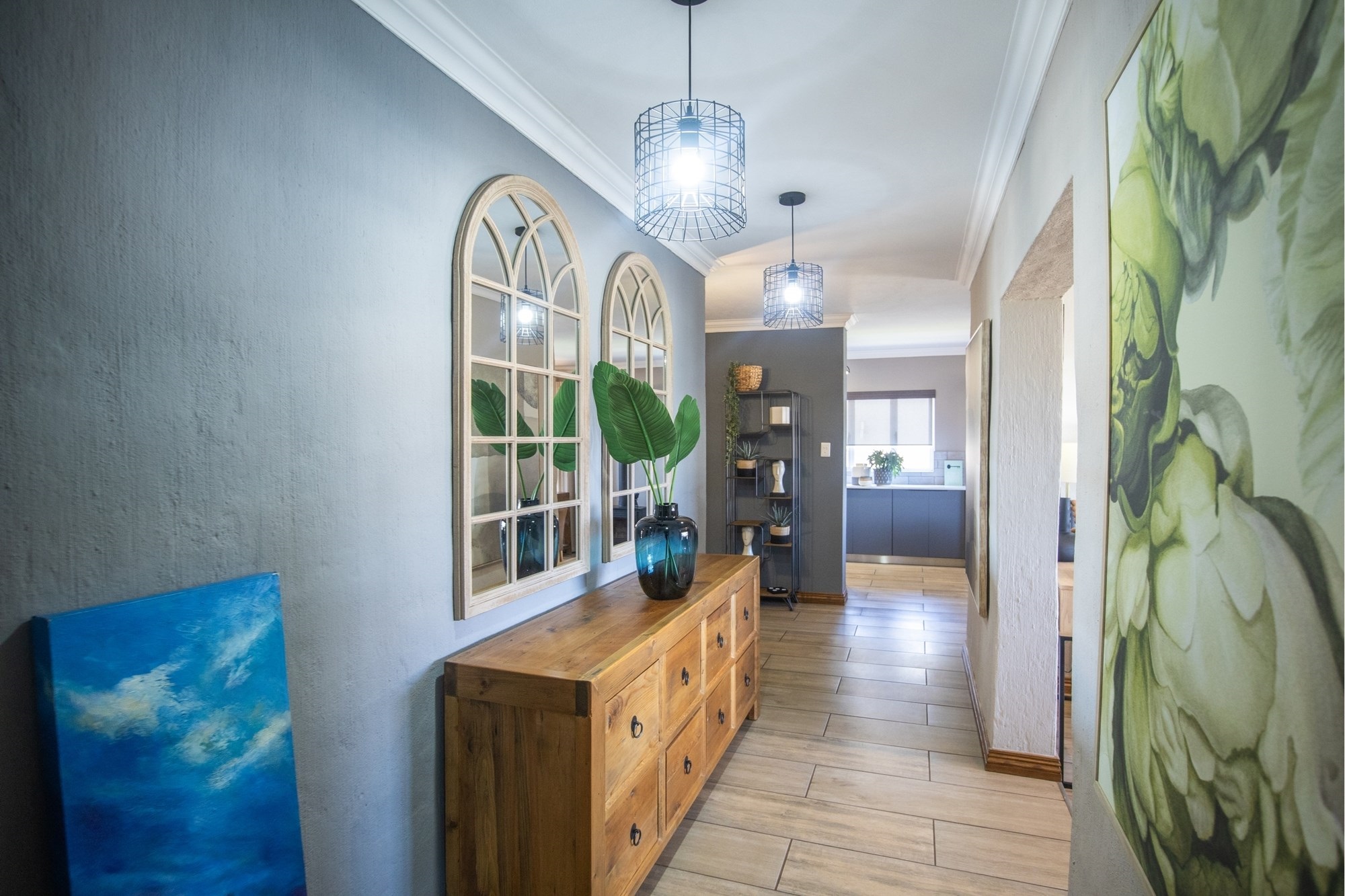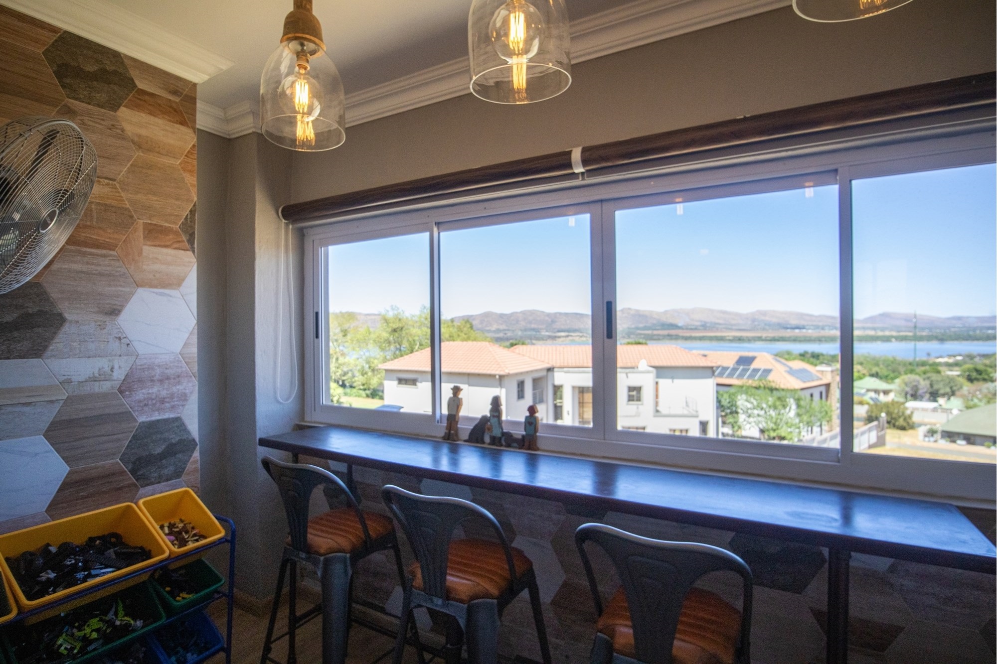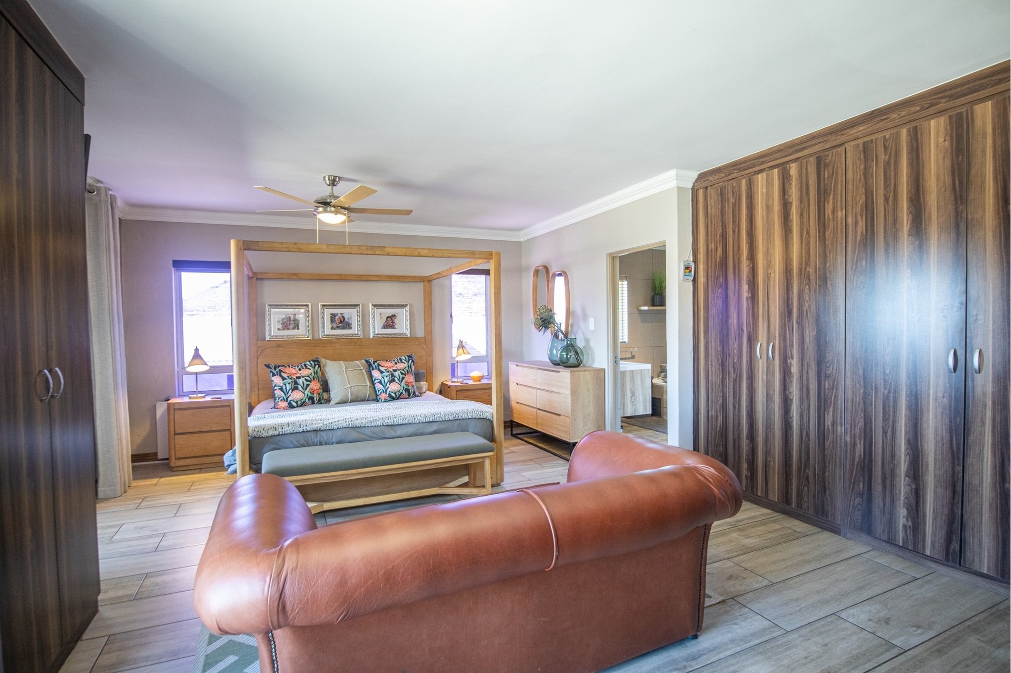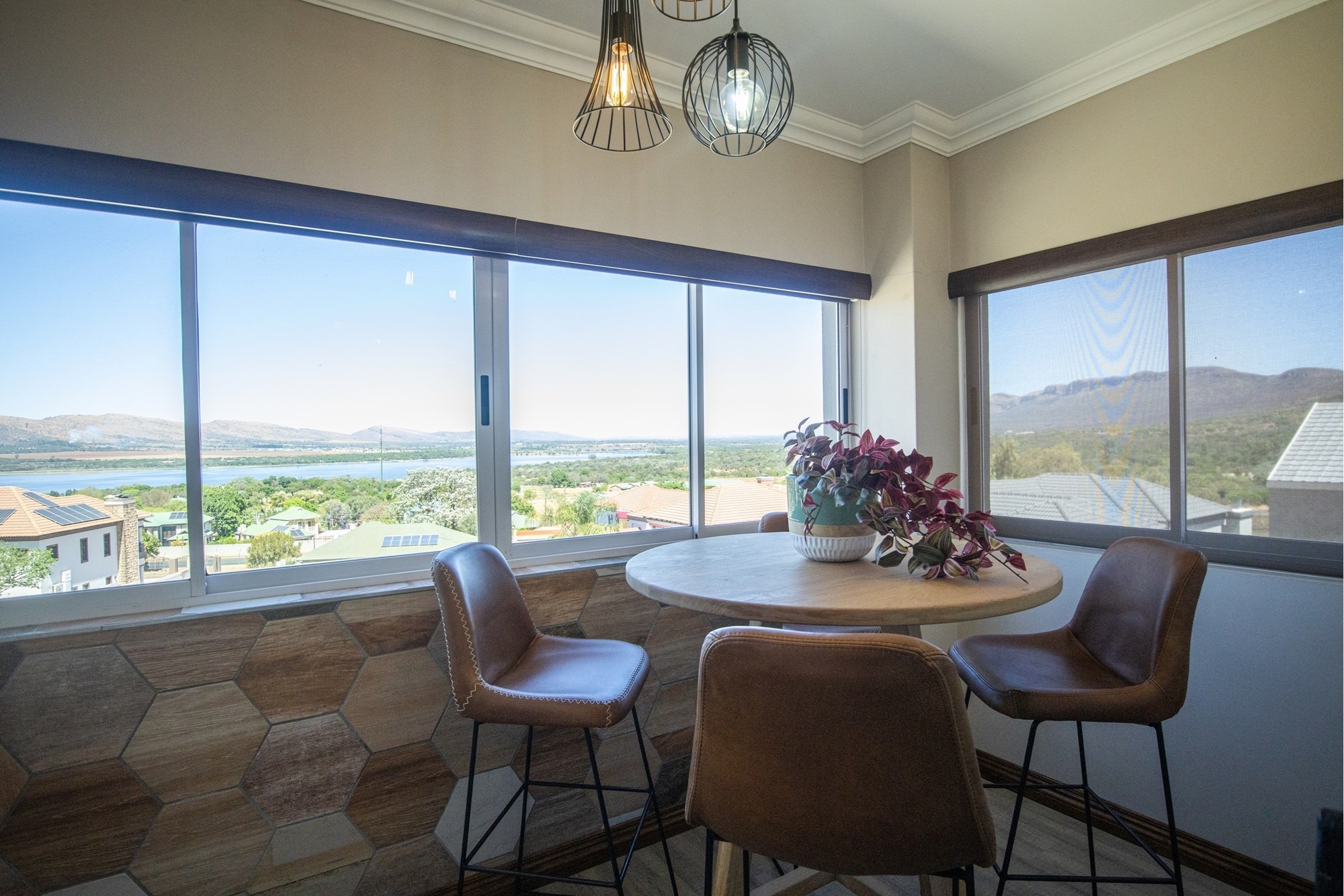 Welcome to this exquisite mansion in Kosmos Ridge, a dream home that exudes elegance and comfort. This picturesque property offers a spacious 4-bedroom layout, including a separate guest suite for added privacy and convenience. The large, welcoming patio is perfect for gatherings, featuring a built-in braai and canvas shade nets, creating a wonderful space for making lasting memories with family and friends.