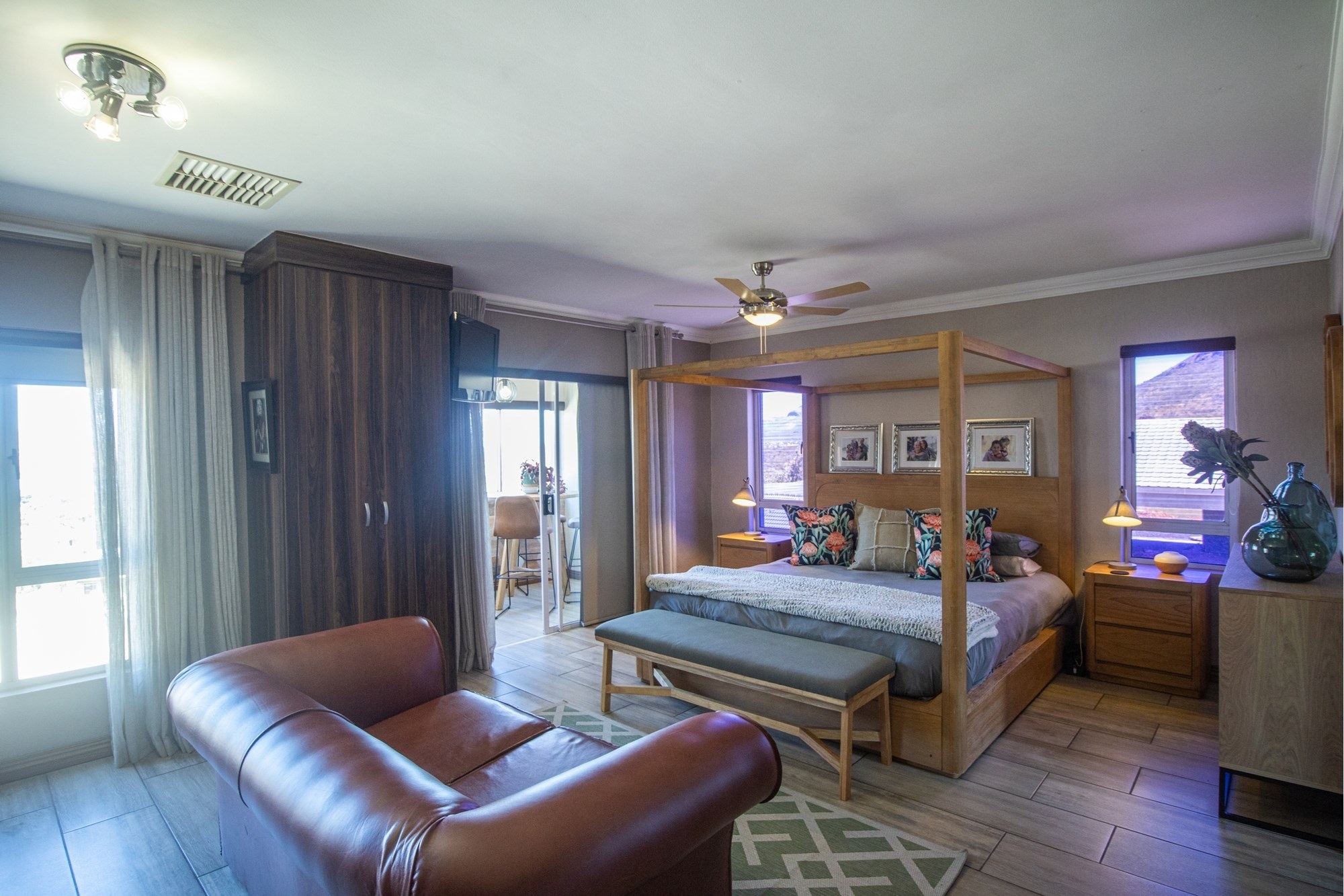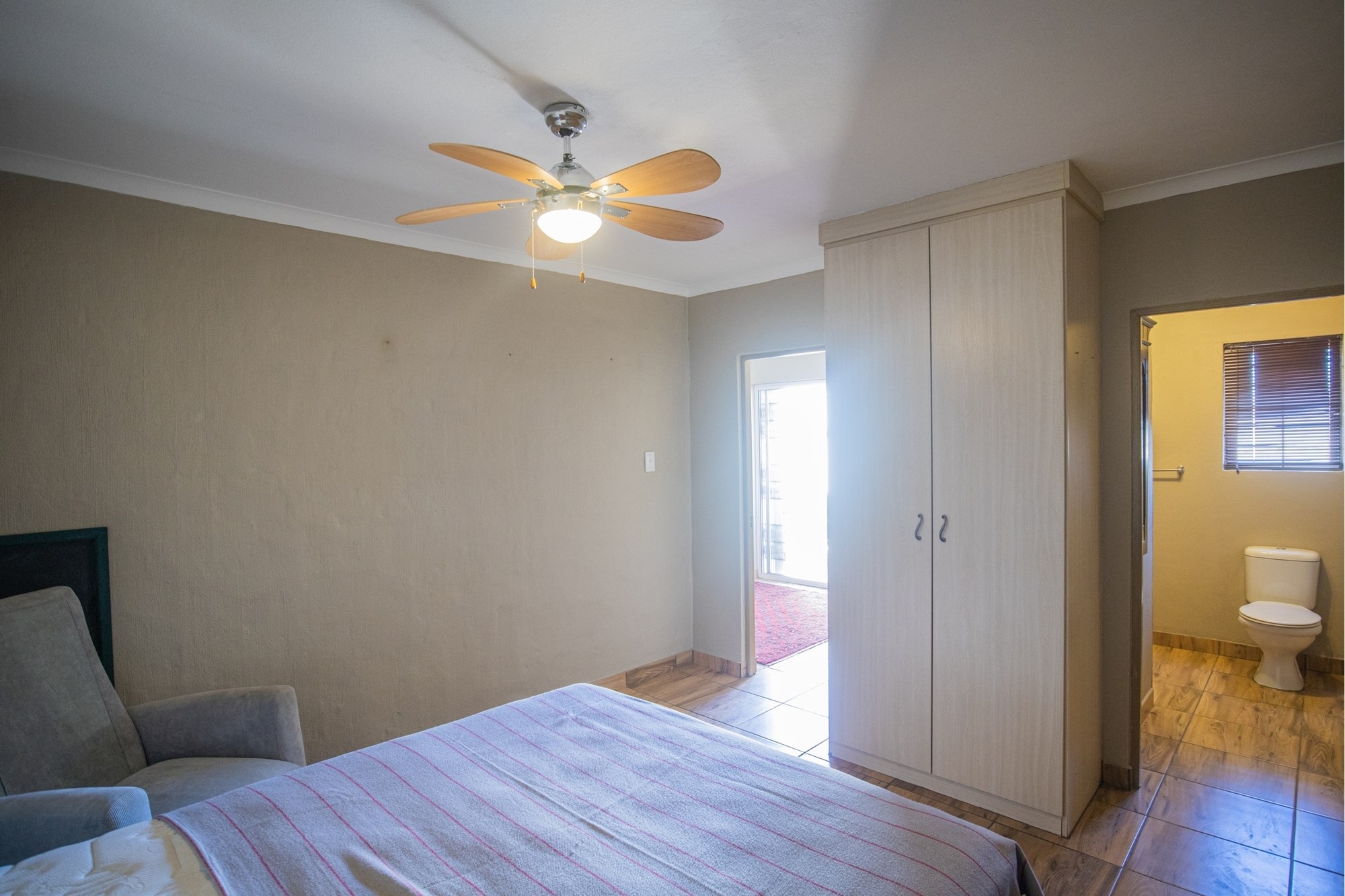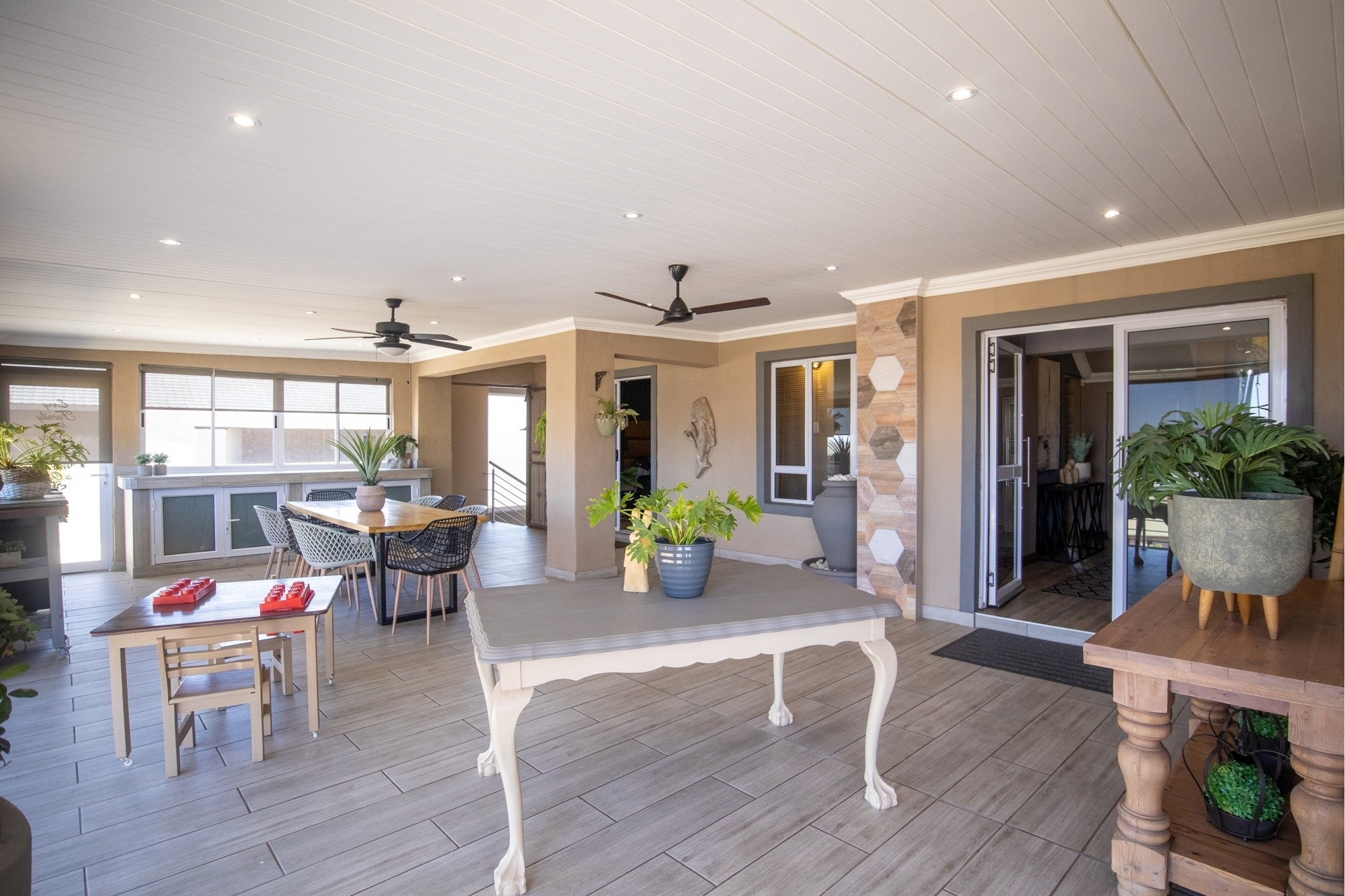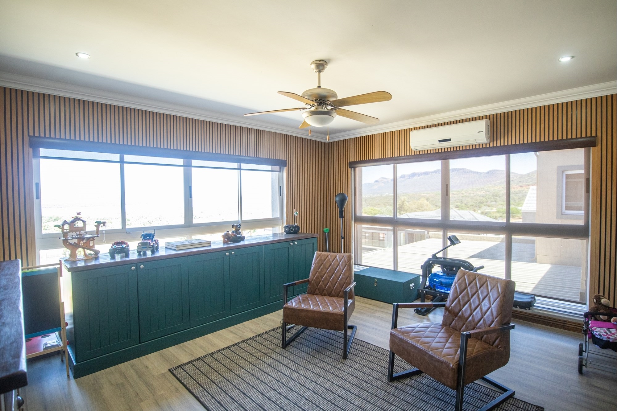 Welcome to this exquisite mansion in Kosmos Ridge, a dream home that exudes elegance and comfort. This picturesque property offers a spacious 4-bedroom layout, including a separate guest suite for added privacy and convenience. The large, welcoming patio is perfect for gatherings, featuring a built-in braai and canvas shade nets, creating a wonderful space for making lasting memories with family and friends.