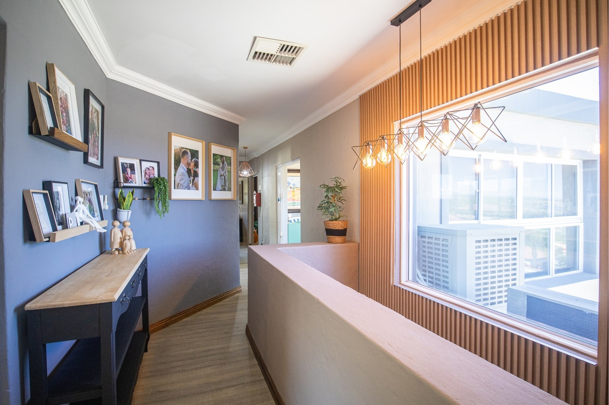 Each room is equipped with air conditioning, ensuring comfort throughout the home, while the top floor features an advanced evaporative air breeze system for efficient cooling. The recently renovated kitchen is a chef’s dream, complete with a separate scullery, laundry area, and a well-appointed pantry, providing both style and convenience.