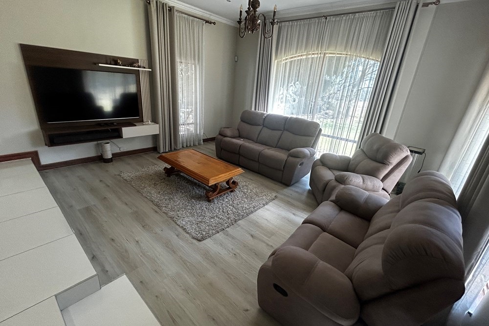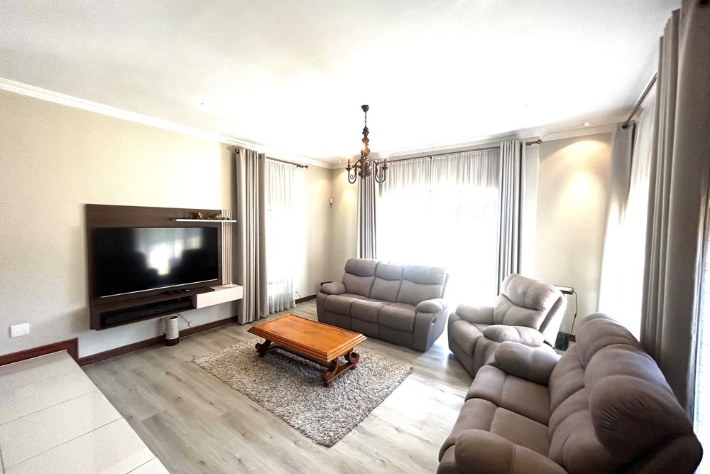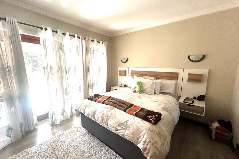 Exquisite Luxury Living at Bule Valley Golf EstateDiscover the perfect blend of elegance, security, and sophistication in this upmarket home nestled within the prestigious Bule Valley Golf Estate. With a focus on meticulous design and an unwavering attention to detail, this home is a true statement of luxury living.Step into a space where functionality meets style. The ground floor offers an expansive open-plan kitchen, complete with state-of-the-art finishes, flowing seamlessly into the lounge featuring a cozy fireplace. The space opens up to a second lounge, which leads out to the beautifully manicured garden, with breathtaking views of the golf course.As you ascend the wide, elegant staircase, you’ll find three spacious bedrooms, each designed with comfort in mind. The master suite is a private retreat, complete with an ensuite bathroom and its own access to the large patio – the perfect spot to take in the scenic golf course vistas.This home offers the ultimate in security and convenience, with a double lock-up garage and a dedicated staff quarters room. The kitchen is a culinary masterpiece, offering ample storage space, a pantry, and a separate scullery.Experience unparalleled luxury and security in a home designed for the discerning buyer.Live the lifestyle you deserve at Bule Valley Golf Estate.
