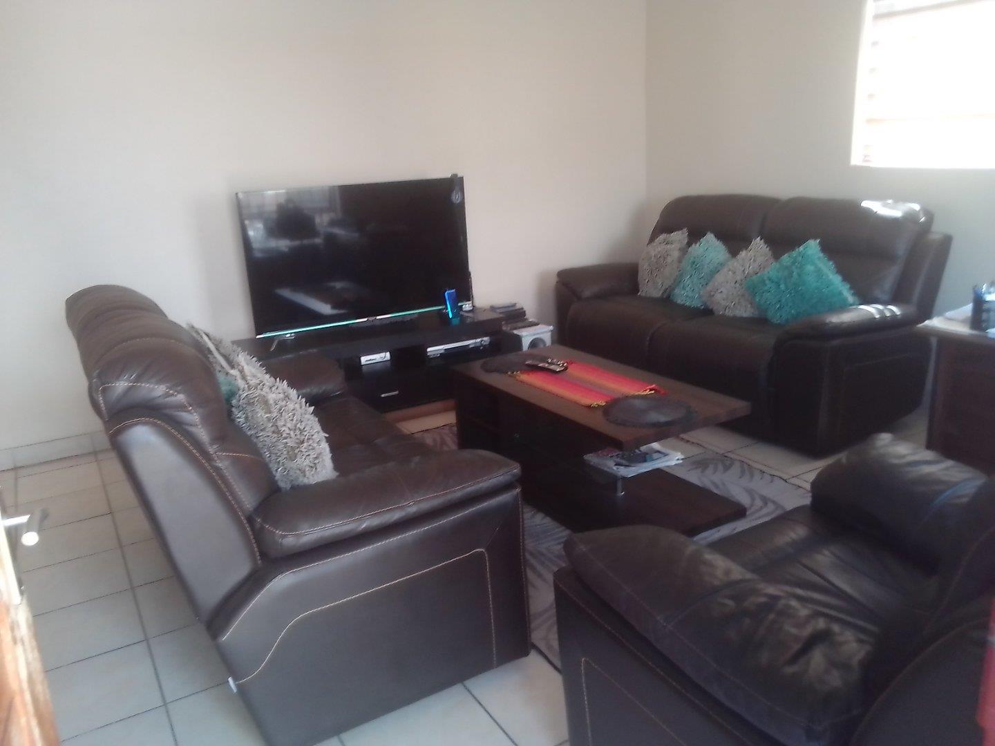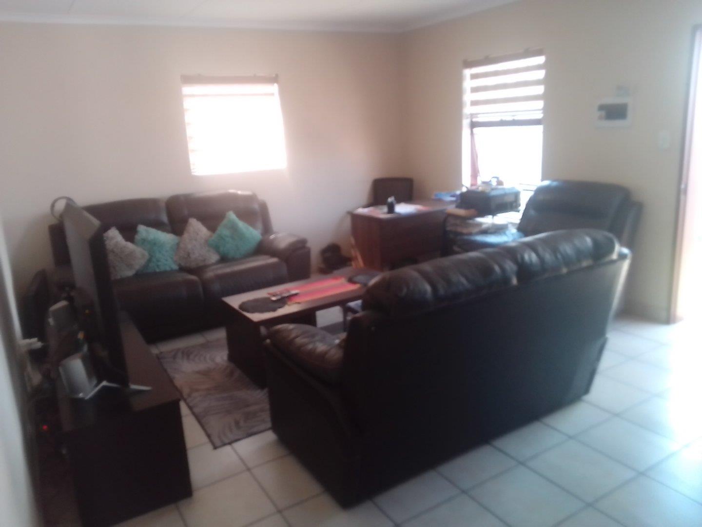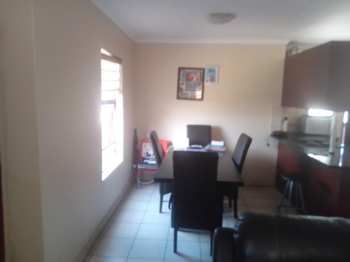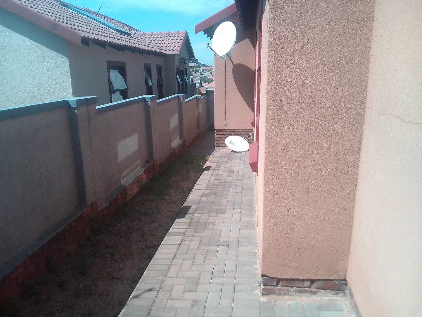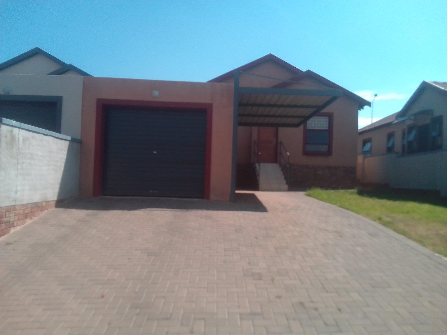 3 Bedroom 90ms house with 2bathrooms in suit in the main bedroom, dining area, one garage one carport, prepaid electric, solar geyser, metered water in a secure estate with a 24hr security that has facilities like a club house that has a braai area and a swimming pool and public parking for visitors and playgrounds for kids.