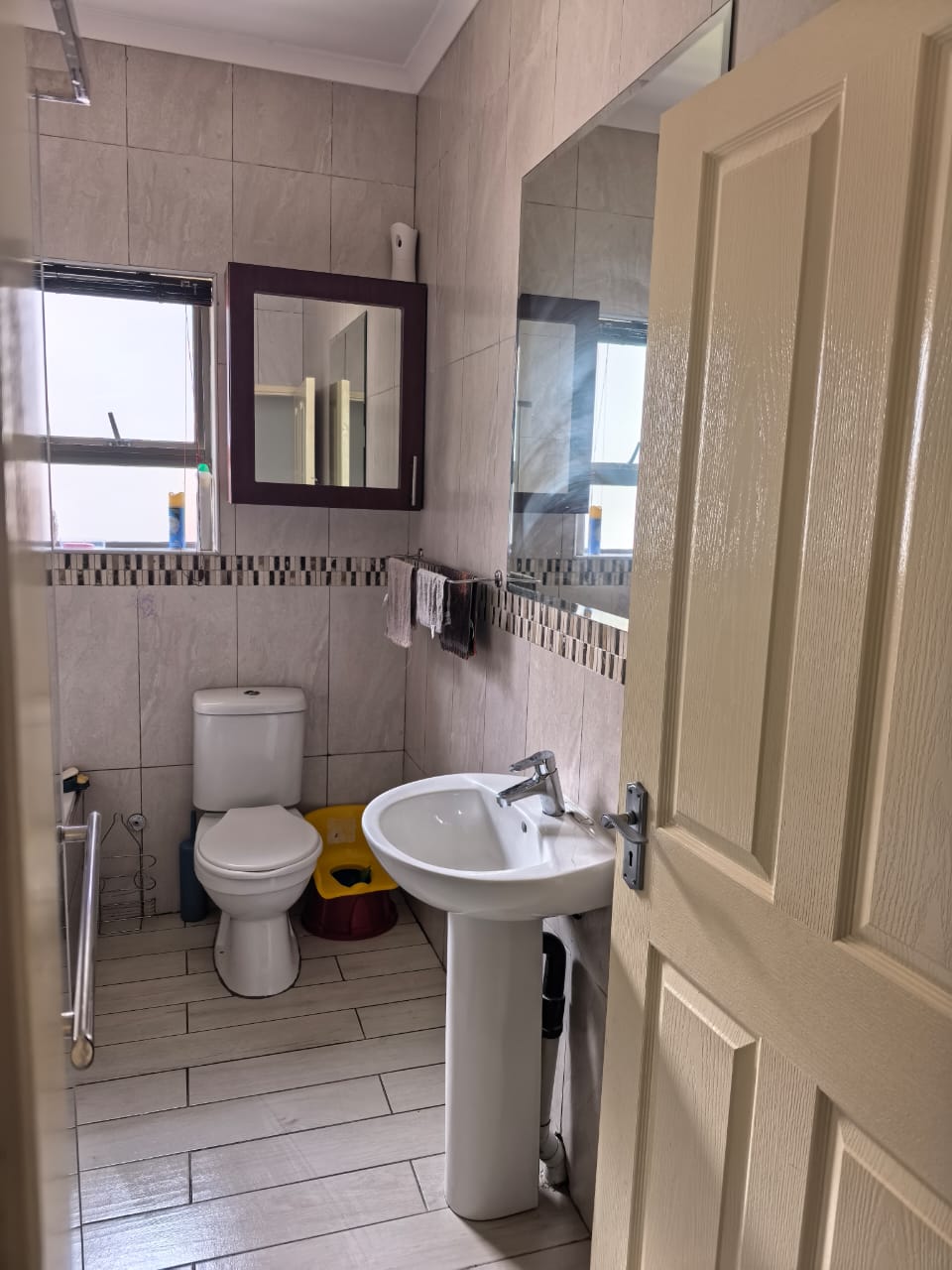 Welcome to this well-maintained 3-bedroom, 2-bathroom home situated in sought-after Estate . Designed for comfortable family living, this home offers space, security, and practical modern features. The open-plan living and dining area flows seamlessly into the kitchen, which is fitted with ample cupboard space and a separate scullery, keeping the main kitchen neat and functional. All three bedrooms are well-sized, with the main bedroom featuring an en-suite bathroom. A double automated garage provides secure parking and direct access into the home. The property is located within a secure estate with controlled access, ideal for families or professionals looking for peace of mind. Property Features: 3 Bedrooms 2 Bathrooms (main en-suite) Open-plan living & dining area Kitchen with separate scullery Double garage Secure estate living Estate & Location Highlights: 24-hour security & access control Close to main routes (N1 & R55) Easy access to Centurion & Midrand Near schools, shopping centres & amenities This home is ideal for families, first-time buyers, or investors seeking a solid property in a growing area.