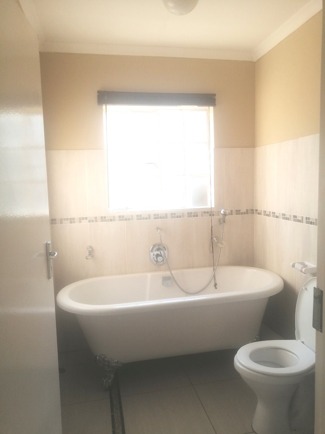 This lovely 2 bedroom town house is situated in a secured complex inside a secured estate with 24 hours security. it has an open plan living area with kitchen, Main bedroom has got its own small bathroom with shower, toilet and basin while the other bedroom uses a separate bathroom with bathtub, basin and toilet. It has got a private garden in front and private laundry area at the back, The property is pet friendly for small animals