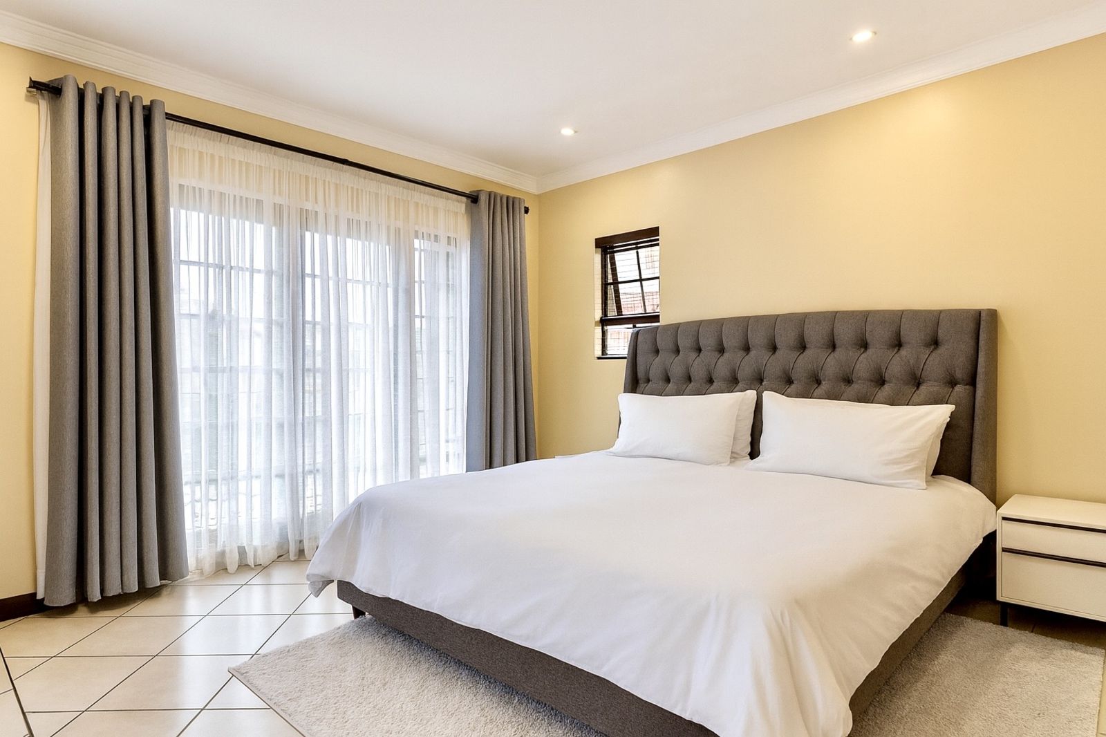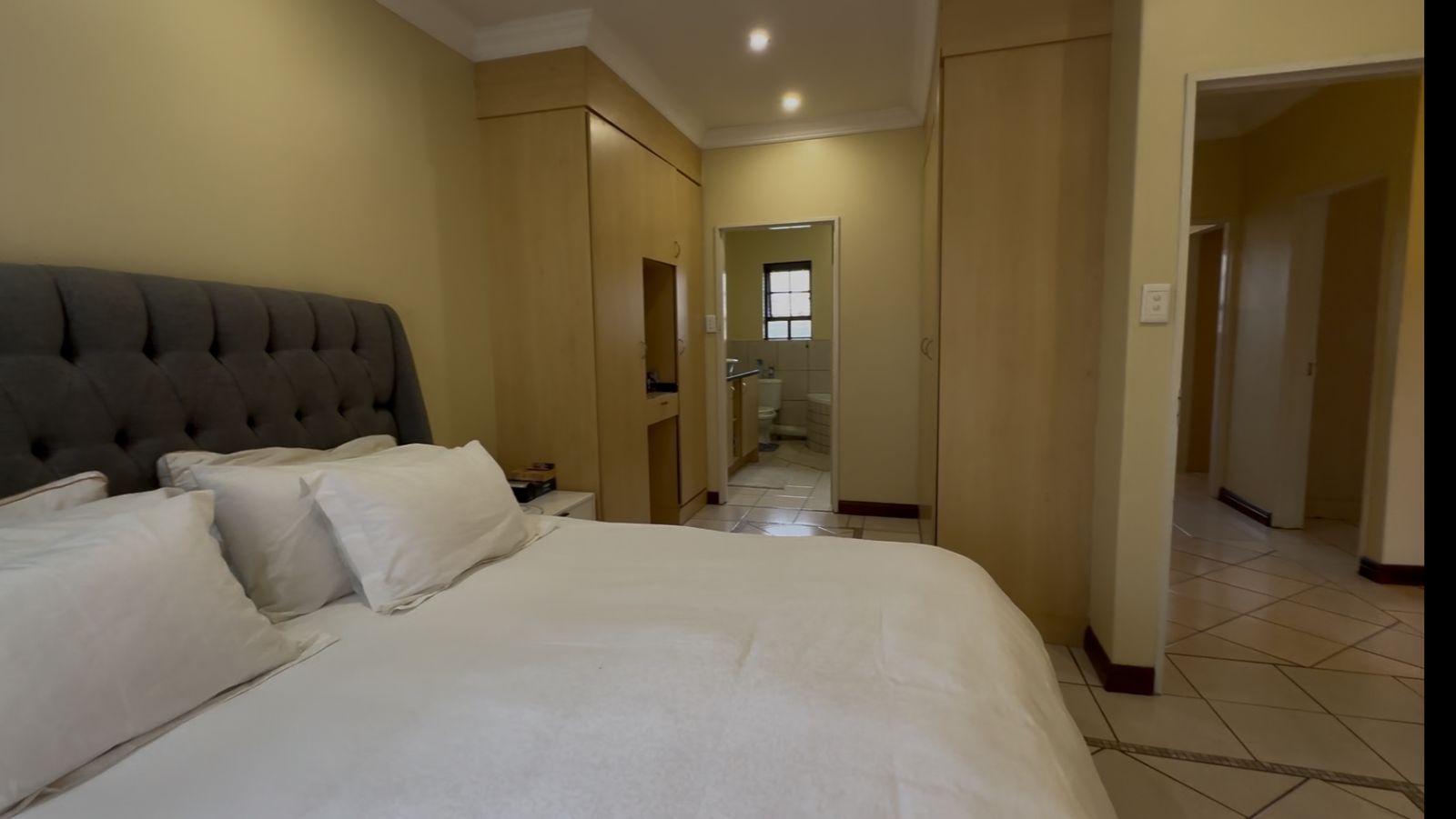 The home boasts an open-plan kitchen, dining and lounge which flows out to a covered patio with built-in braai – perfect for entertaining friends and family, second nature to South Africa. The entrance can be utilized as an office – ideal for hybrid work as we’ve come to know. There’s a sizeable private garden for fun and entertainment for the whole family. Added convenience is the double, electric garage which leads directly into the home.
