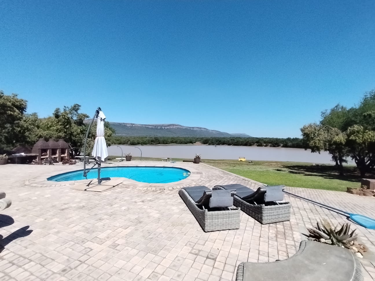 - Sparkling swimming pool, three outdoor braai areas and boma