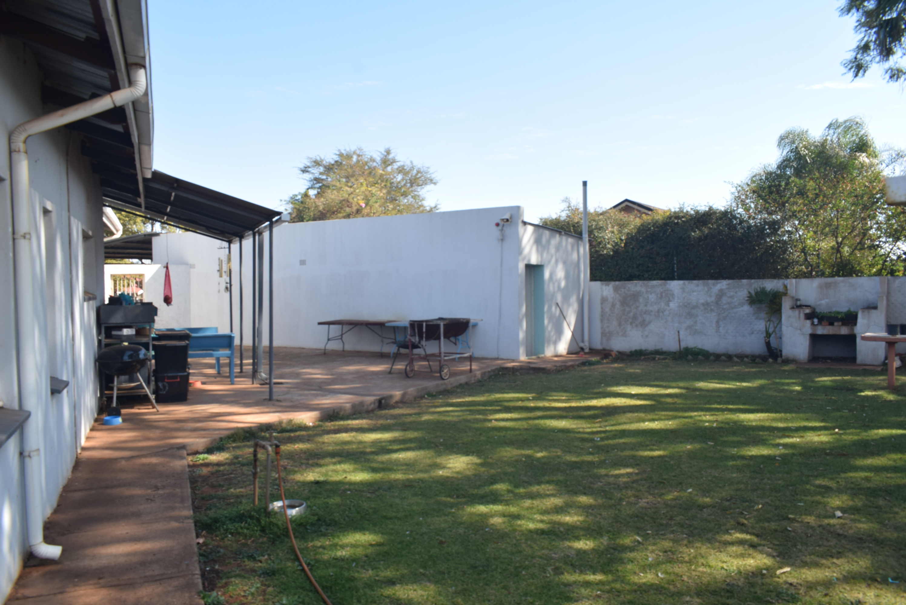 This spacious yard is available for you to fill it with your loving family. It features 4 spacious bedrooms with 1 en-suite and an additional guest bathroom. A fitted scullery, and open plan design, with a nice flow in the house. Solar Backup Power. A big yard with a 5000l Jojo tank, Pressure pump, Borehole and an electric fence. Make that move to town. Call me for an appointment.