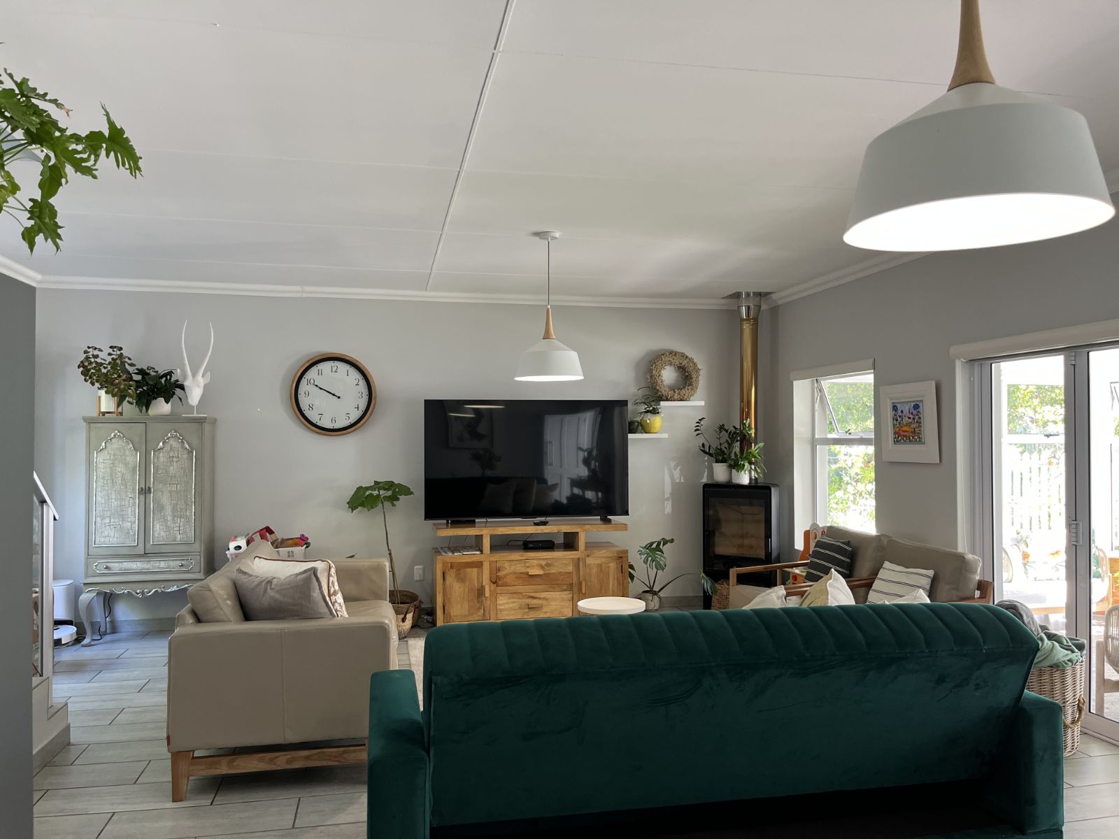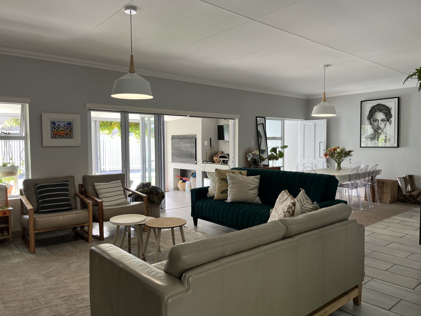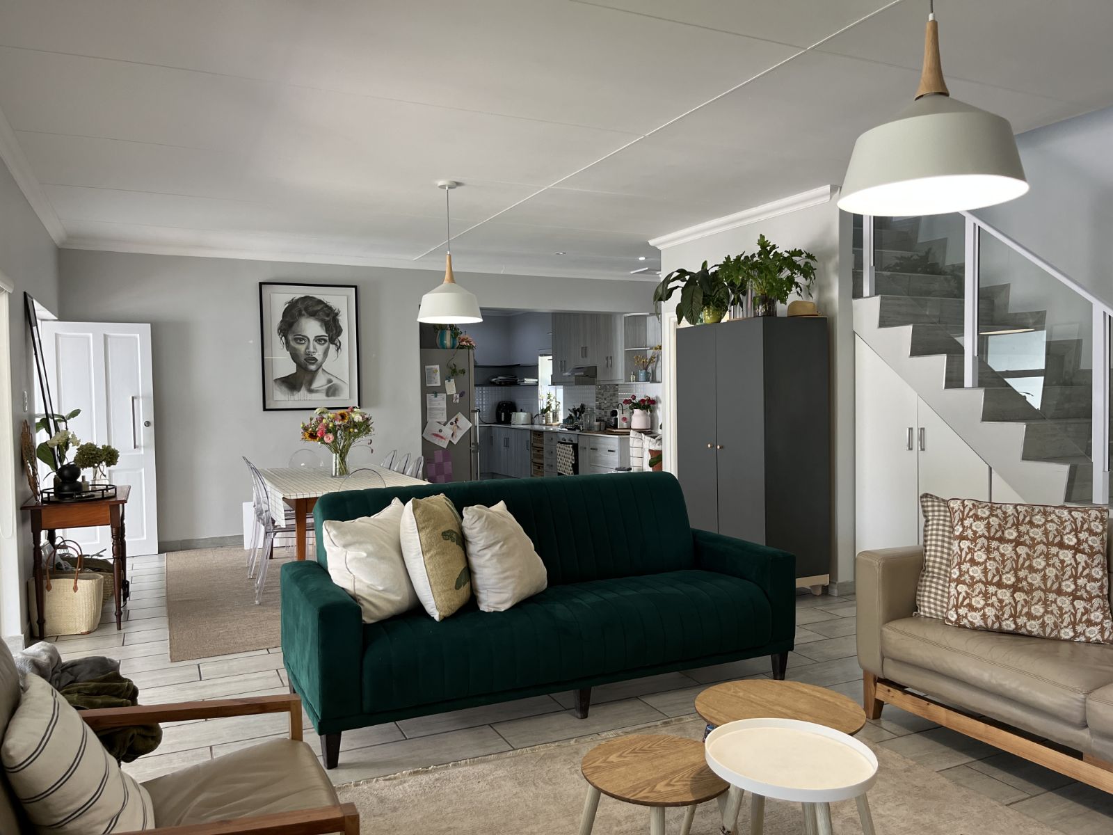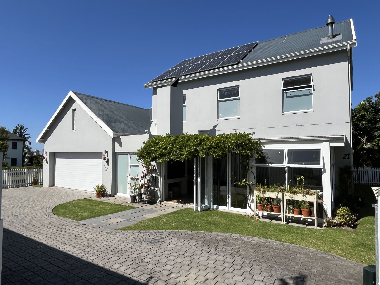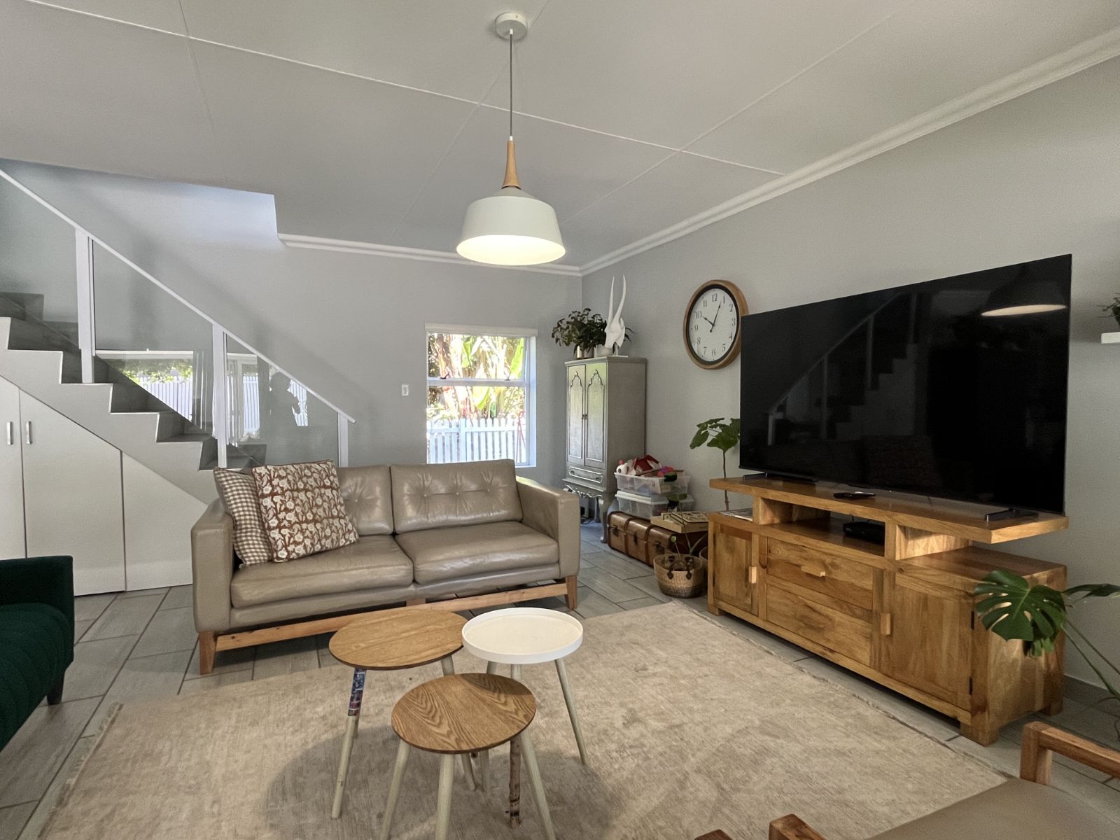 Downstairs, the home features an open-plan living and dining area complete with a cosy fireplace, perfect for winter evenings. The well-appointed kitchen and separate scullery offer ample workspace and lead out to a private courtyard. A separate north-facing living/braai room enhances indoor-outdoor flow and provides the perfect space for entertaining. Additional conveniences include a guest toilet and a dedicated study or home office.