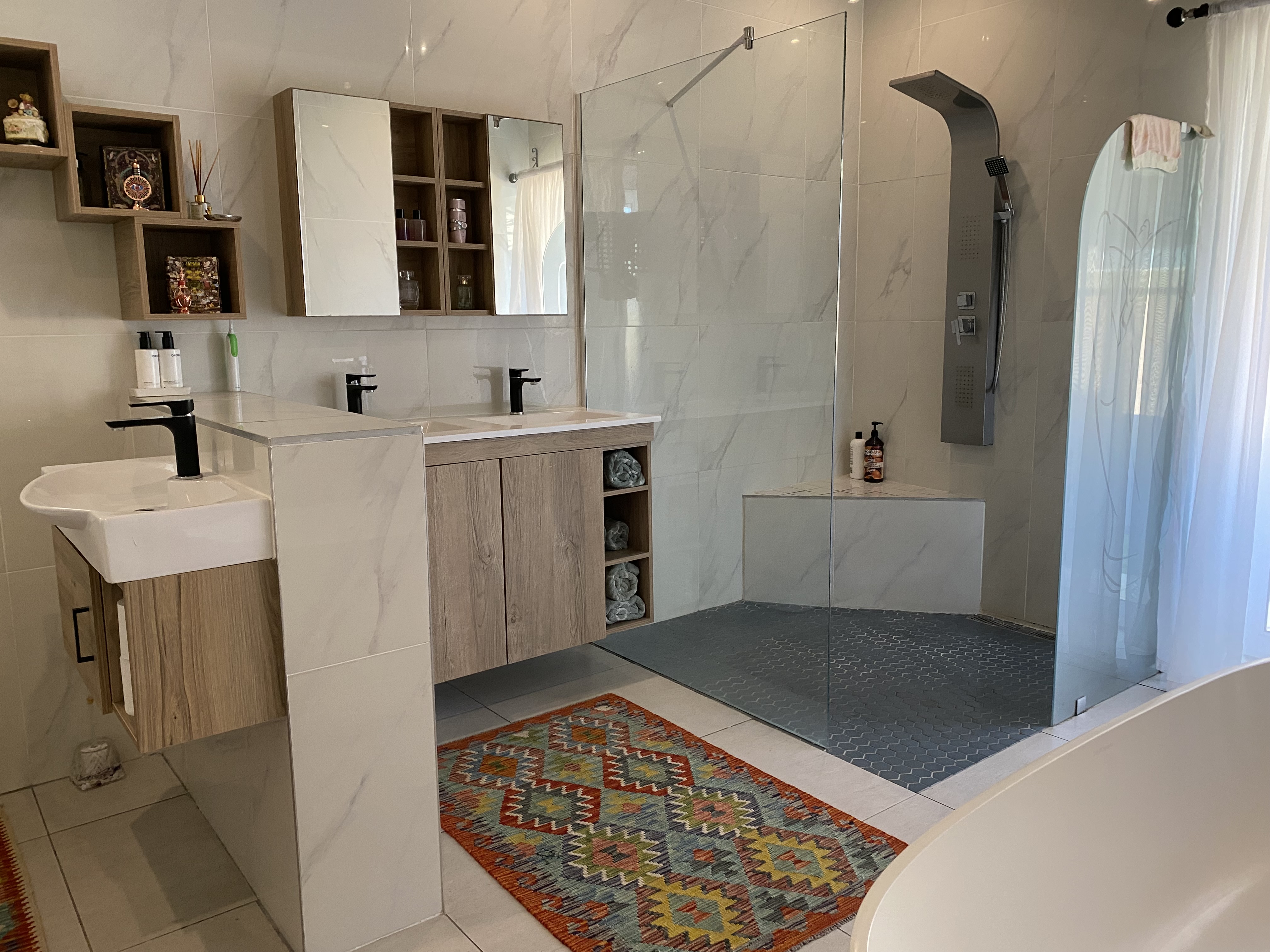 The added benefit of this property is that it also includes a fully self-contained flatlet which offers one bedroom, an open-plan living area with a kitchenette, a stylish bathroom featuring a corner window, and a private patio deck overlooking a peaceful greenbelt—ideal for guests, extended family, or rental income.