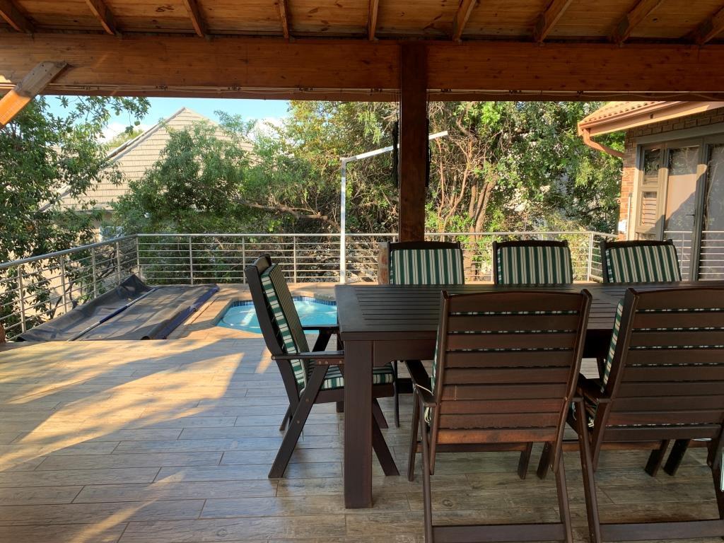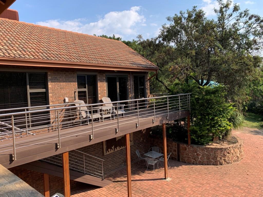 Massive Covered Patio with built-in braai, basin & glass balustrades