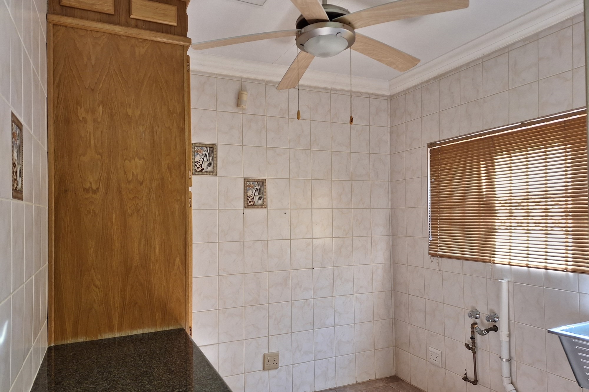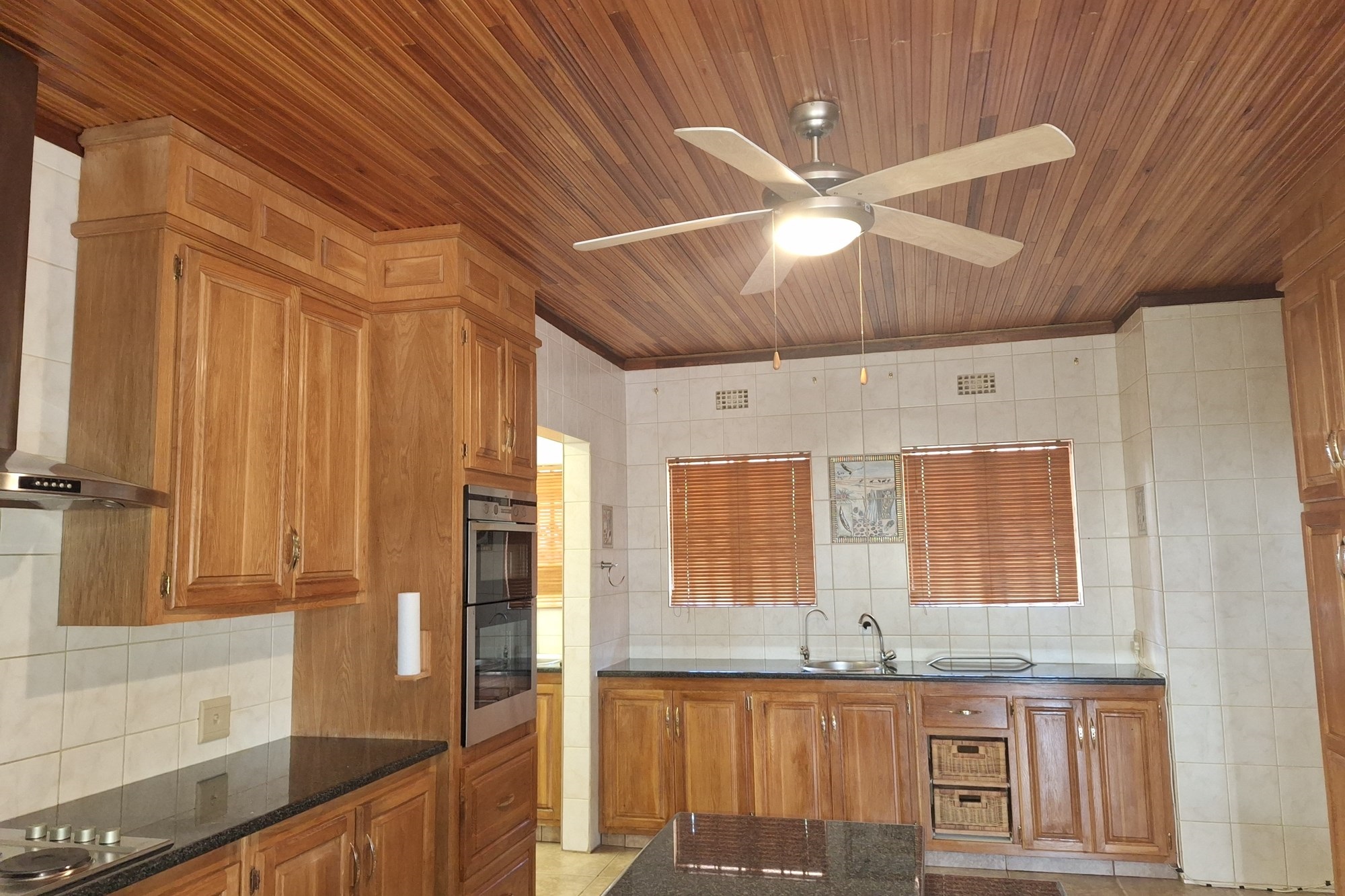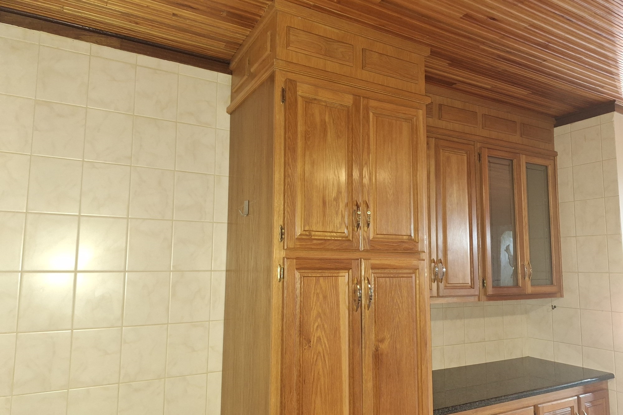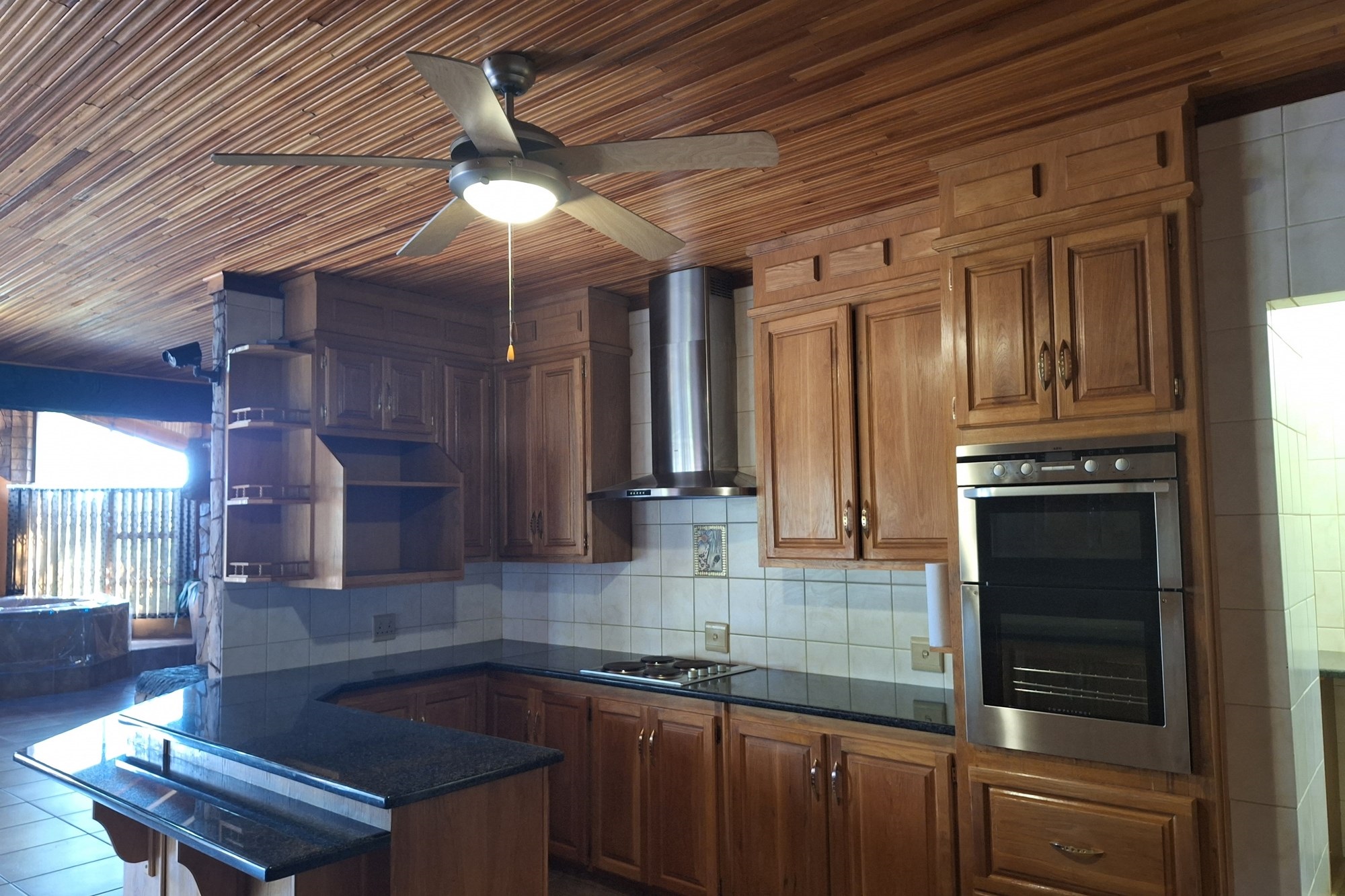 Modern kitchen with solid oak cupboards, granite tops, scullery & laundry.