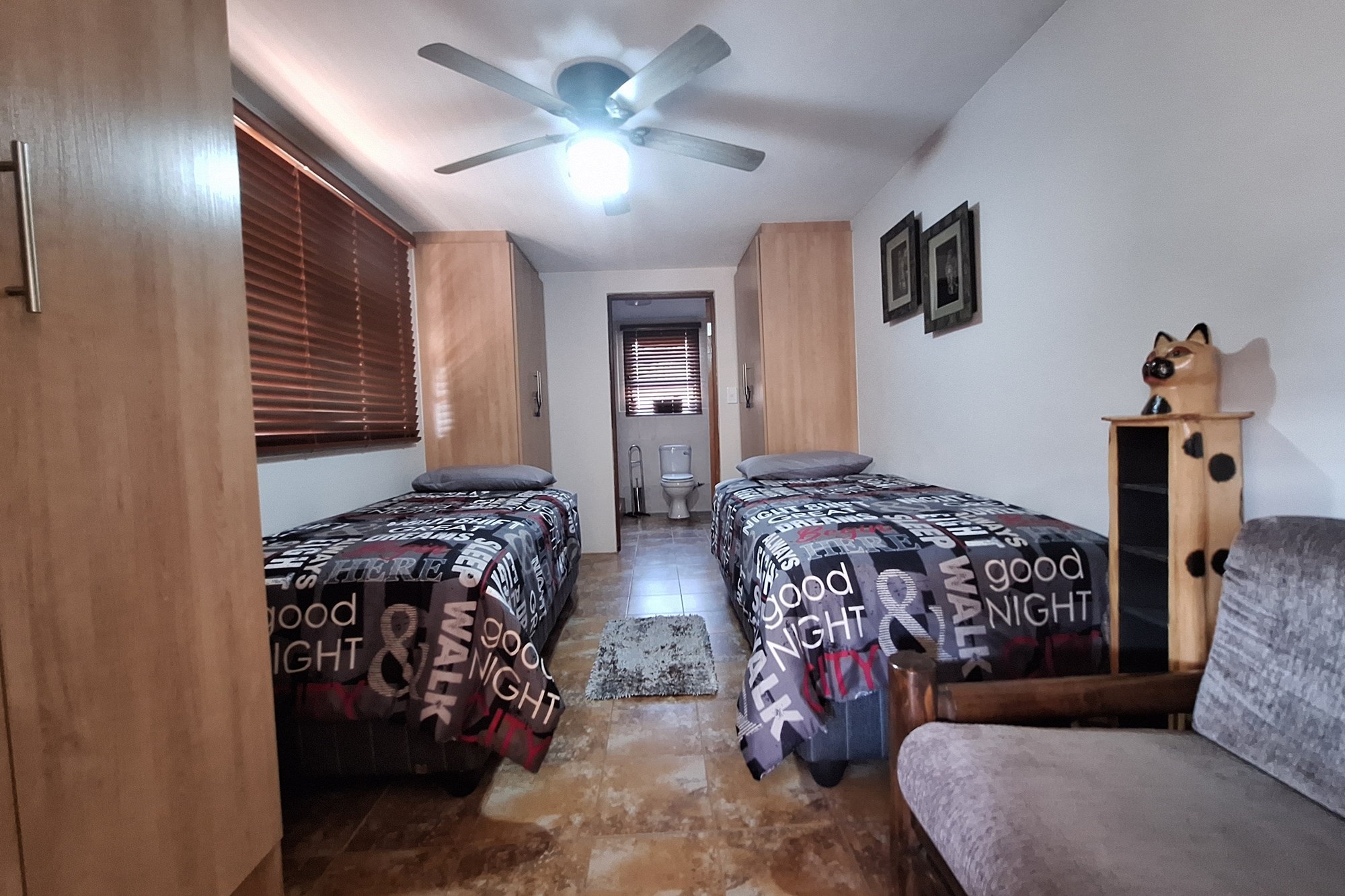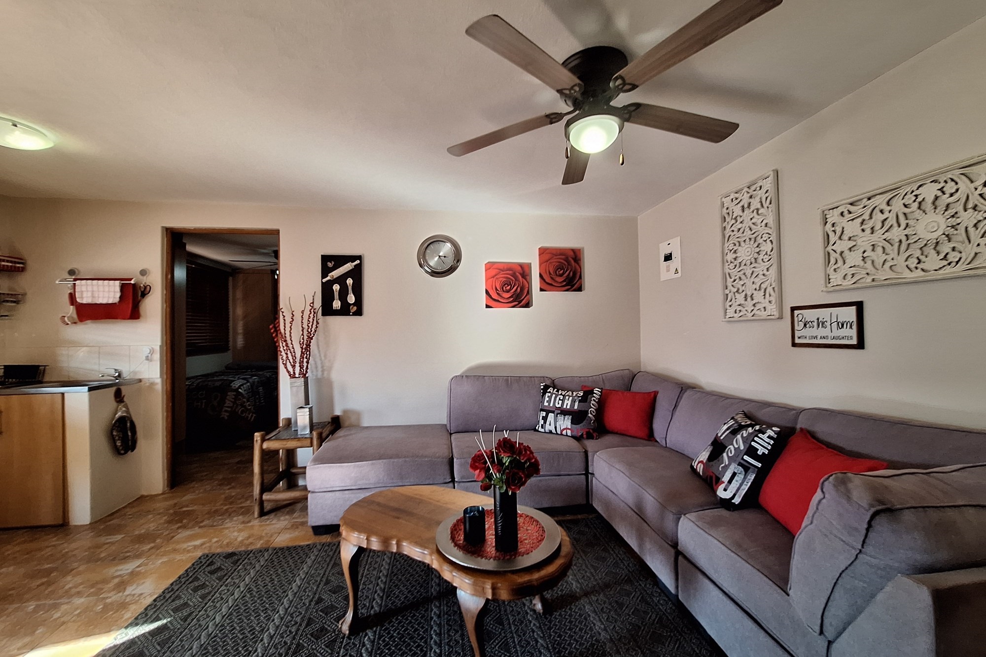 This self-contained unit is ideal for guests, extended family, or even rental income. It includes a cozy living room, a kitchenette, and a bathroom. The first bedroom is equipped with a queen-sized bed, ceiling fan, and built-in cupboards, while the second bedroom has two single beds, a ceiling fan, and built-in storage. The apartment is private, neat, and provides a comfortable retreat for visitors.