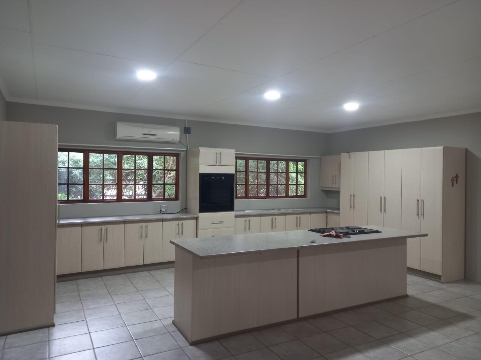 The home welcomes you with a wide, sun-filled patio, perfect for morning coffee or lazy afternoons. Inside, the layout is generous and flowing, with a large open-plan kitchen, dining area, and TV room. The kitchen is modern yet practical, featuring plenty of cupboard space, a central island with hob, a built-in eye-level oven, and a separate scullery/laundry to keep the main area tidy and functional.
