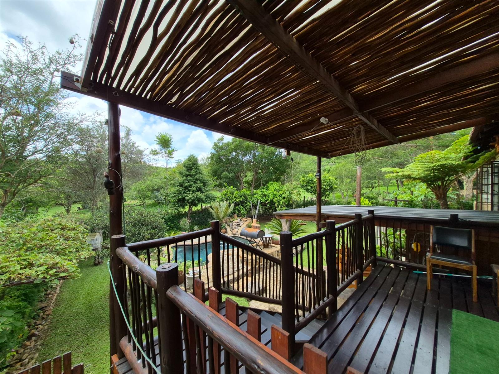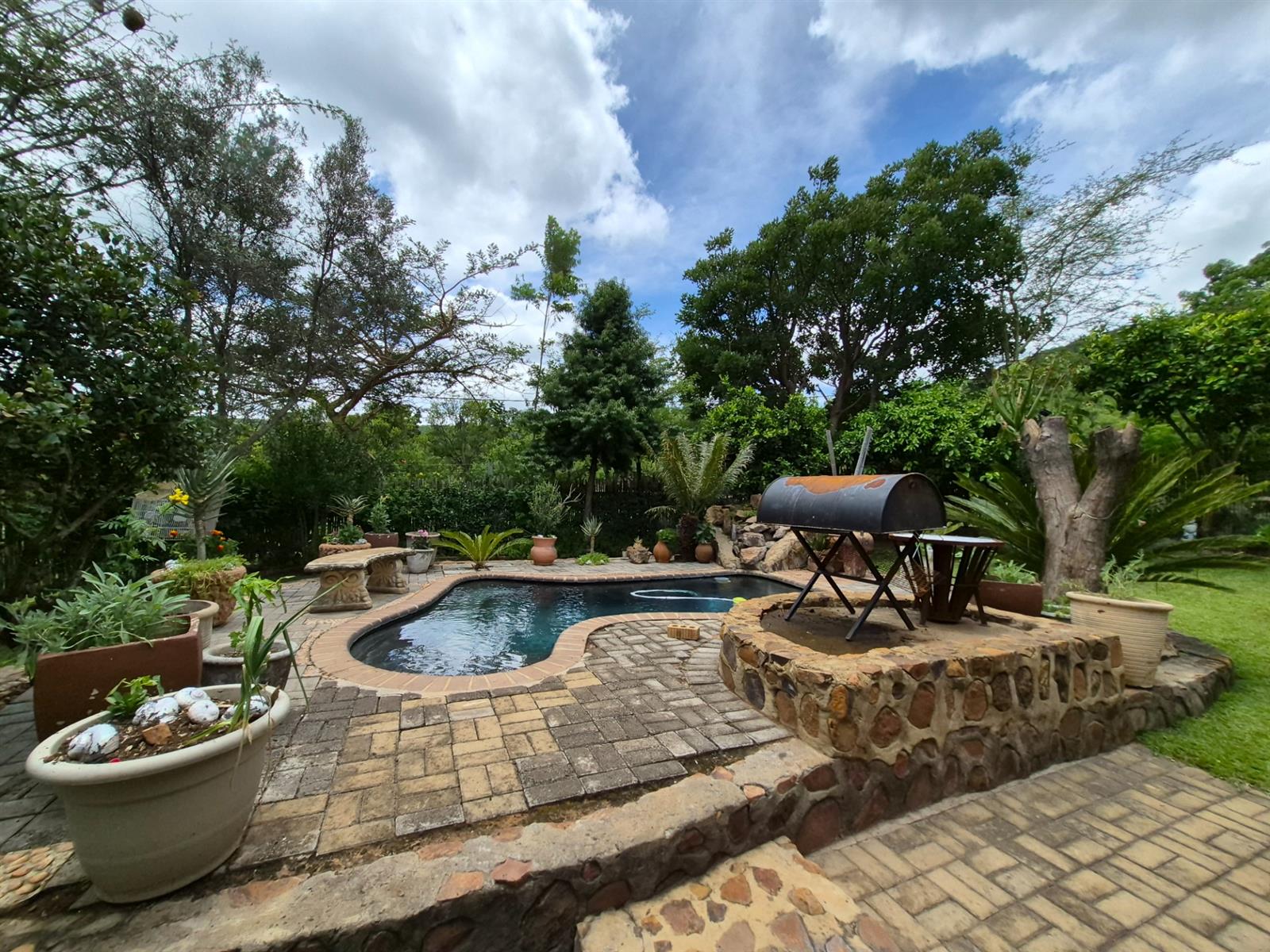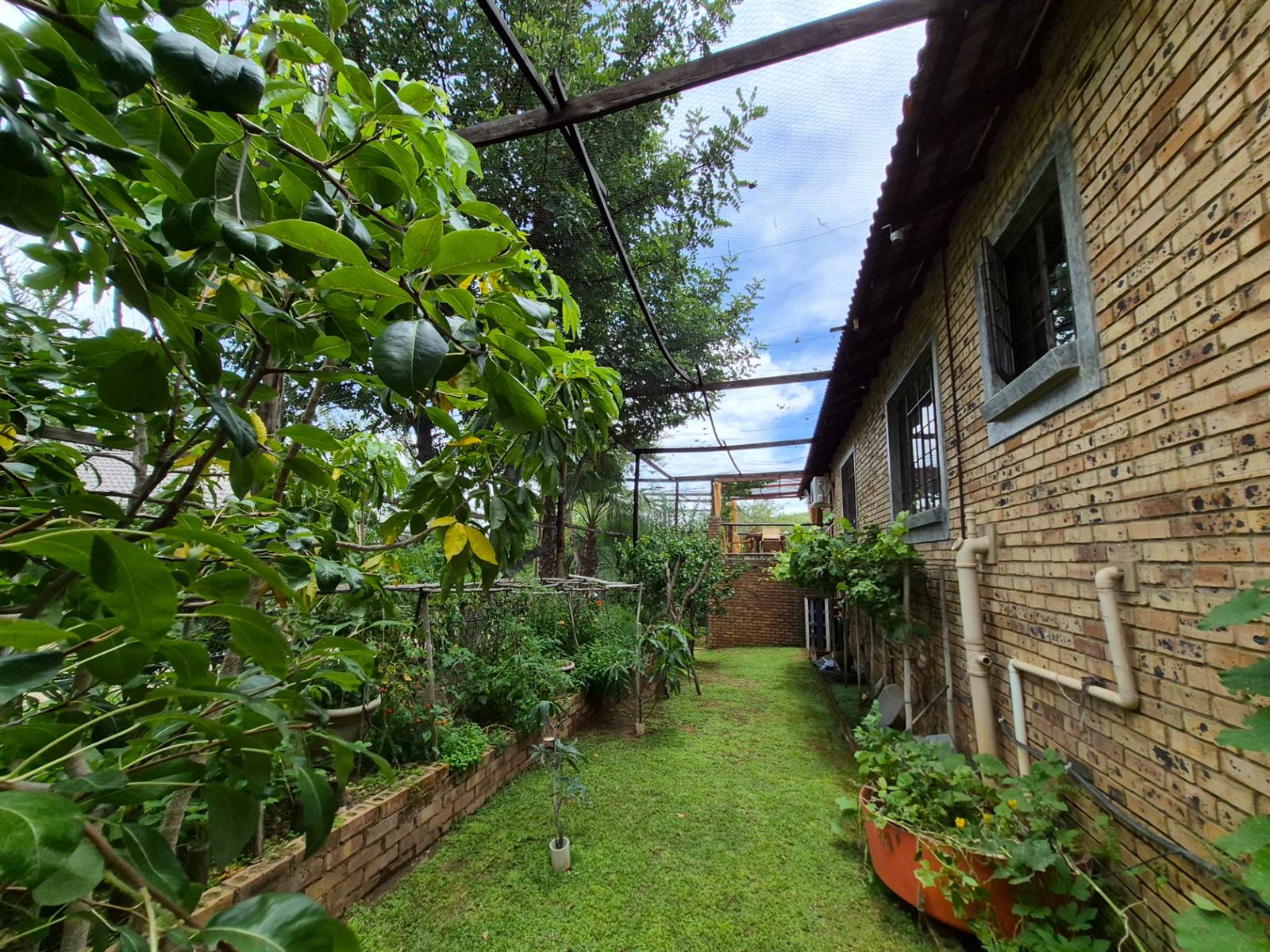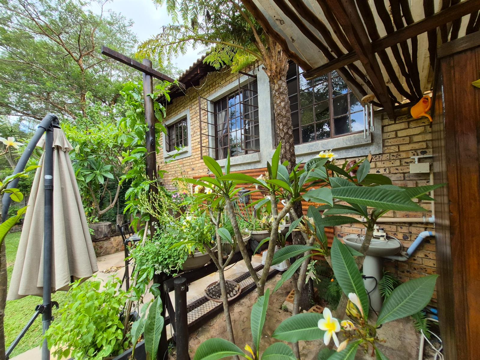 Outside, the lifestyle truly comes into its own. The established garden is both beautiful and productive, supported by a borehole and automated sprinkler system. A vegetable garden, fig and lemon trees, and a grapevine allow you to enjoy fresh produce straight from your own garden. The heated swimming pool, sauna, and multiple outdoor relaxation areas create a setting that feels more like a retreat than a residence.