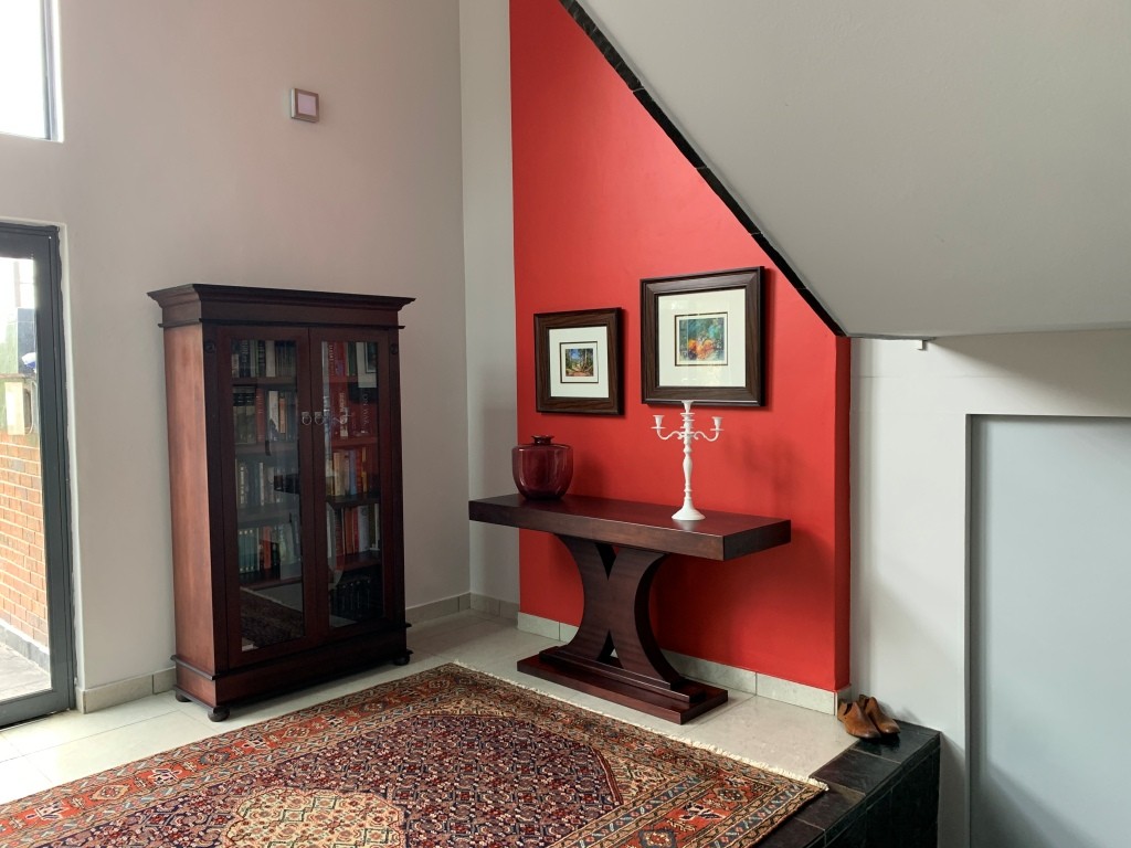 The first level is dedicated to open-plan living and entertaining. The stylish kitchen, complete with a 5-burner gas hob, built-in eye-level oven, and microwave, seamlessly flows into the dining and lounge area. A separate scullery and pantry provide additional functionality and storage.