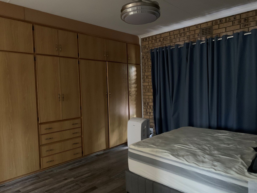Solidly built with timeless character, the home showcases pressed ceilings, generous proportions, ample cupboard space, and modern aluminium finishes, light fittings, and ceiling fans throughout. Laminated flooring adds a contemporary touch while enhancing the warmth of the living spaces.