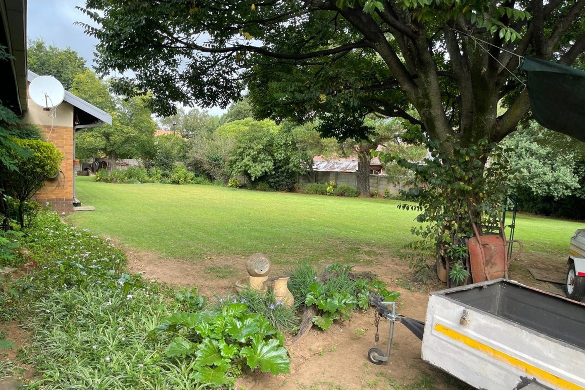 The yard is extremely big, garden is very neat, well-maintained with beautiful flowers and trees.