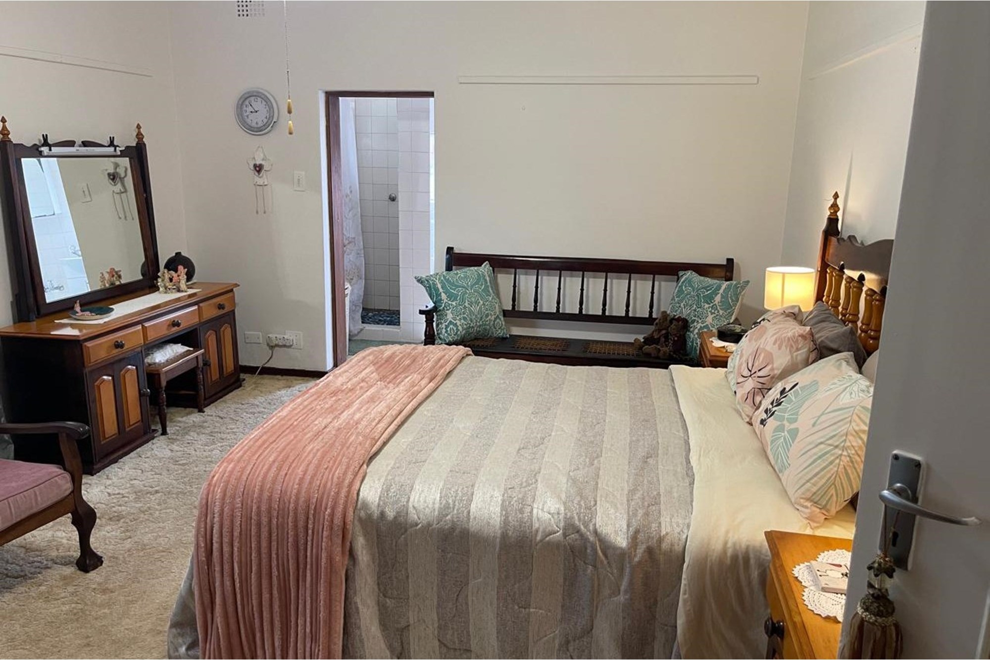The master bedroom is en-suite and comes with nicely fitted cupboards.