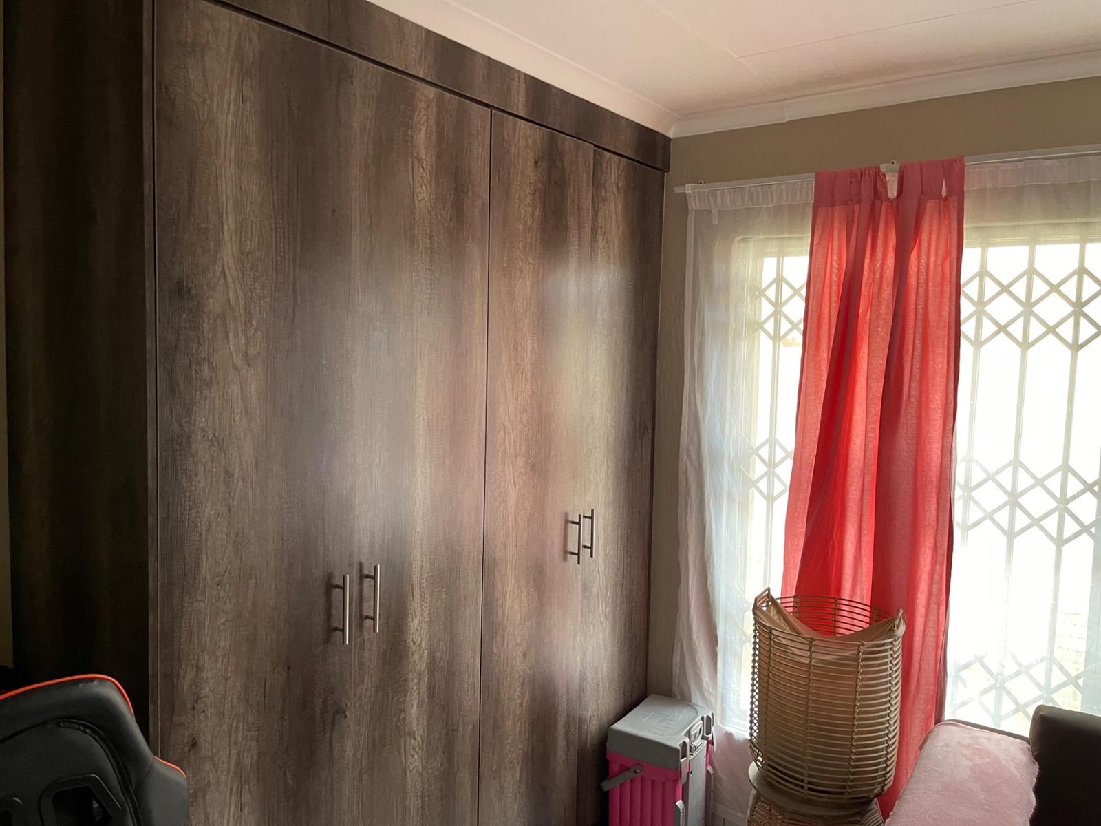 This house offers 3 bedrooms, master bedroom is en-suite, bathroom with a shower, living area, dining area and a nice open kitchen plan with modern wooden cupboards.