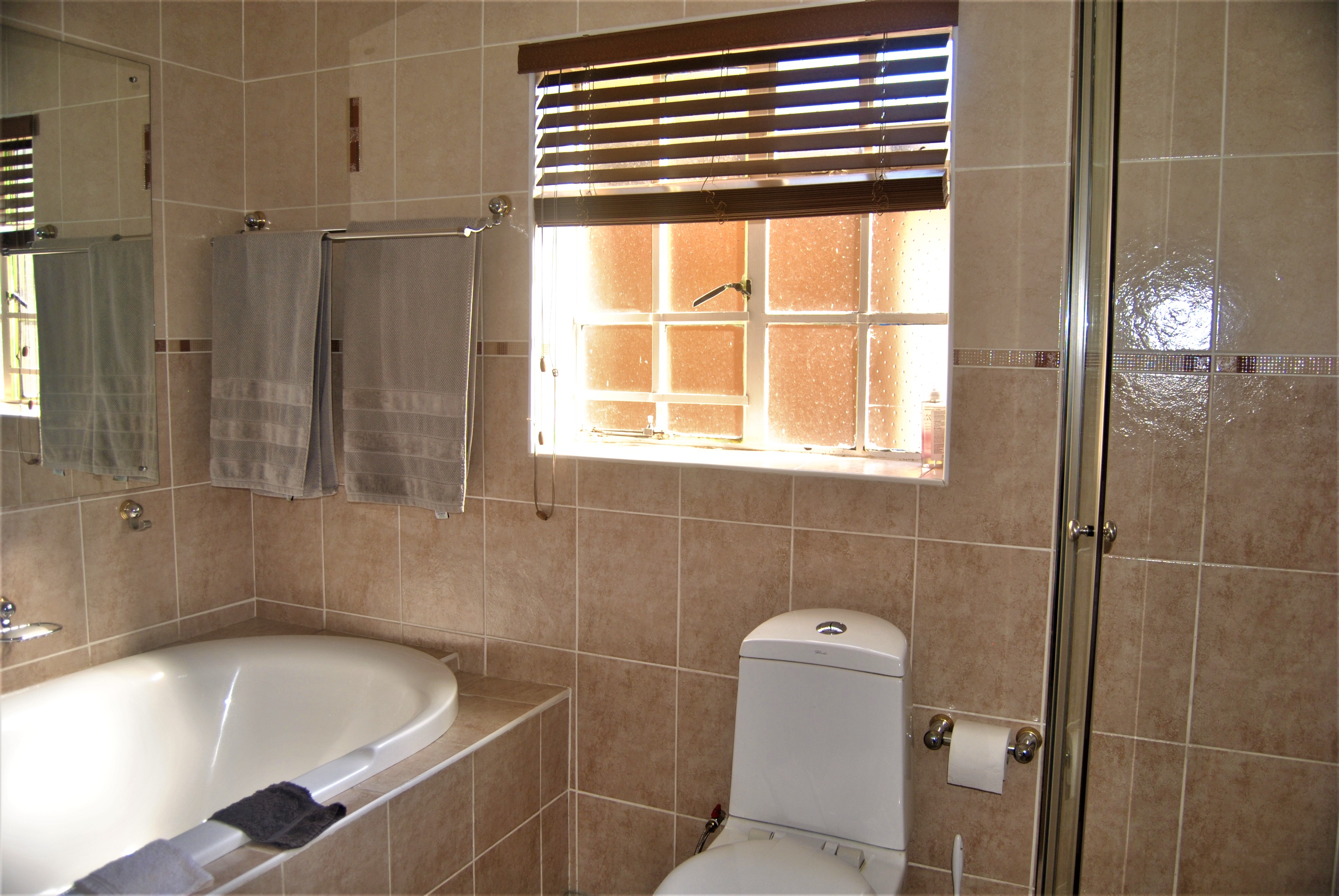 For added security, all entrances are fitted with security gates or doors, and the house is equipped with a fully functional alarm system that can be linked to armed response. The system covers all external doors, living areas, and roof spaces. Water shortages are a worry of the past with two 2,200-litre JoJo tanks, connected to the house via a pressure pump, ensuring consistent water flow and strong pressure.