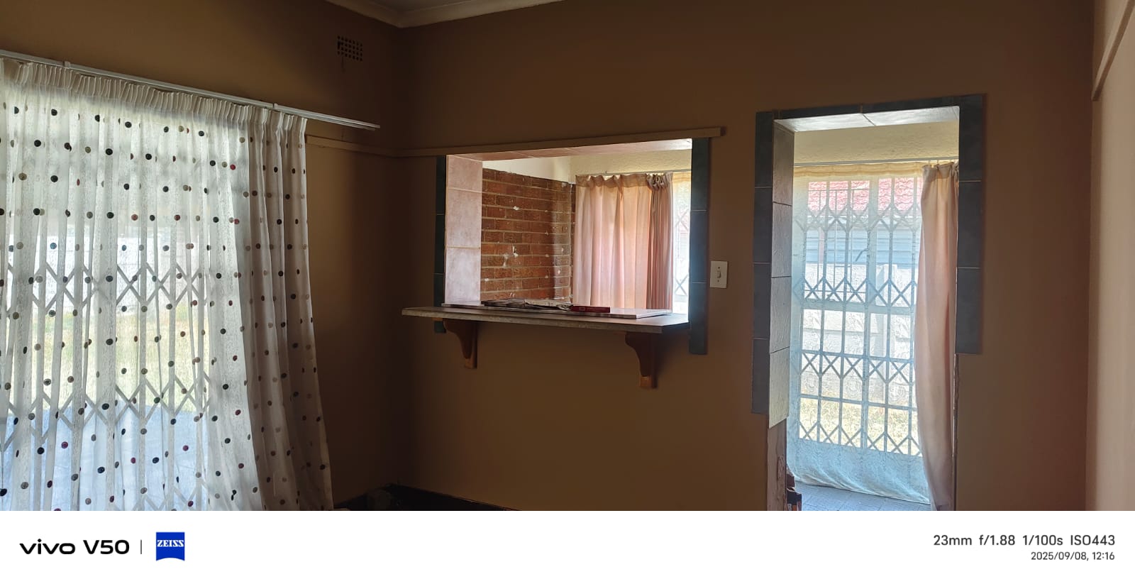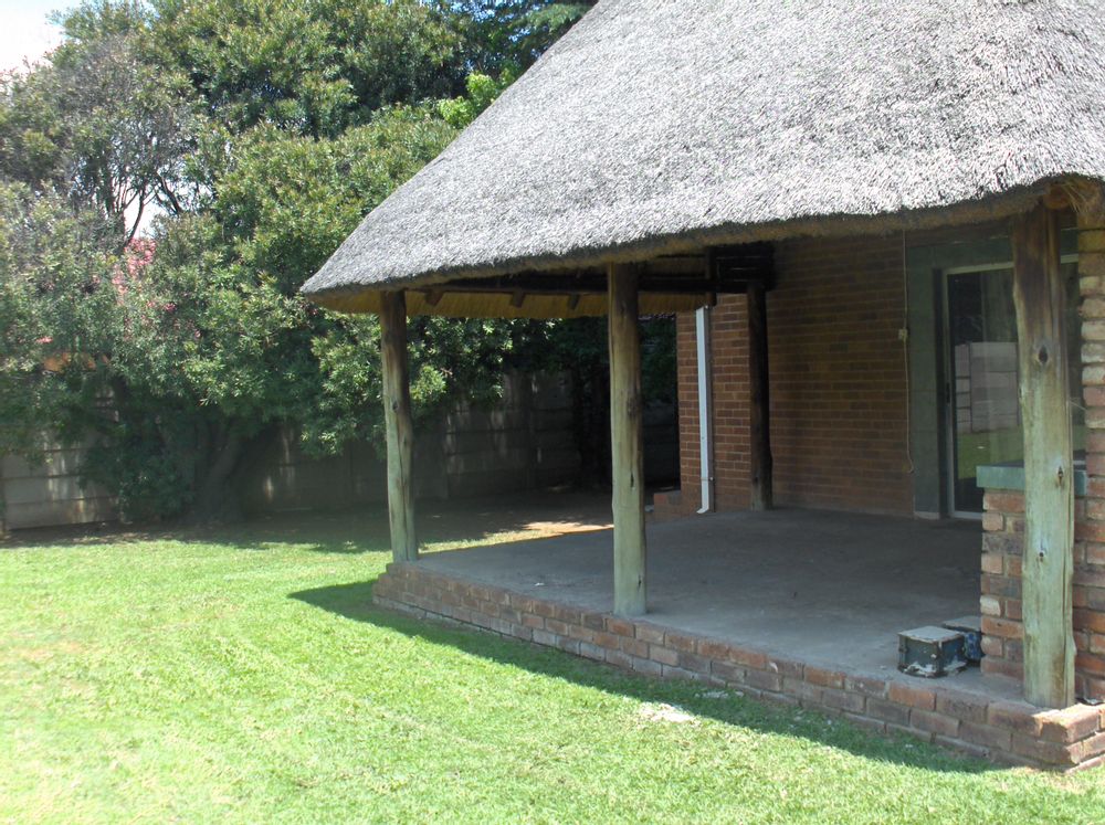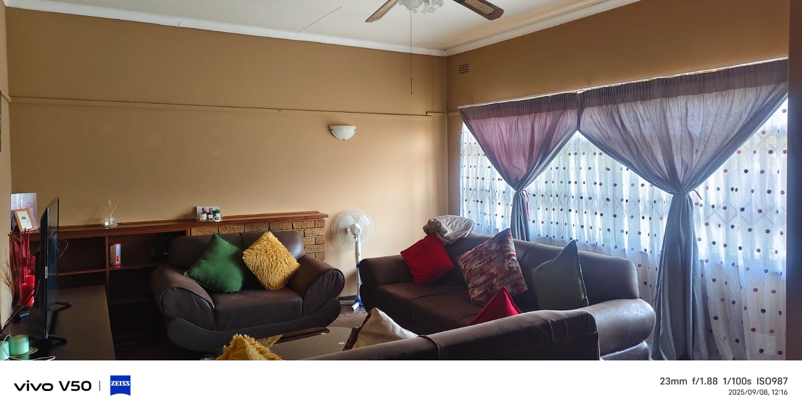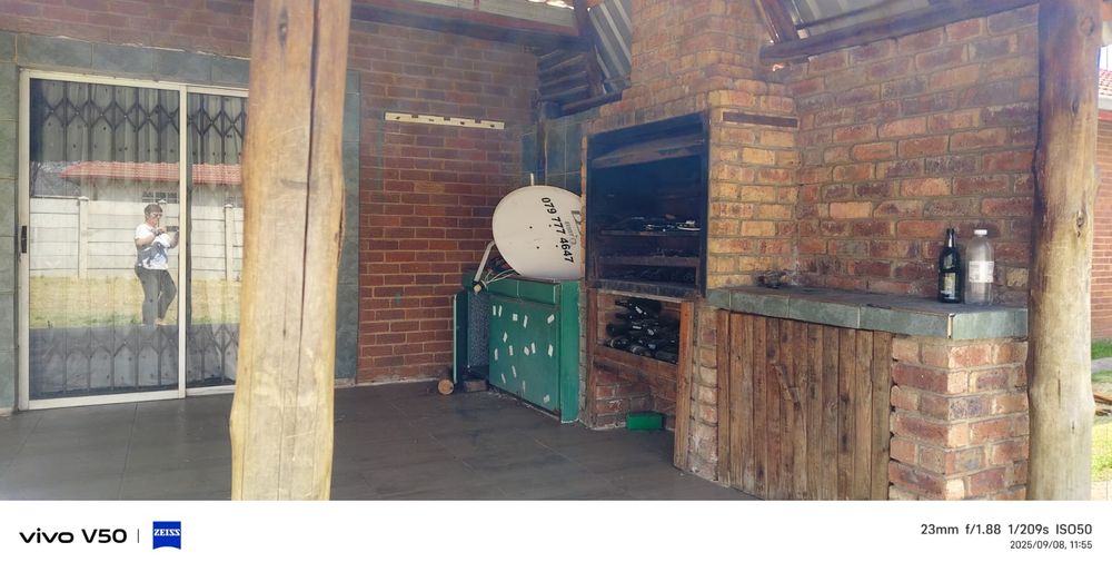 The bright and airy living room seamlessly connects to the dining area, which opens onto a covered braai space with a charming thatched roof—ideal for summer barbecues and memorable family gatherings.