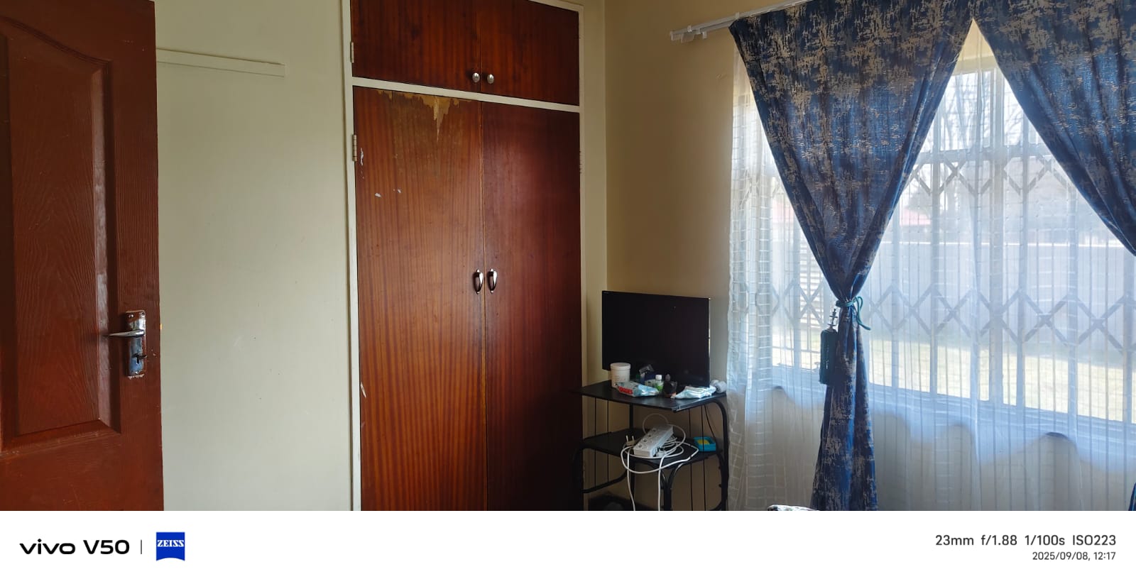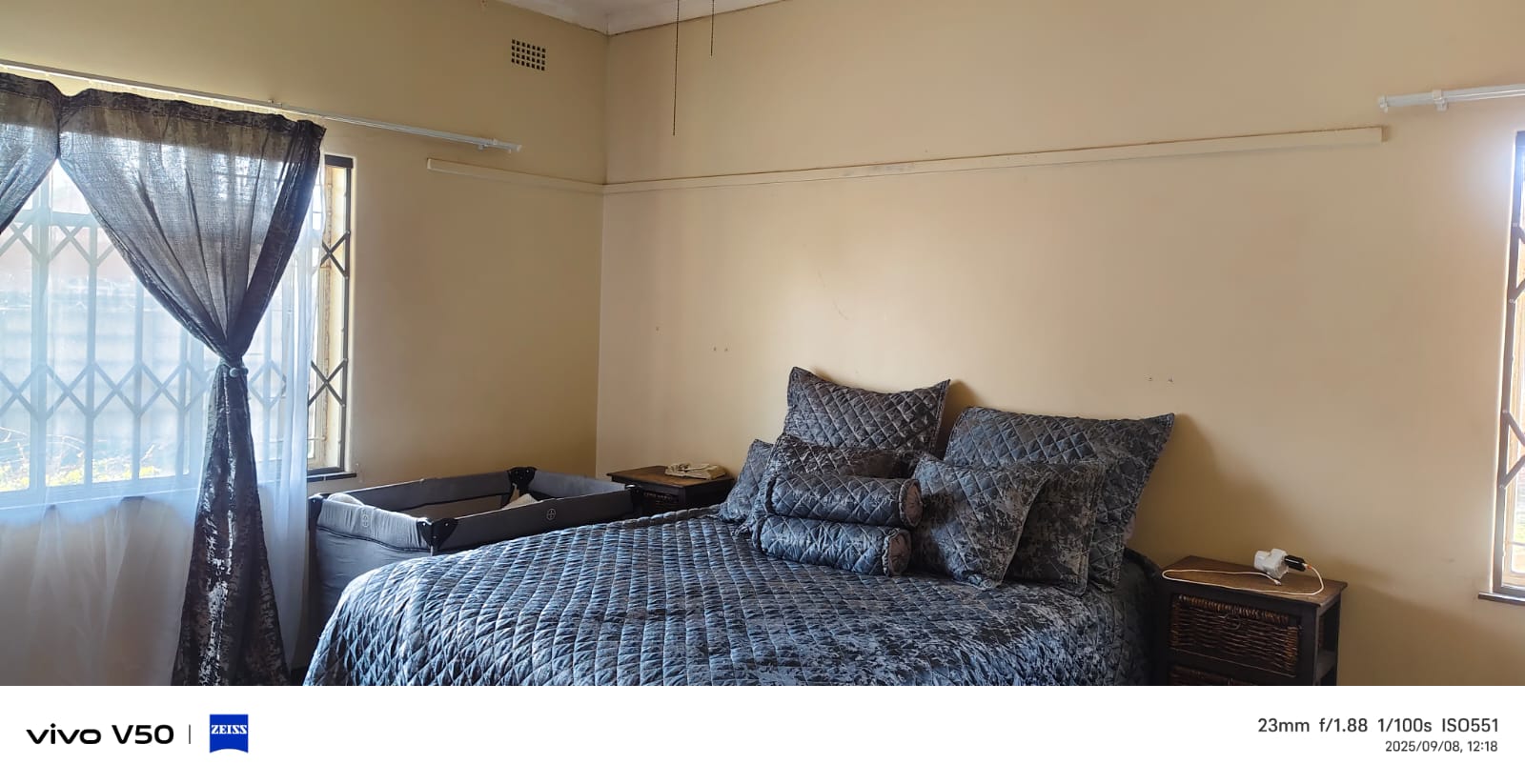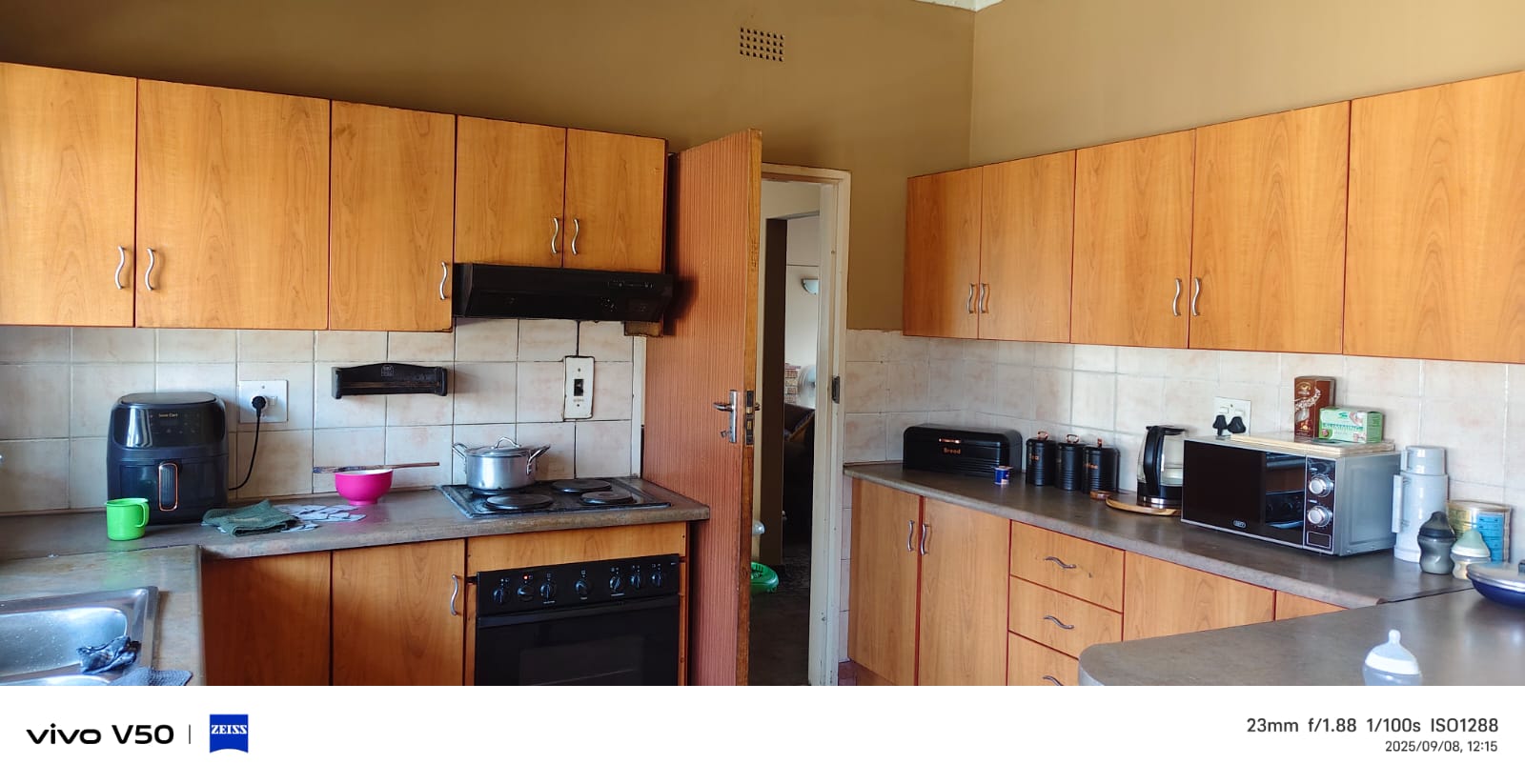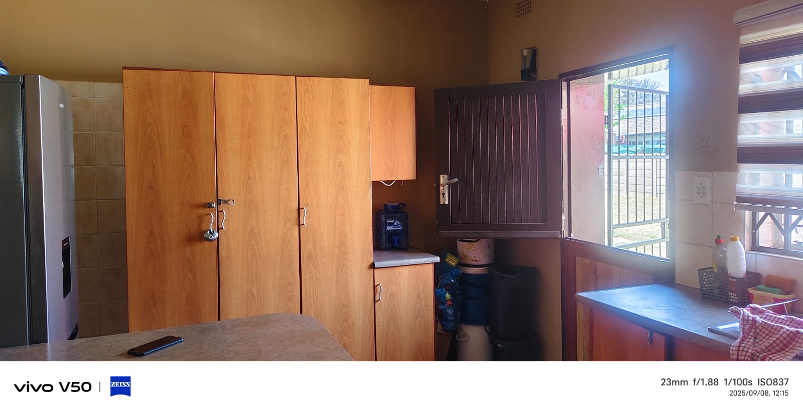 The bright and airy living room seamlessly connects to the dining area, which opens onto a covered braai space with a charming thatched roof—ideal for summer barbecues and memorable family gatherings.