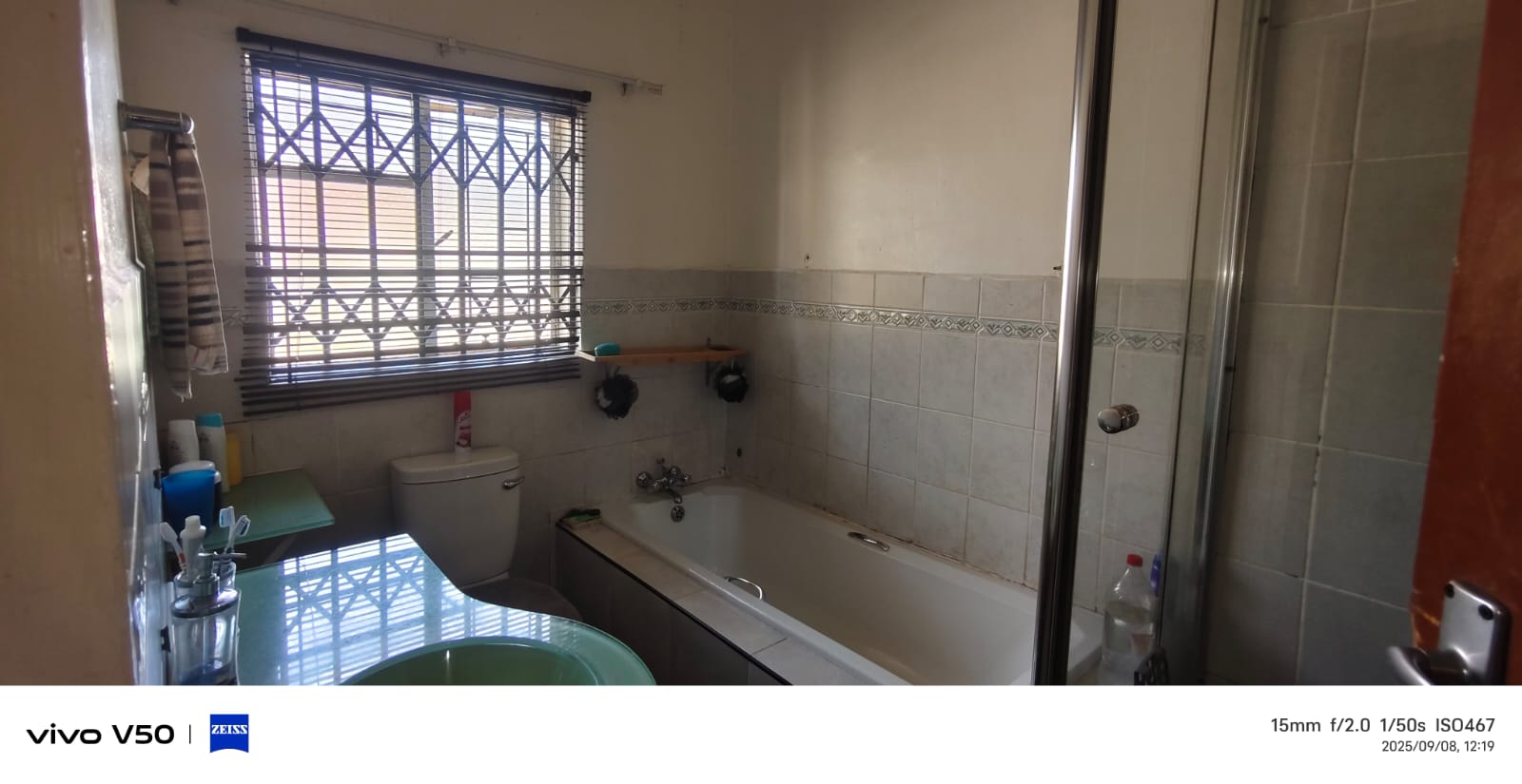 The bathroom features a bathtub, shower, and basin, with a separate toilet for added convenience.