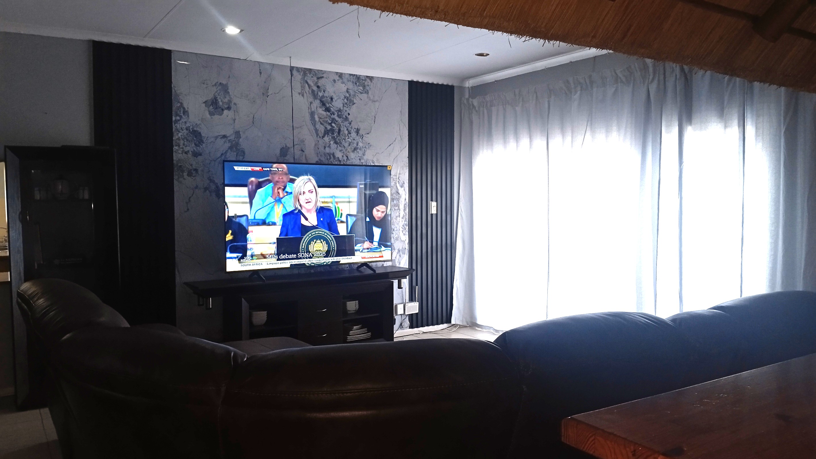 The spacious kitchen boasts upgraded cupboards and modern floor tiles, offering plenty of room for the whole family to cook together. Adjacent to the kitchen, you'll find a dining room and a cozy living area with underfloor heating—ideal for chilly evenings. A built-in bar in the corner adds a great entertainment feature, while a sliding window connects to the separate outdoor braai area, perfect for hosting gatherings.